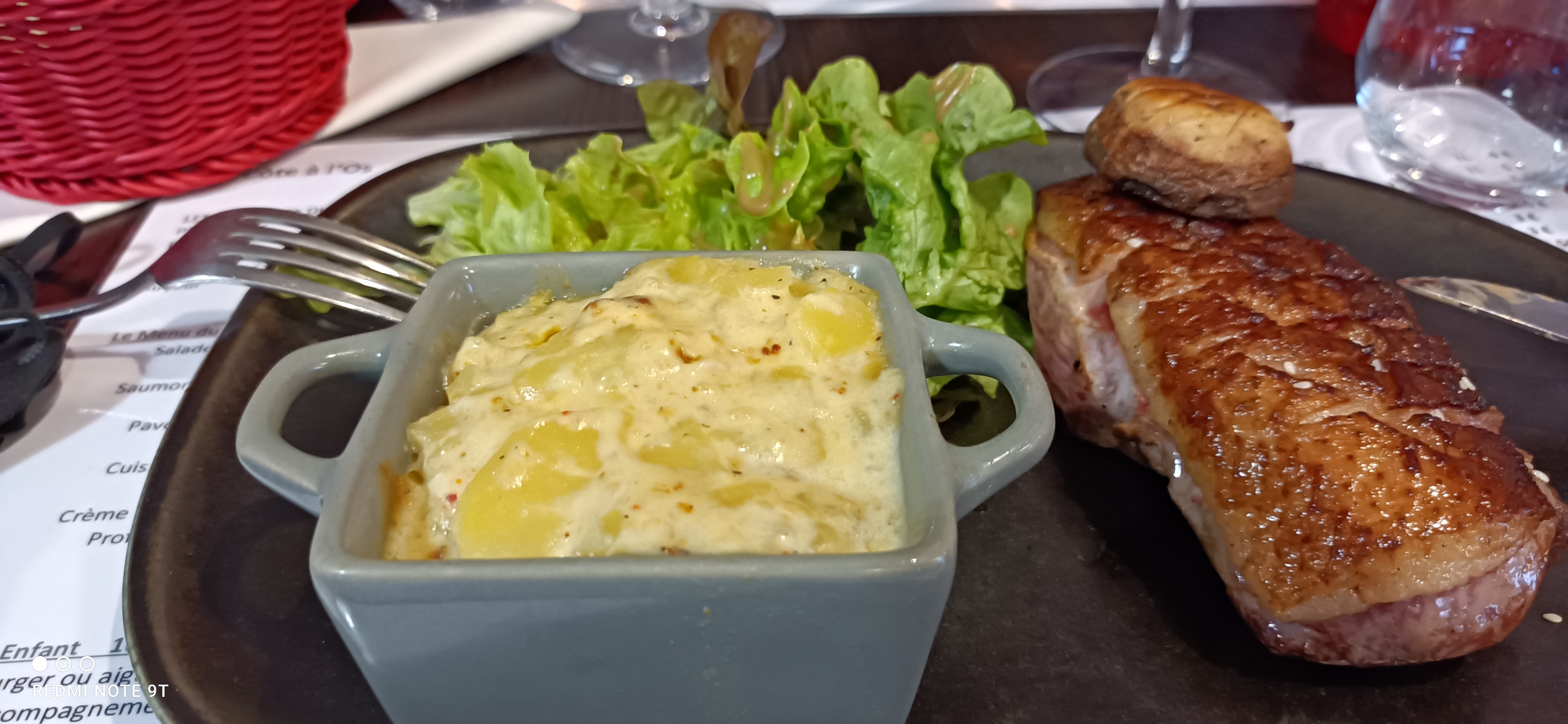 Nous sommes à l’hôtel et envie de dîner à l’extérieur. Un peu de recherche, de répondeur, de « ça décroche pas » et enfin une voix courtoise, avenante donc réservation est faite (il vaut mieux réserver). A 19h30 le petit bonheur commence. Gentillesse, conseil, je prends une fricassée de cochon plat ancien, un ingrédient m’échappe et bien la serveuse (très efficace) part en cuisine pour me fournir le plus du chef. Détail certes mais c’est tellement agréable de bien manger et d’avoir un partage avec l’équipe. Vraiment une bonne adresse les viandards en ont rêvé hé bhé ils l’ont fait. Moi je vais aménager à St Paul les Dax…..