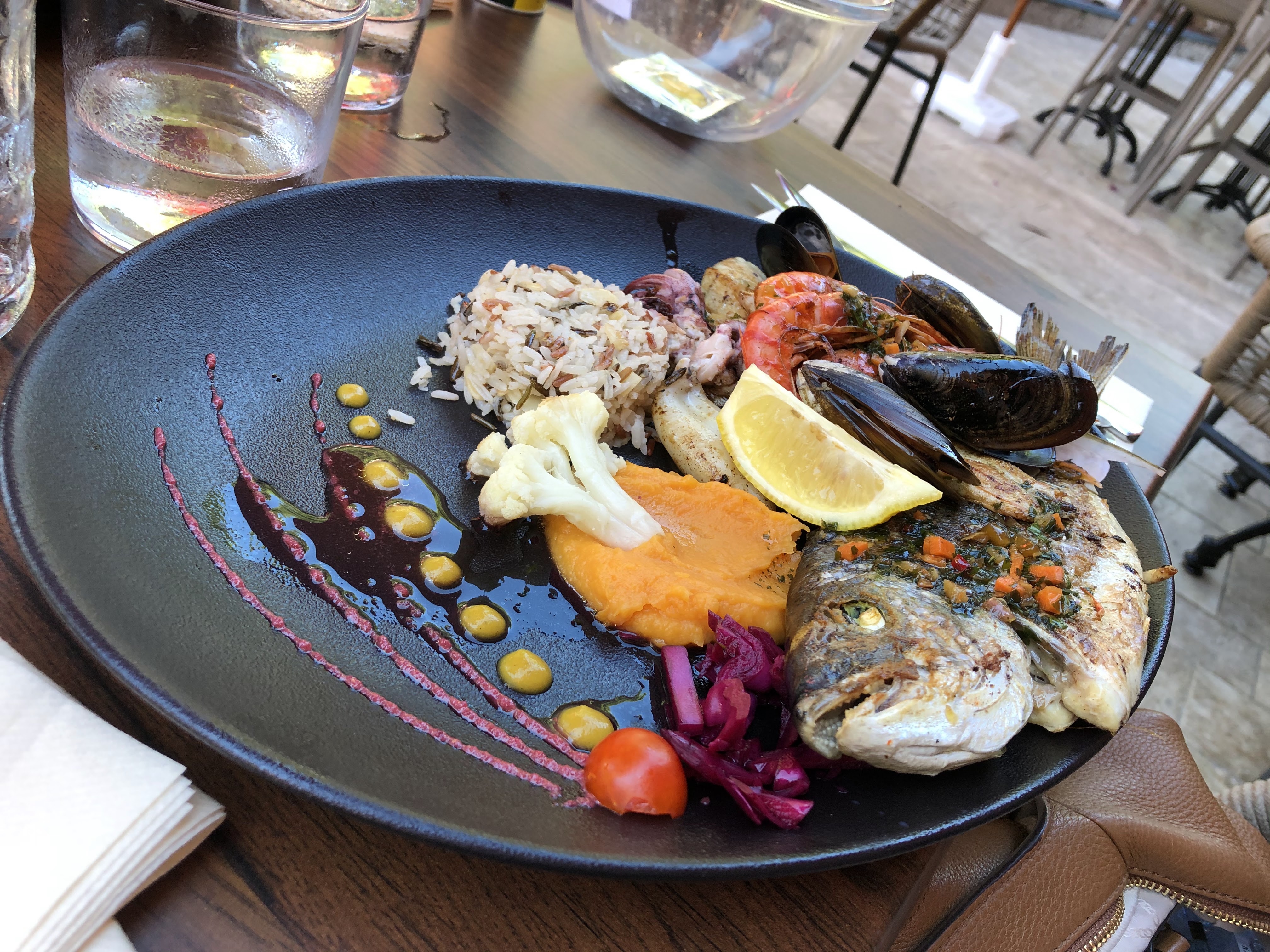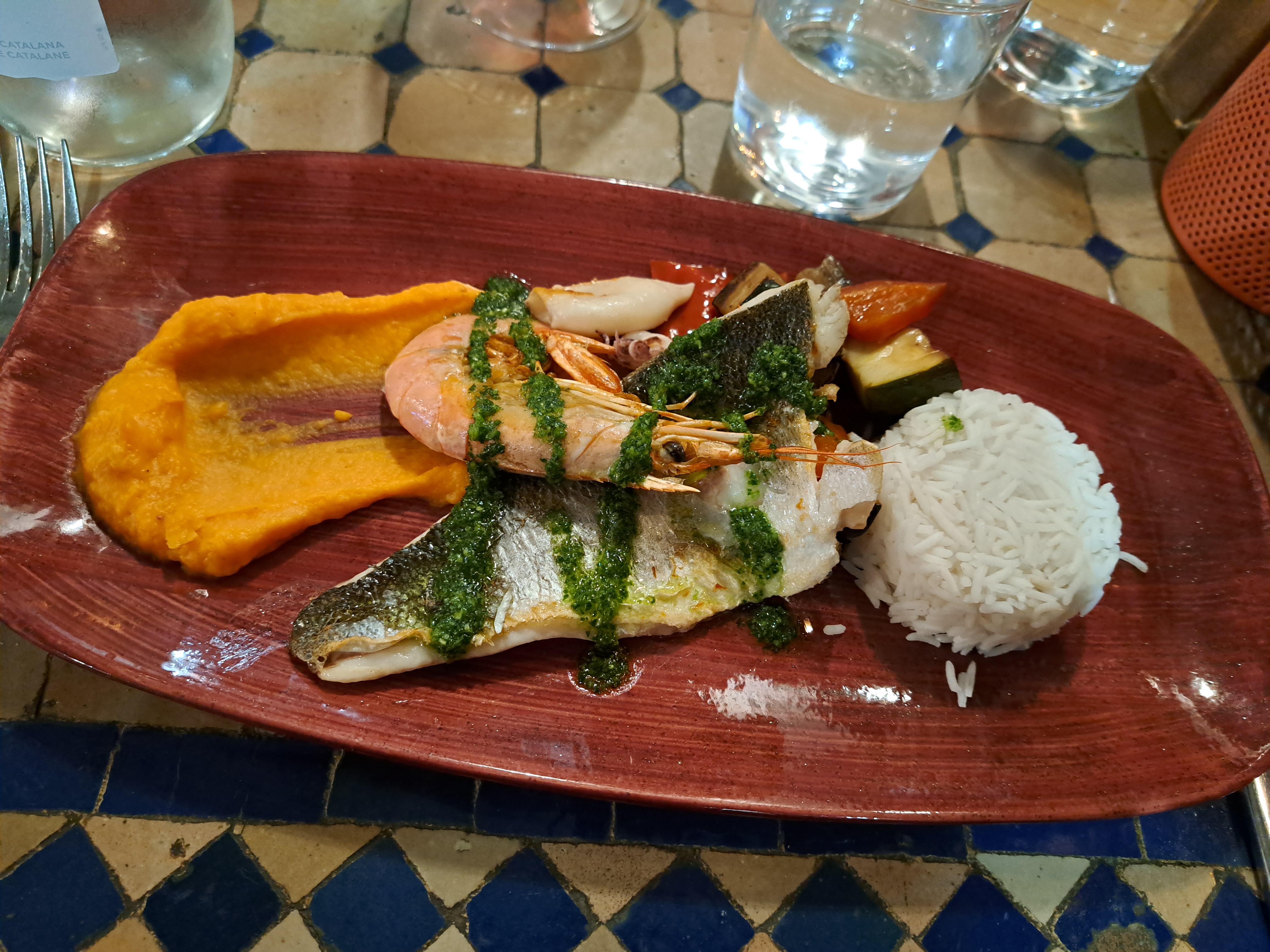 Pause déjeuner très sympathique Cuisine succulente plats de poissons cuits à merveille Le beignet catalan est merveilleux