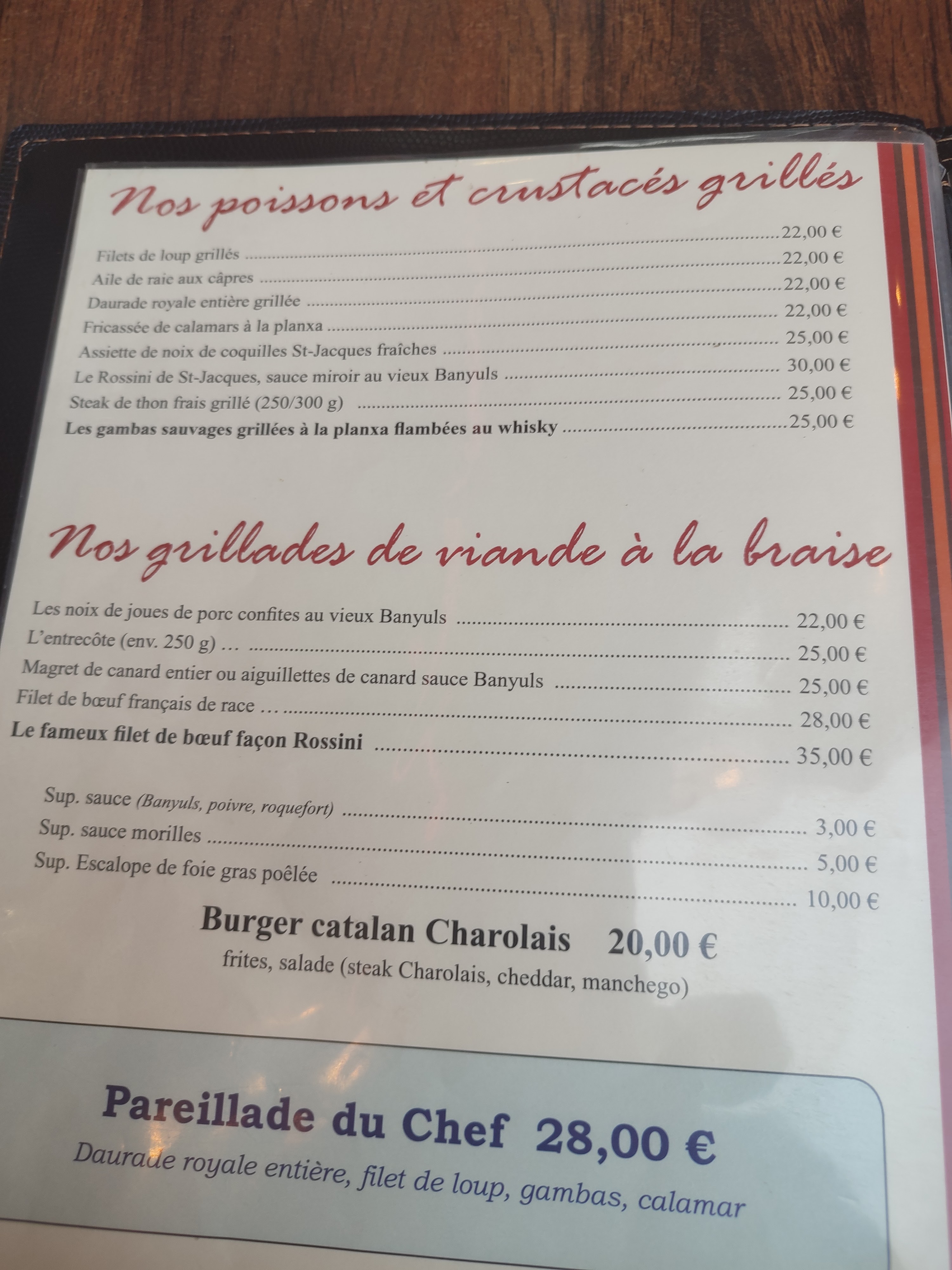 Joues de porc au vin de Banyuls au top . Parillada Poisson au top. Merci de cette bonne cuisine.