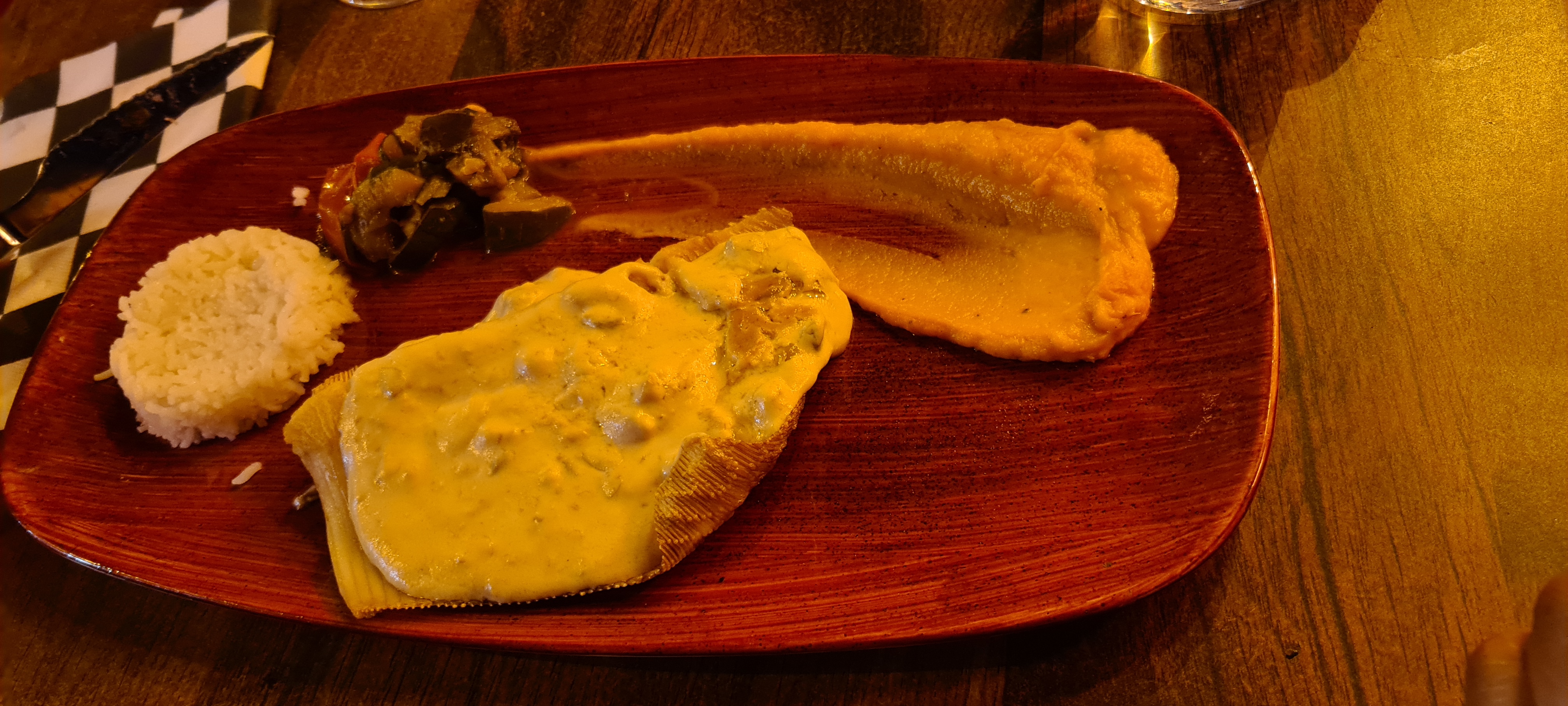 Soupe de poisson de roche correcte, filet de boeuf fondant mais mariscade servie avec 5 moules vides .. heureusement remplacées après l'avoir signalé. Nous aurions aimé des assiettes chaudes et ne pas avoir à payer quelques frites supplémentaires demandées... Serveuses agréables.