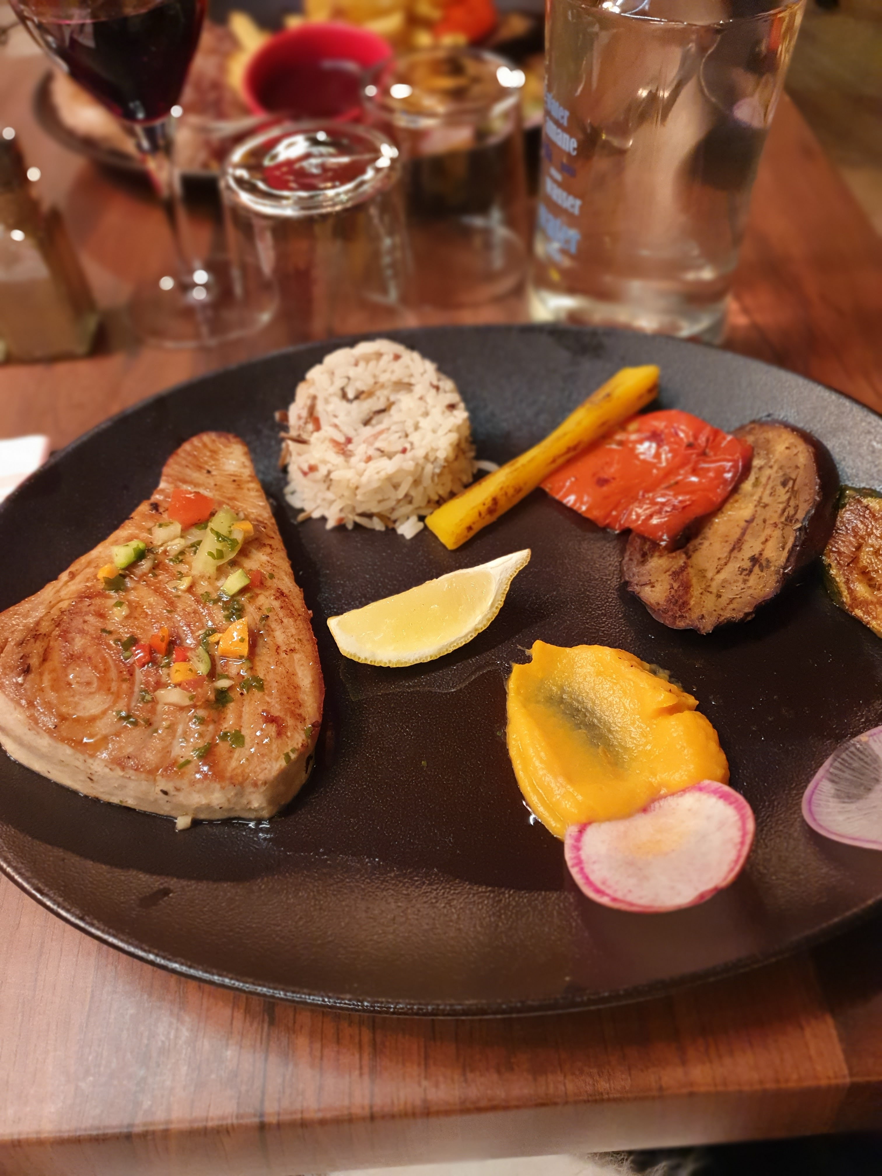 Steak de thon , très bon, cuisson parfaite, le thon était bien frais, un régal pour les papilles, merci😍
