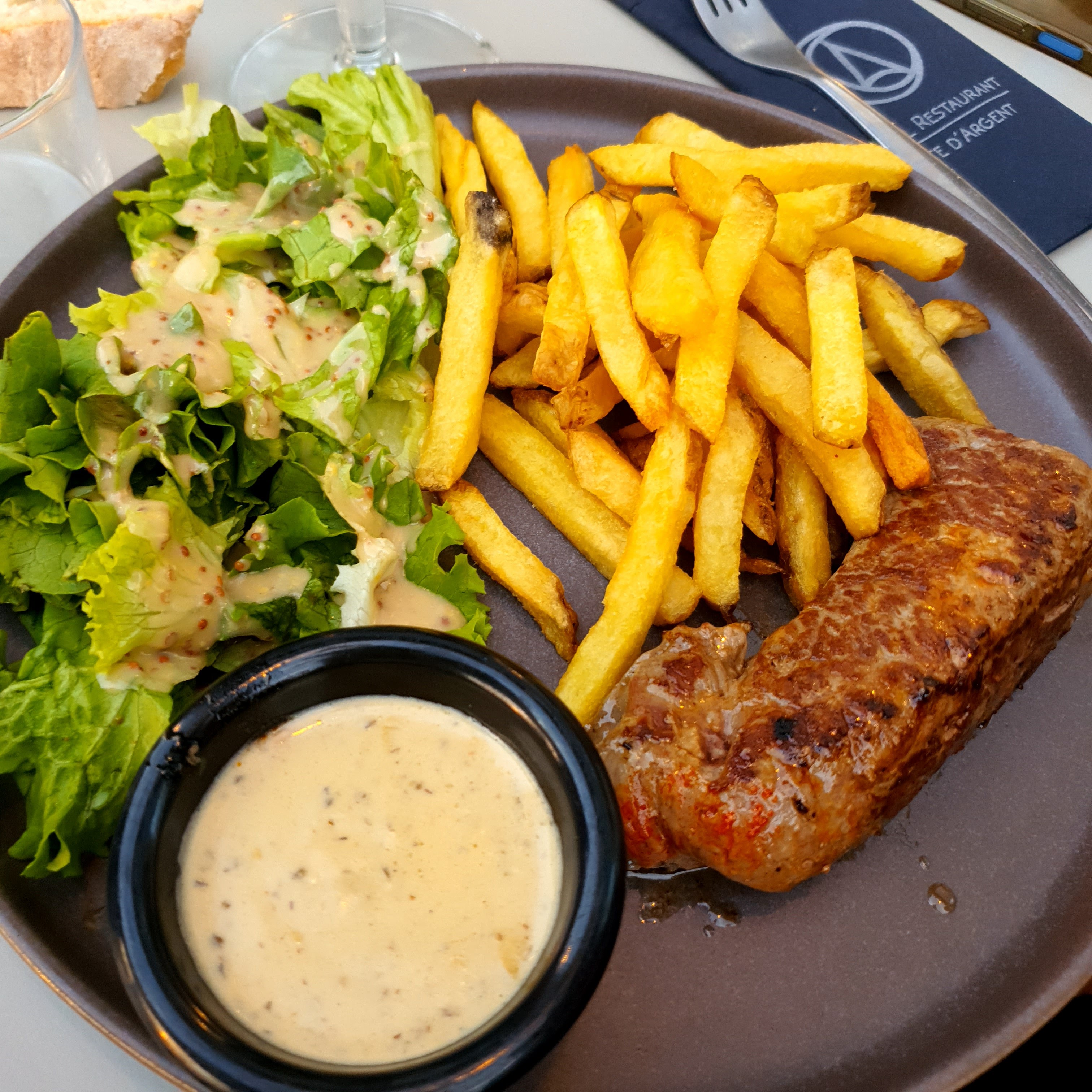 Le restaurant était ouvert fin novembre. Le service assez agréable, un faux-filet à la cuisson demandée, la sauce au roquefort très bonne mais le morceau de faux-filet était composé de viande qu’à moitié, le reste étant une sorte de plèvre de graisse et de je ne sais quoi. La remarque faite à la serveuse, aucune réaction en retour. Dommage 😐