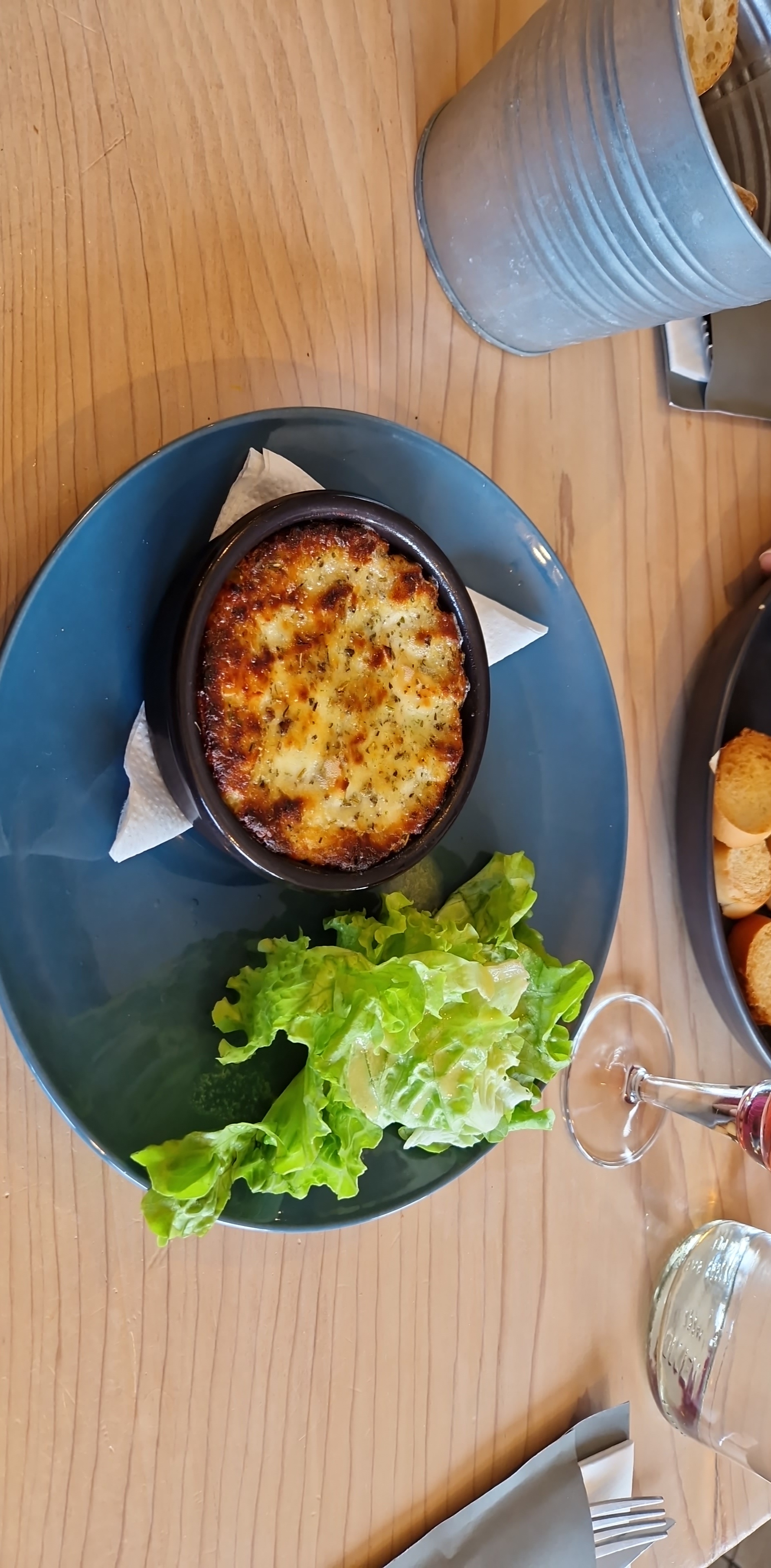 Je trouve cela un peu dommage de se rendre au restaurant dans le but de manger un plat qu'on ne peut pas faire soi-même à la maison : payer 14,90€ pour 80% de salade verte, des pelures de carottes, 1/2 tomate coupée grossièrement et des asperges et du mais en boite et 4 petits chèvres chaud sur du pain de mie, c'est décevant. Surtout quand le chef oublie de vous servir le produit de base de votre plat, à savoir le jambon ! Et quand la sauce n'a pas l'air très maison ... Certes nous sommes arrivés en fin de service, mais l’expérience fut globalement négative.