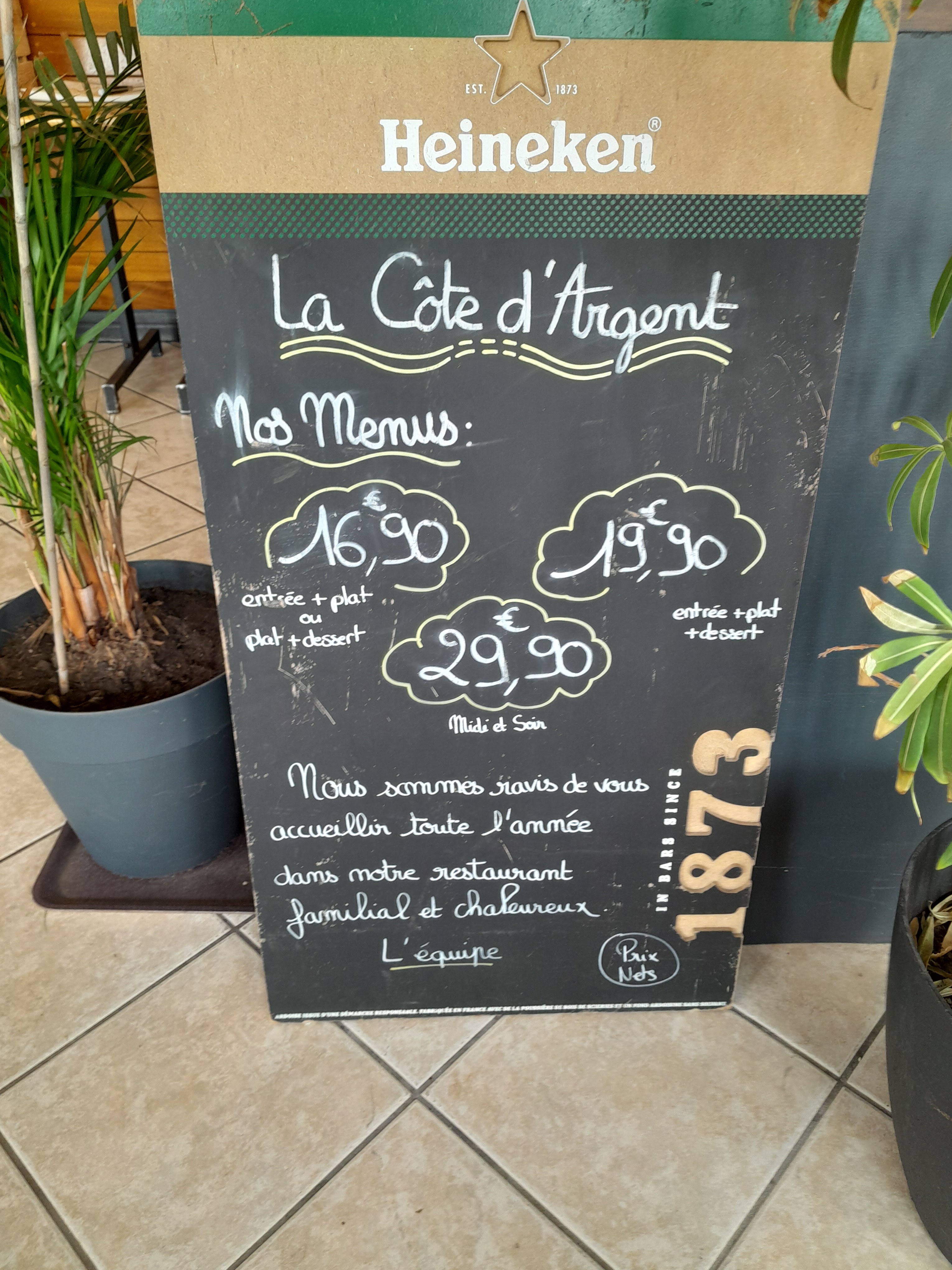 Le 5 janvier 2023 j'ai déjeuné à LA CÔTE D'ARGENT et choisi les moules au menu entrée plat dessert. Catastrophe, ces moules étaient désastreuses : absence totale de jus, bien sèches et de surcroit même pas nettoyées brutes de ramassage. Je l'ai signalé mais aucun geste commercial à mon égard. Facture 22,20€ à 13:06:12 avec la boisson. Je n'ai pas pris le café ici.