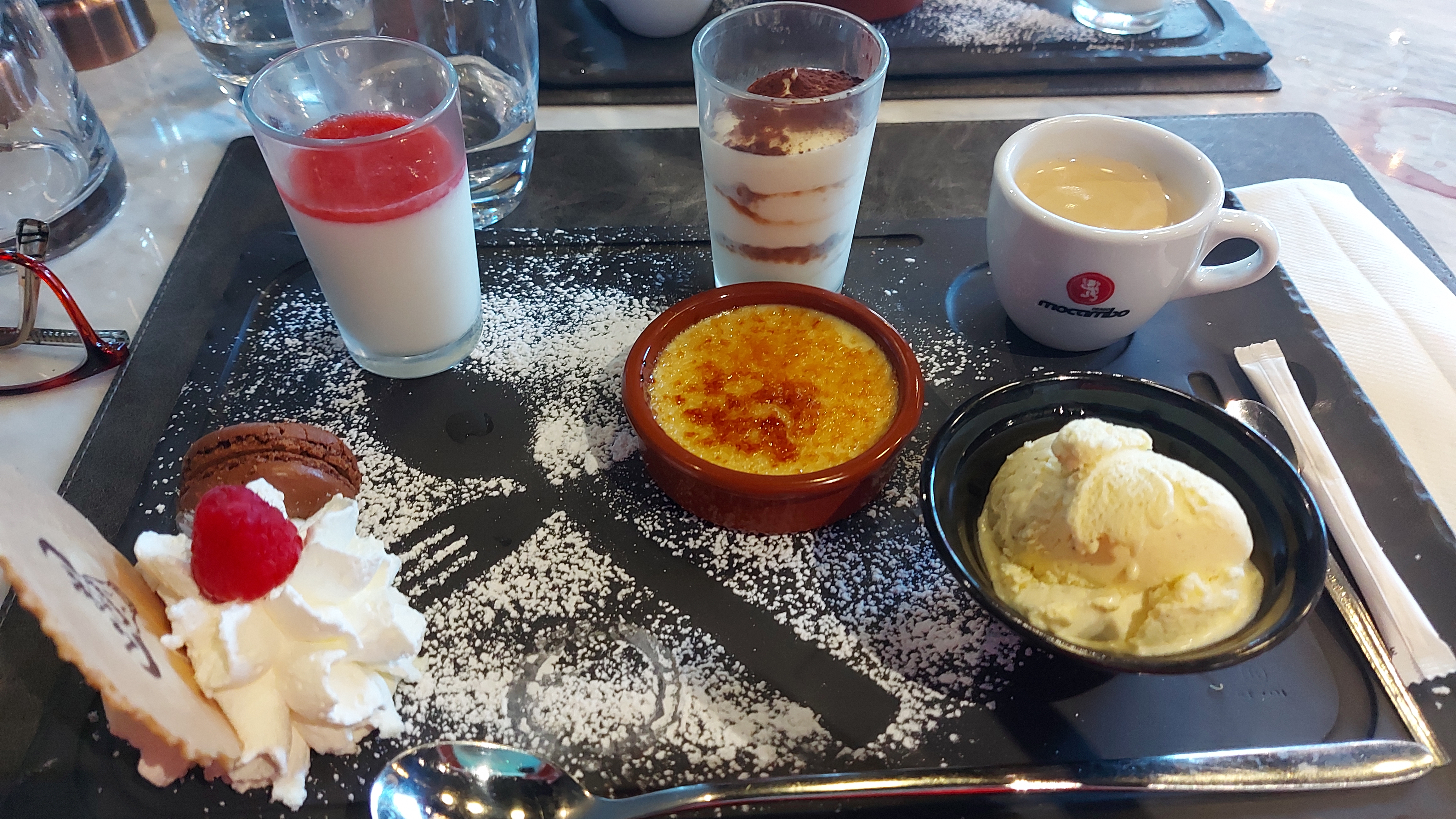 La viande juste correcte et les frites sont ratées. Service débordé. Le café gourmand permet de terminer sur une bonne note.