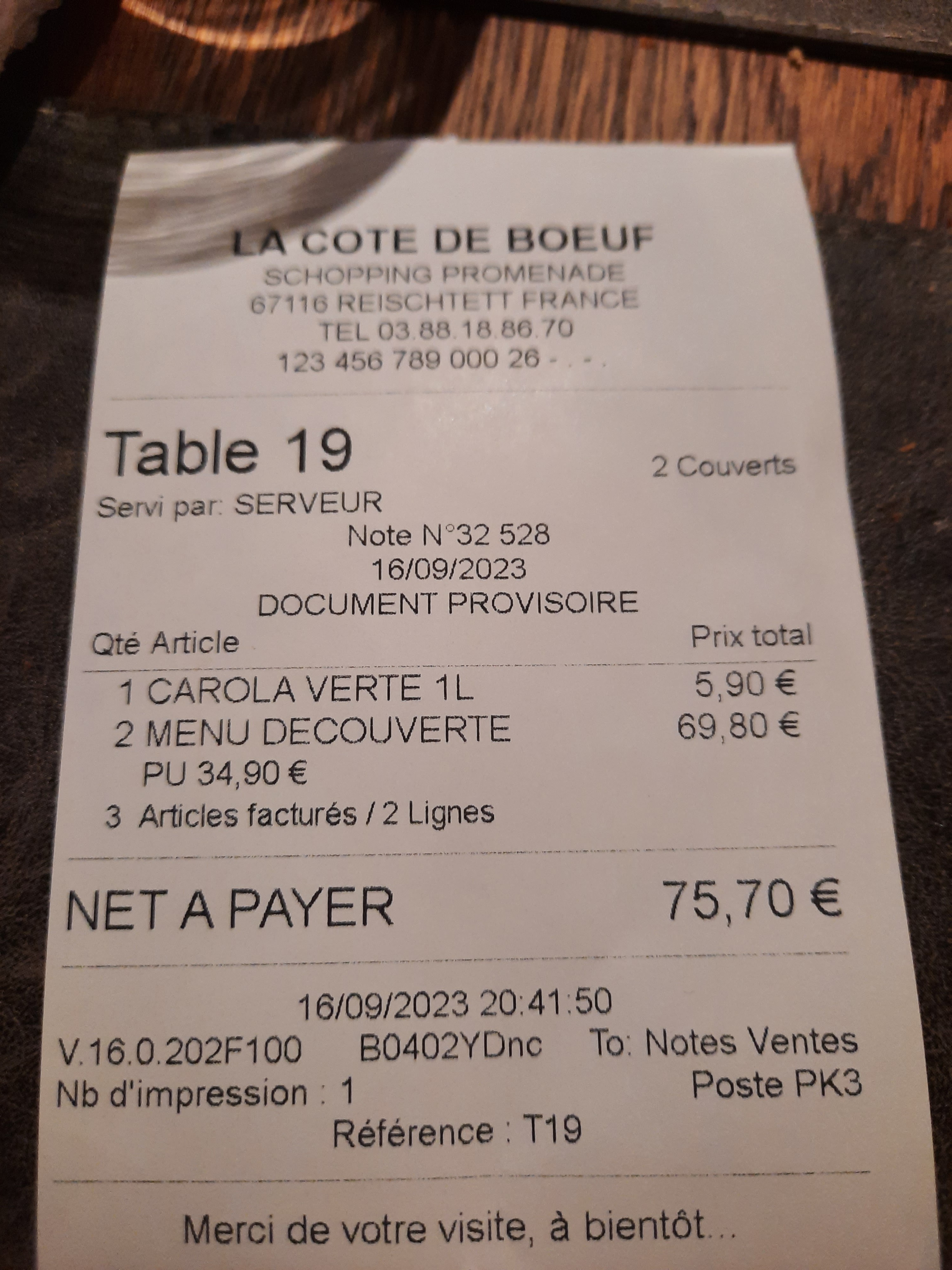 J'ai passé un excellent moment au restaurant La Côte de Boeuf à Reichstett. Le service était rapide et sympathique, l'ambiance agréable et les plats délicieux. Je recommande ce restaurant sans hésitation.