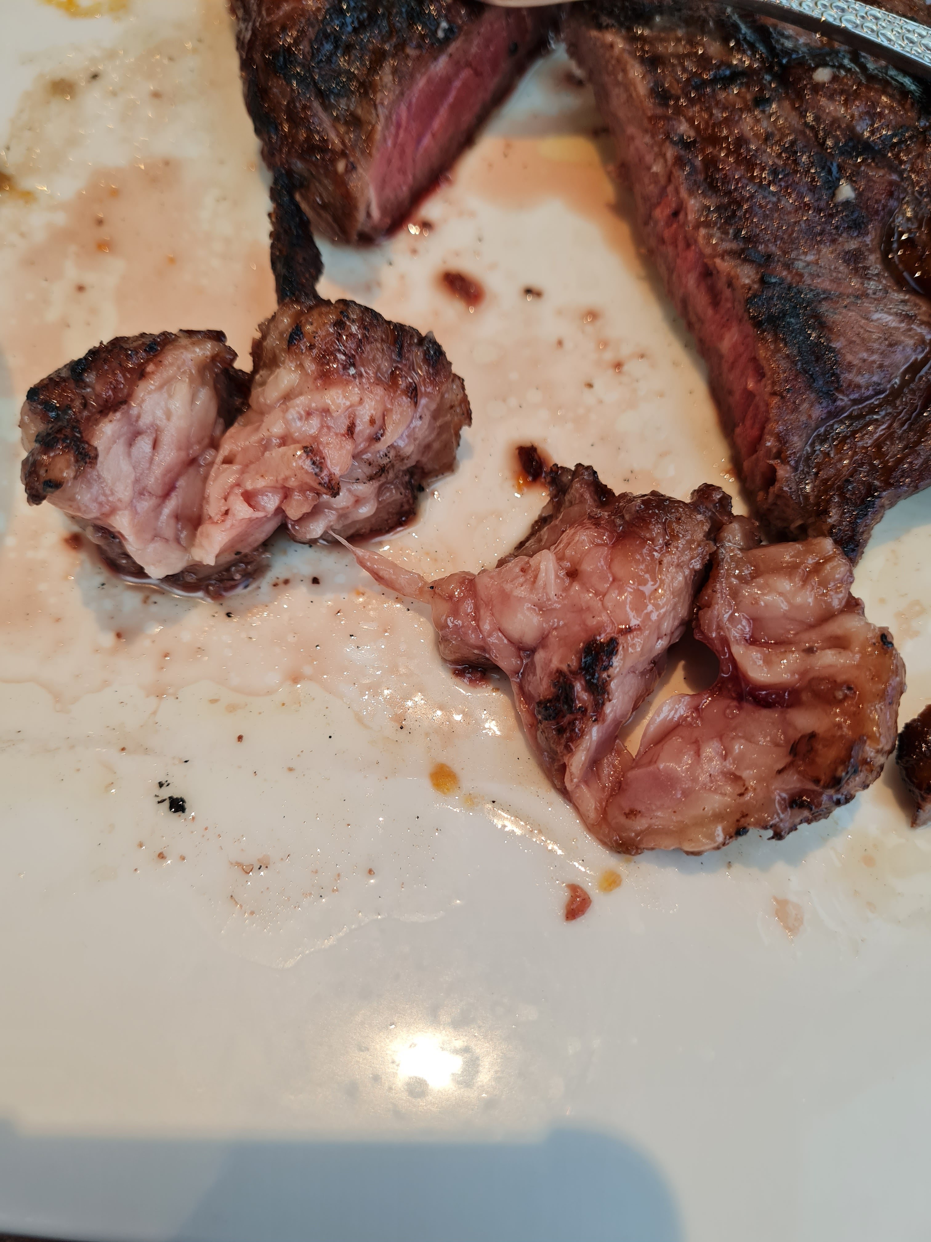 J'ai visité le restaurant avec mes parents un soir. Les avis sont très mitigés, avec des viandes tièdes qui n'ont pas atteint l'attente du prix. J'ai pris une entrecôte, en demandant saignant et des légumes de saison en accompagnement. J'ai reçu un morceau de viande avec beaucoup de graisses, caoutchouteux et cuisson médium ( les photos sont avec un filtre alimentaire). L'accompagnement sont les mêmes légumes, que mes parents avaient sur leurs assiettes en décoration. La viande de mon père était petite et certains morceaux étaient remplie de graisses et peu tendres. Seul ma mère avec un morceau peu chère était satisfaite par son repas. Pour conclure, l'ambiance du lieu était correcte, le service était bien et rapide. Nous conseillons de tester le restaurant une fois, car il est possible sur une mauvaise pièce de viande ( ce qui ne devrait pas arriver de base, dans un restaurant portant sur ces types de plats) mais de prendre les plats les moins chères.