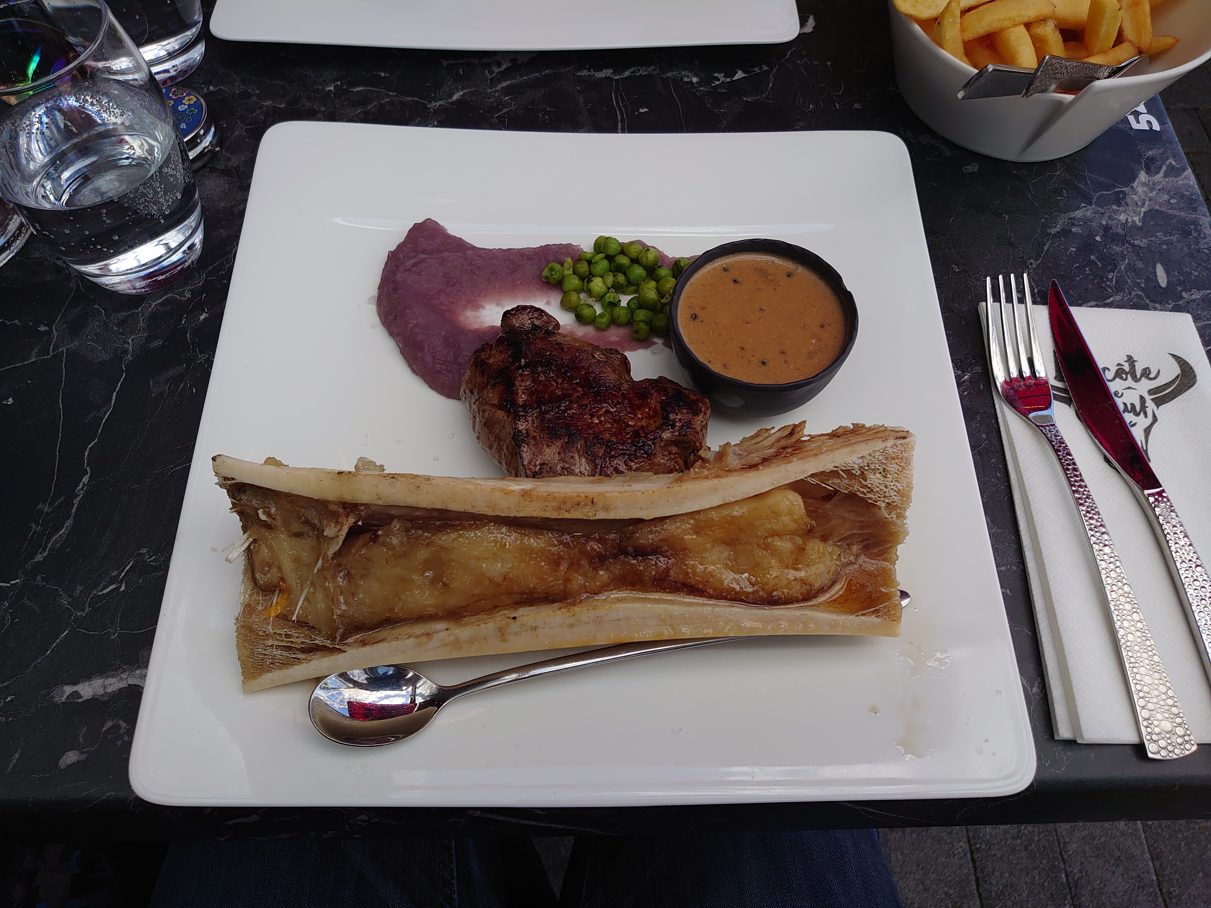 Repas agréable grâce à une serveuse incroyable, Mélina. Merci à elle ! Manques les os à moelle en entrée, la sauce chimichurri avec la cote de bœuf vraiment dommage ! Et pas de chance plus de Cote-rôtie non plus ce jour là…
