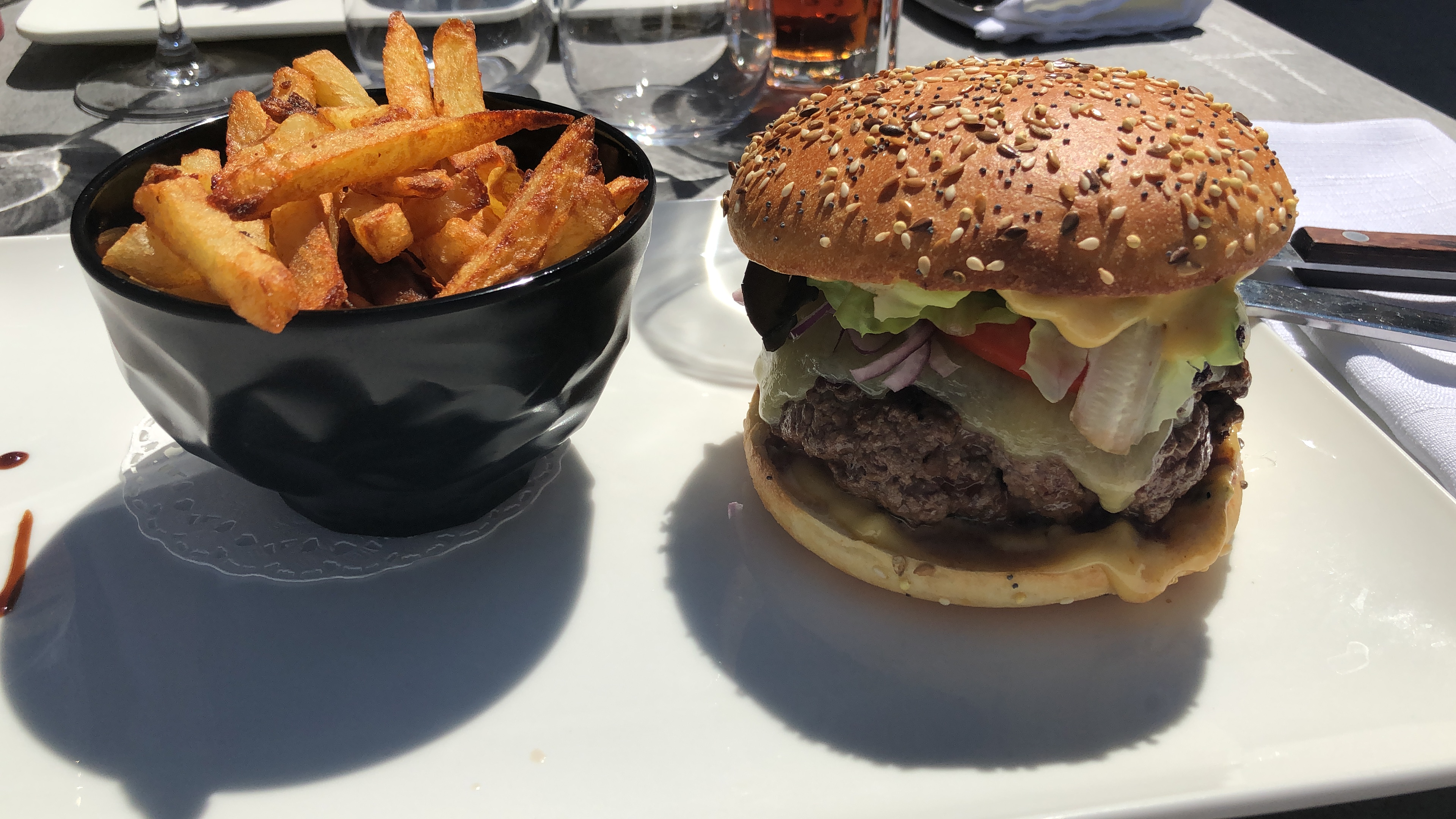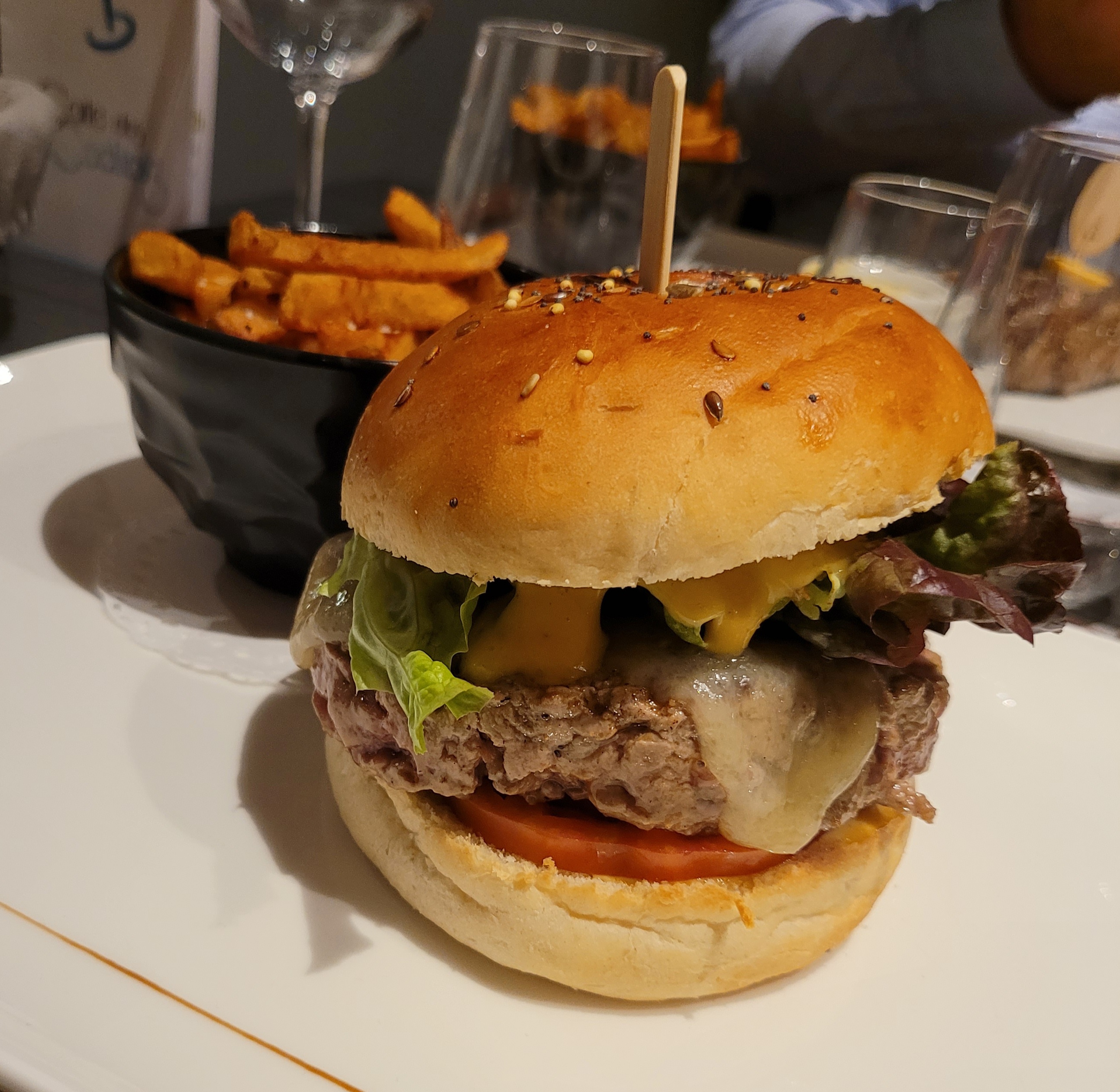 Un burger qi baigne dans un sauce maison (trop épicé à mon goût) Un comte de 18 mois sans goût ou bien masqué par cette abondance de sauce Des frite je doit avouer bonne. Une viande quand à elle excellent la qualité pour les amoureux de la viande rouge est là. Que dire du service...... Rien si ce n'est qu'il est brouillons et peut être à revoir un peu.
