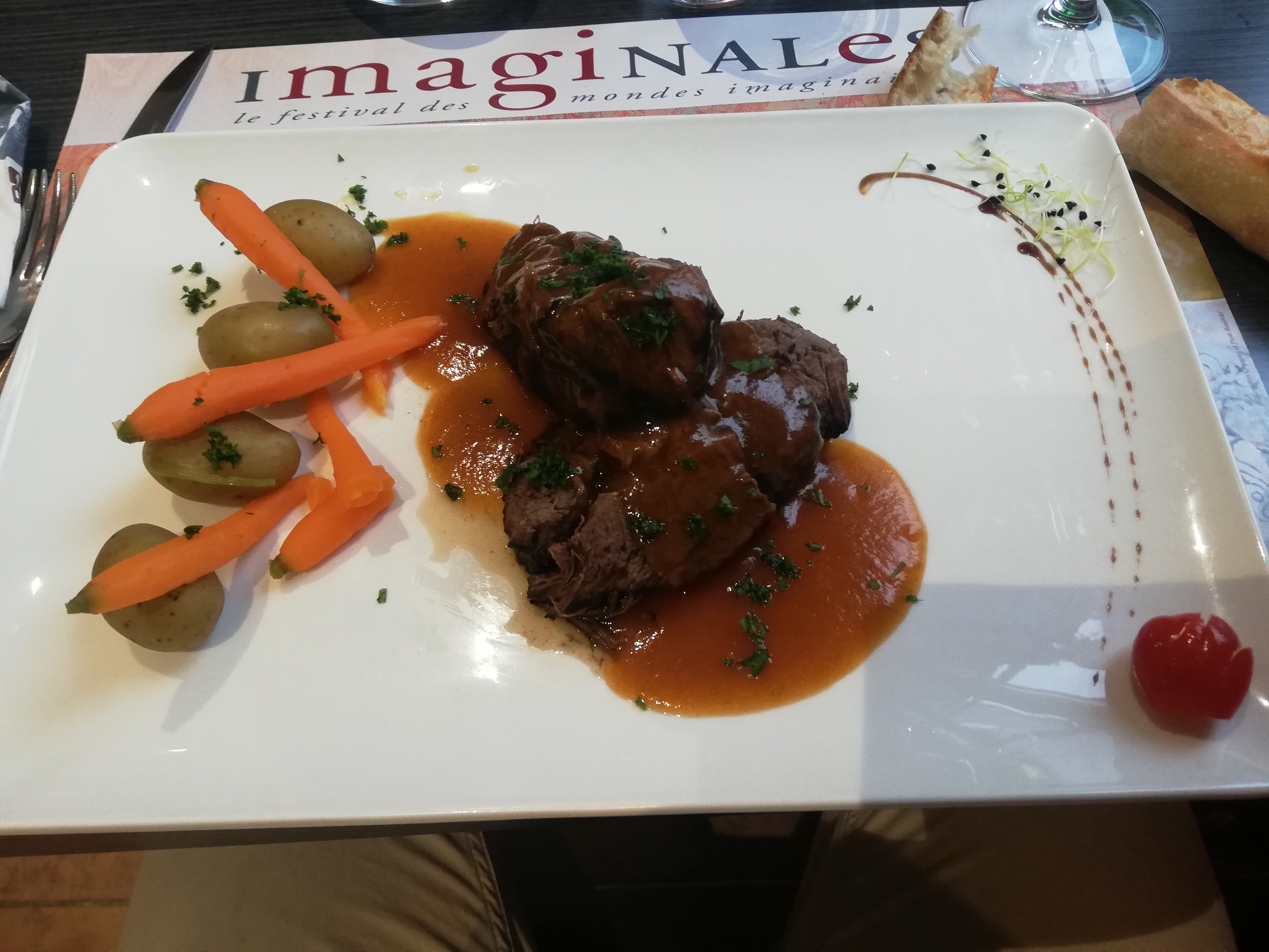 Restaurant de Bonne qualité. Mon concubin a mangé du paleron cuit pendant 6 heures avec une sauce au vin rouge, un bonheur,la viande se mangeait à la fourchette tellement elle était tendre. Moi, j'ai mangé un pavé de boeuf à point, la viande était très tendre,un délice. L'équipe est très sympa et le cadre est agréable.
