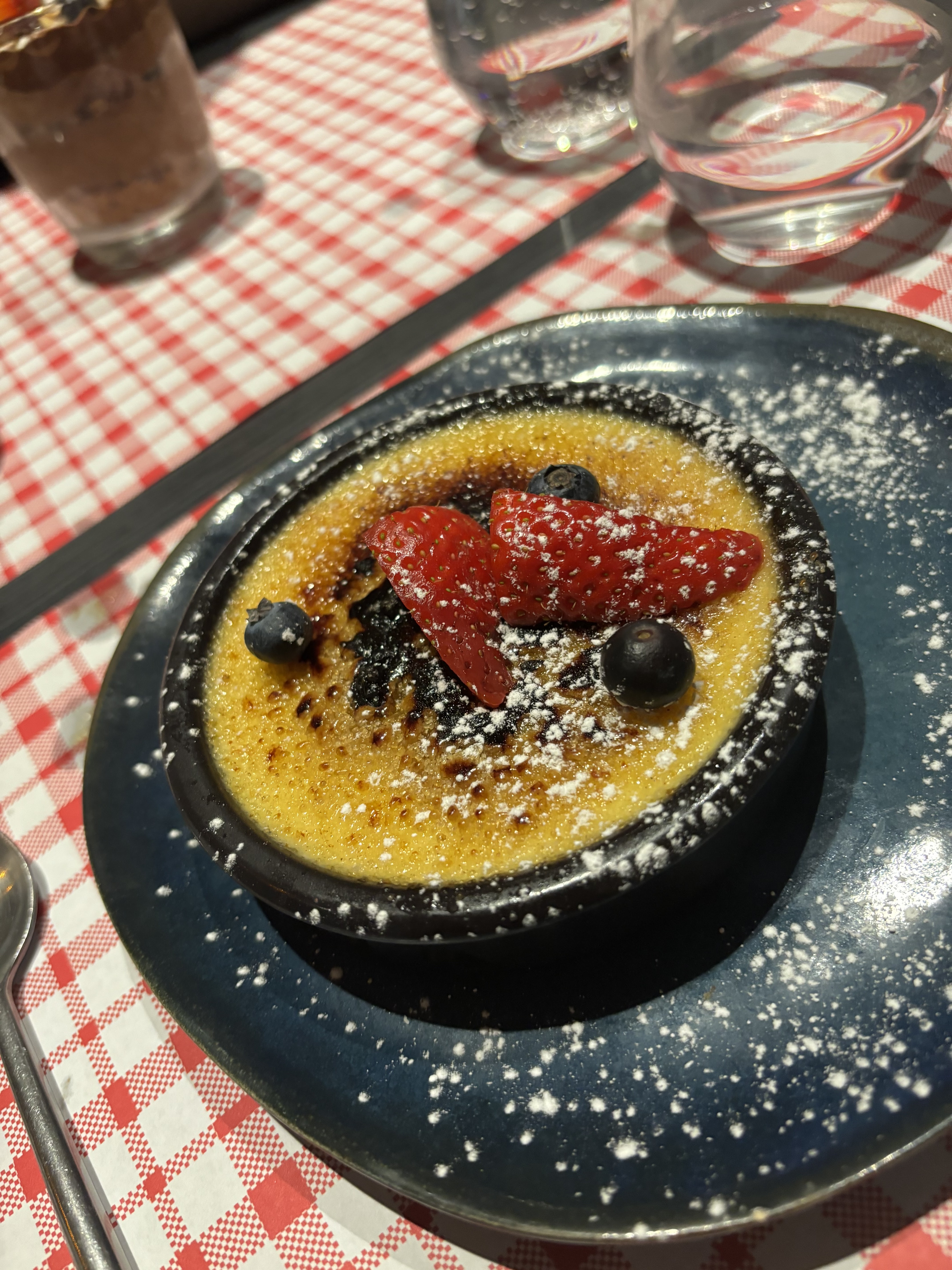 Sincèrement j’ai du mal à croire que les clients soient aussi satisfaits qu’ils l’écrivent ! Venus à deux, nous demandons un apéro chacun. J’ai eu à peine le temps de tremper mes lèvres dans le verre, qu’on nous apporte aussitôt le plat principal !… Et le vin en même temps en nous demandant de le goûter !… la viande était cuite selon notre désir et bonne. Les quelques frites qui accompagnaient l’entrecôte avaient une allure digne d’un fast food : mollassonnes et un peu trop cramées à mon goût ! En dessert la crème brûlée a réchauffé mon cœur car très bonne. Bref, rapport qualité/ prix, c’est pas le top !