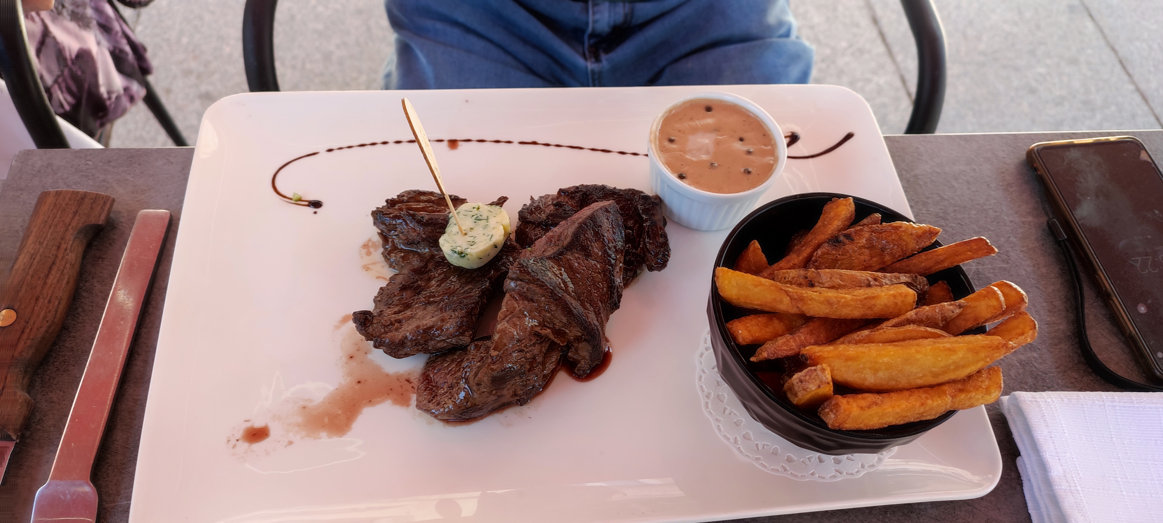 La viande (bavette XXL) ainsi que le hamburger du boucher sont délicieux. Nous nous sommes régalés. Une excellente adresse De plus la jeune fille qui nous a servis était très sympathique.