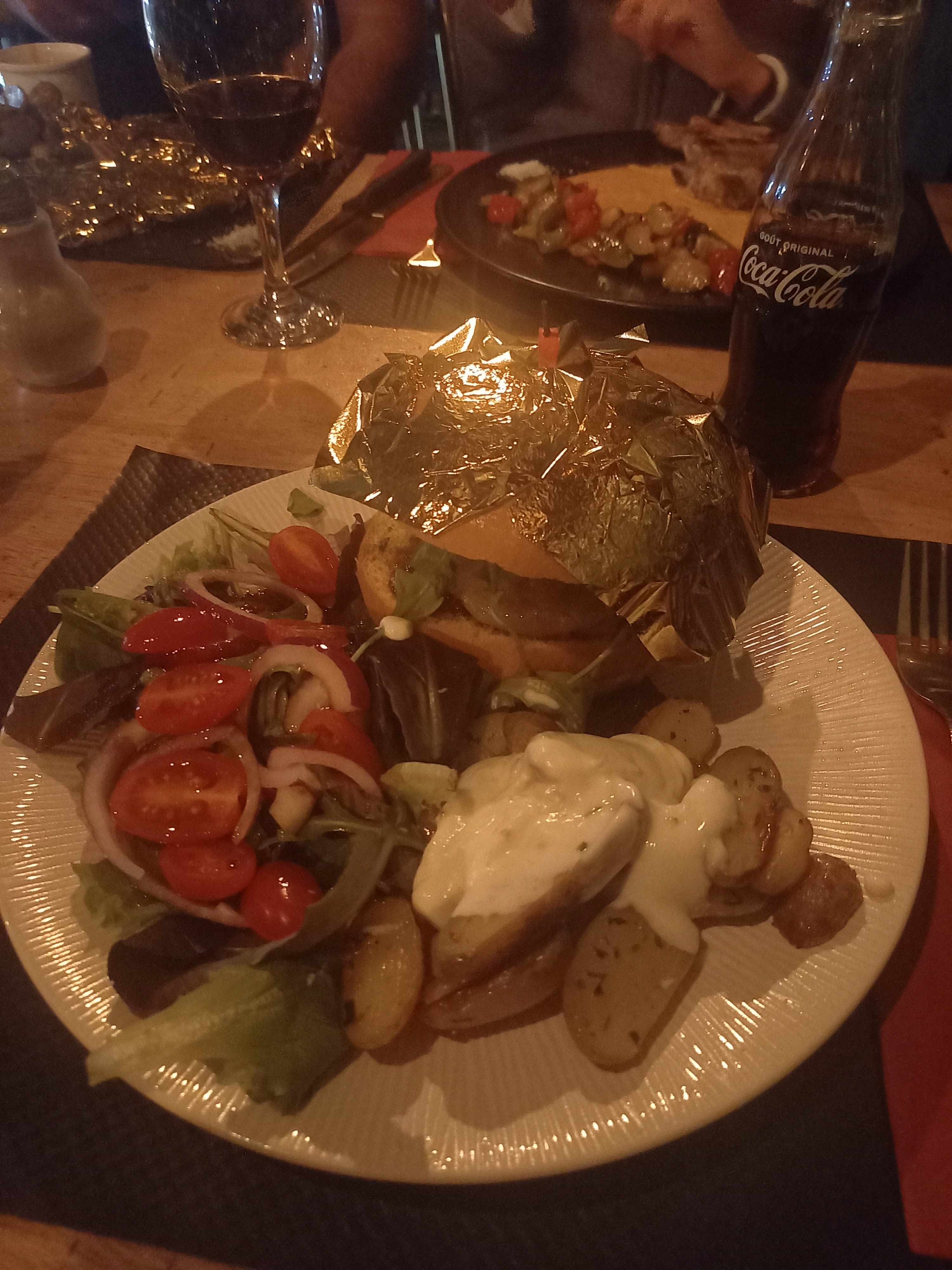 On s'attendait à quelque chose d'incroyable au vue des commentaires mais malheureusement nous avons était très déçu, prix élevé plus élevé que sur leur site, les burgers était sans goût pain burger élastique (spongieux) manque d'assaisonement pour la viande (cuisson respecté) sauce salade (sauce soja) très salé je n'ai pas pu mangé ma salade, pomme de terre fade Assaisonnement crème ciboulette sans goût.. Coca 25cl à pratiquement 4€ .. La promesse n'était pas au rendez vous