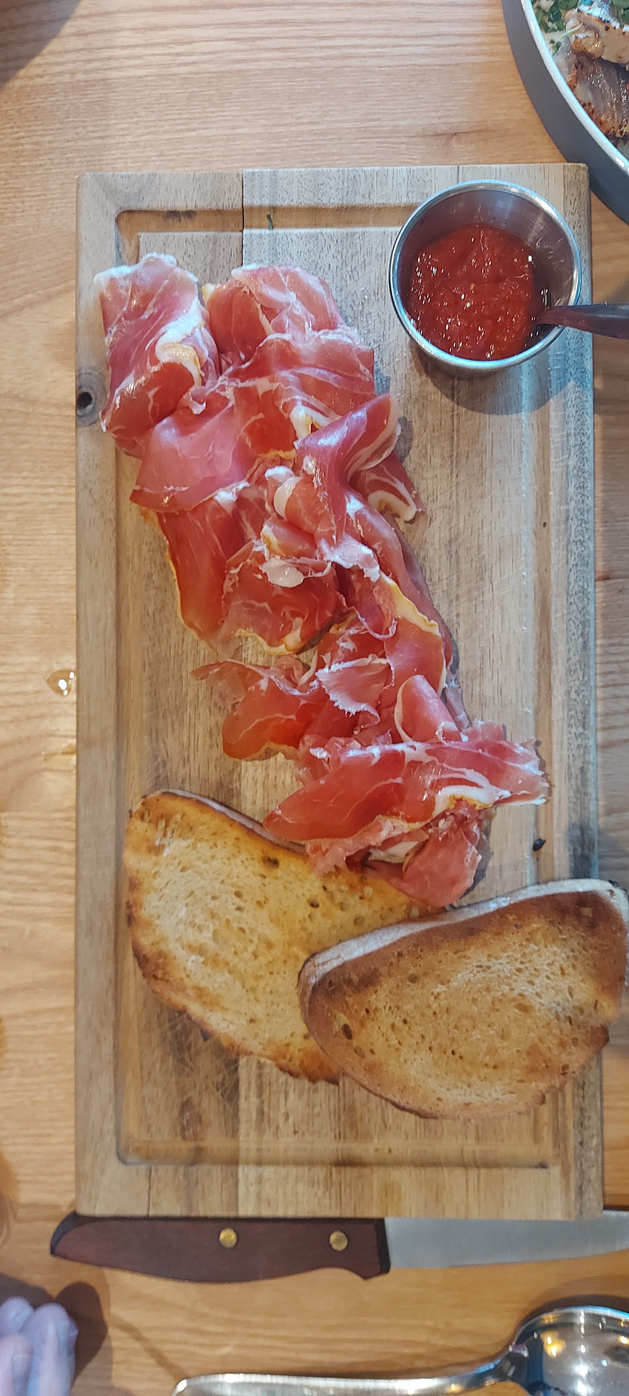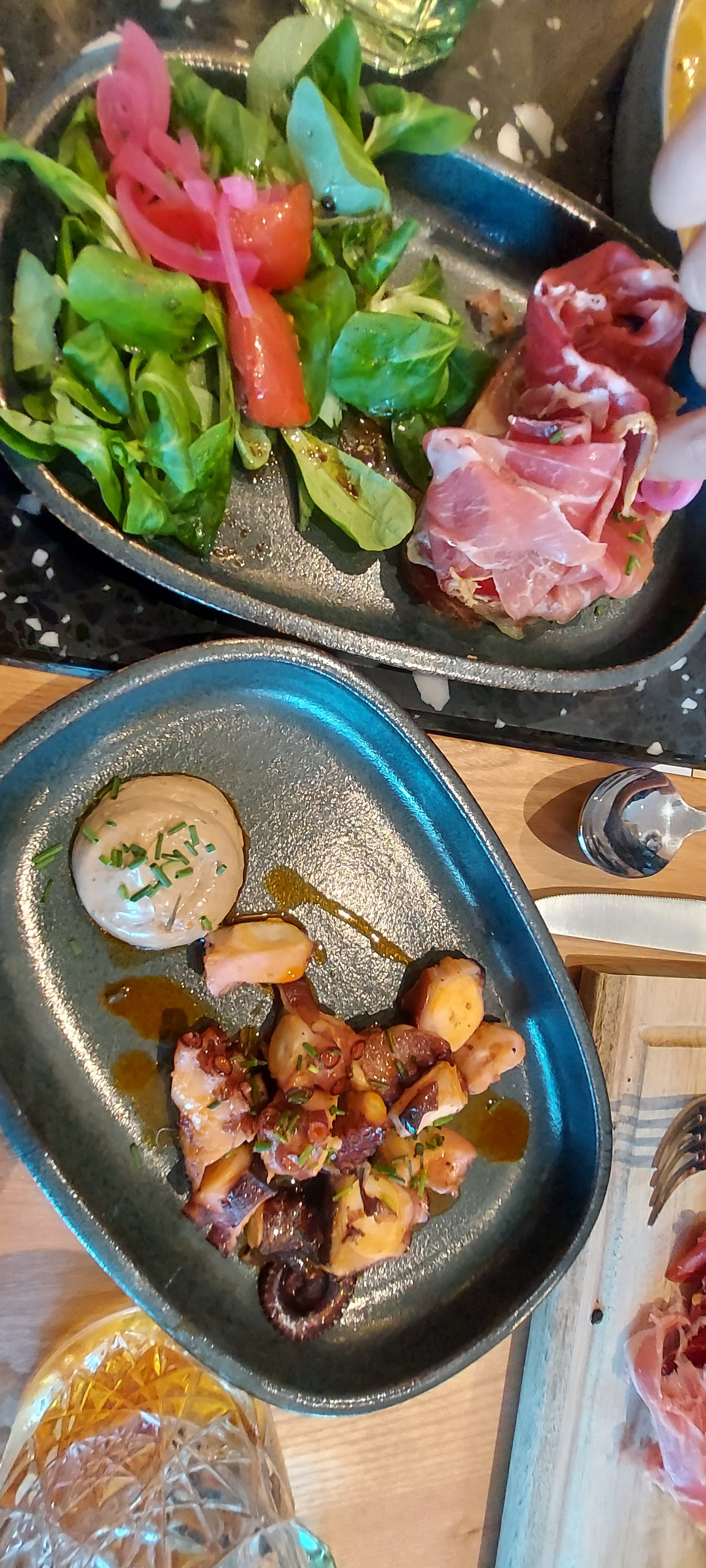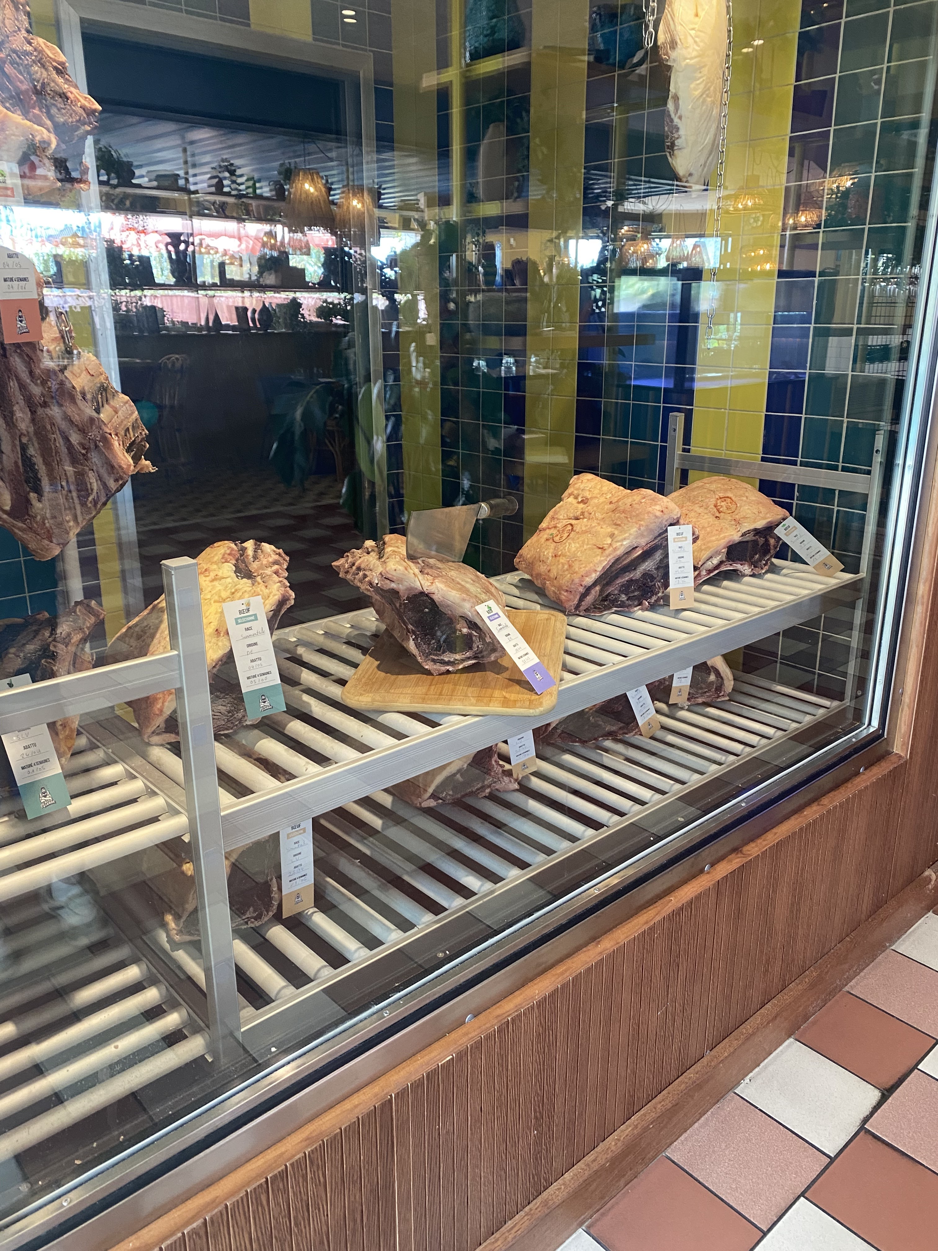 Découverte de ce lieu assez atypique avec en entrant sa cave de maturation des viandes et son aquarium 🤩. Des antipasti juste délicieux pour un bon apéro. Des viandes de caractères, et pour ma part un délice de grappe de rognons de veau grillé a la perfection 👍. Nul part ailleurs je n'ai goûté celà. Pour finir un pain brioché caramel au beurre salé glace vanille. Très bon moment et grand merci en cuisine. Je recommande vivement. Bravo pour votre concept et vos produits Je n'ai pas résisté à goutté mon dessert avant la photo, et puis tans pis si il manque un morceau 😇