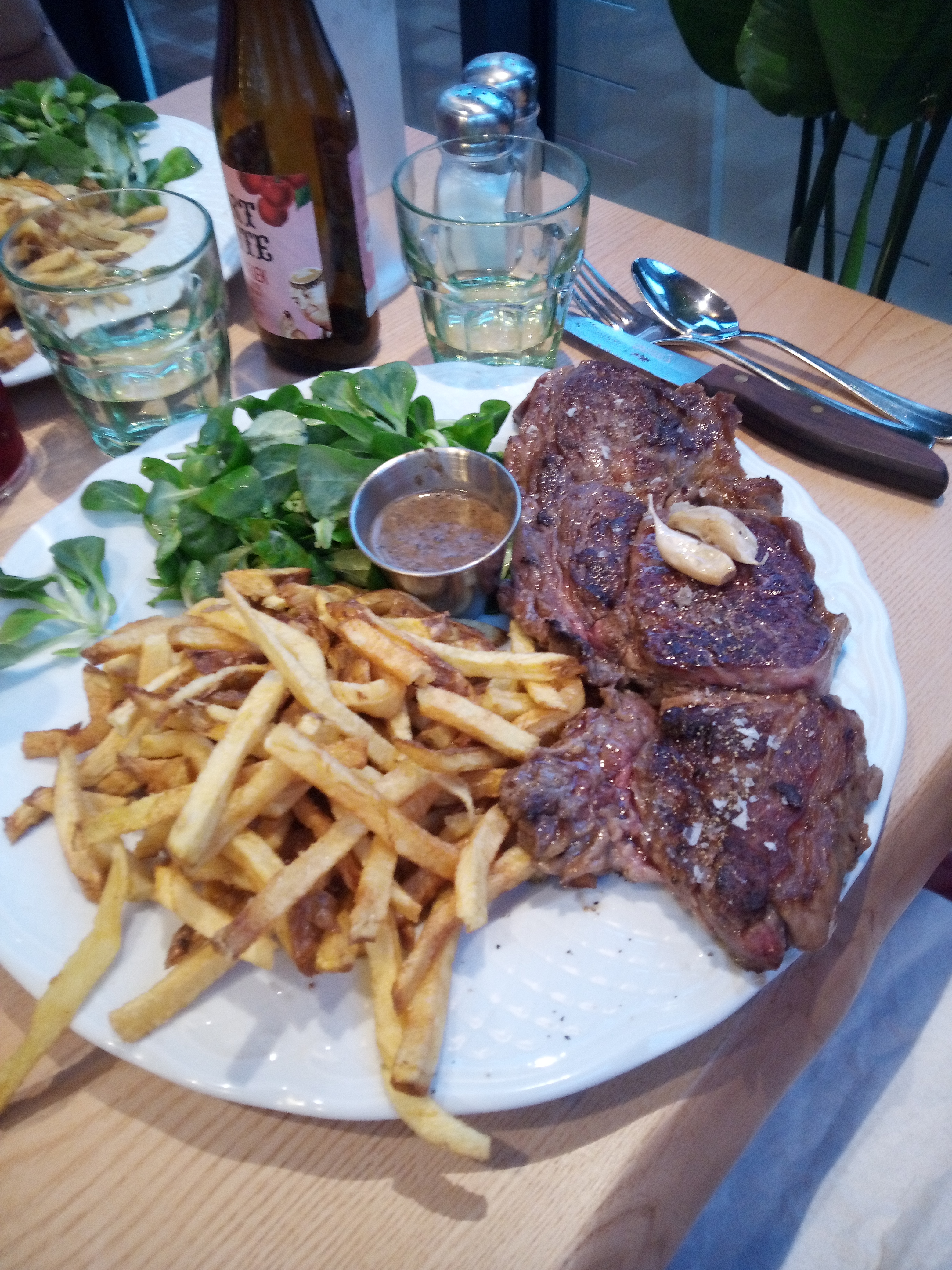 Le lieu est très agréable avec une décoration sympa. La salle est belle, large, lumineuse. Les serveurs (ses) sont sympas et efficaces. La cuisine est bonne. J’ai cependant regretté la qualité des frites qui étaient trop fines, trop cuites, pas épluchées (on aime ou pas) et molles. La viande était tendre et cuite à souhait. Le rapport qualité prix est raisonnable. Je reviendrai mais je prendrai autre chose que des frites.