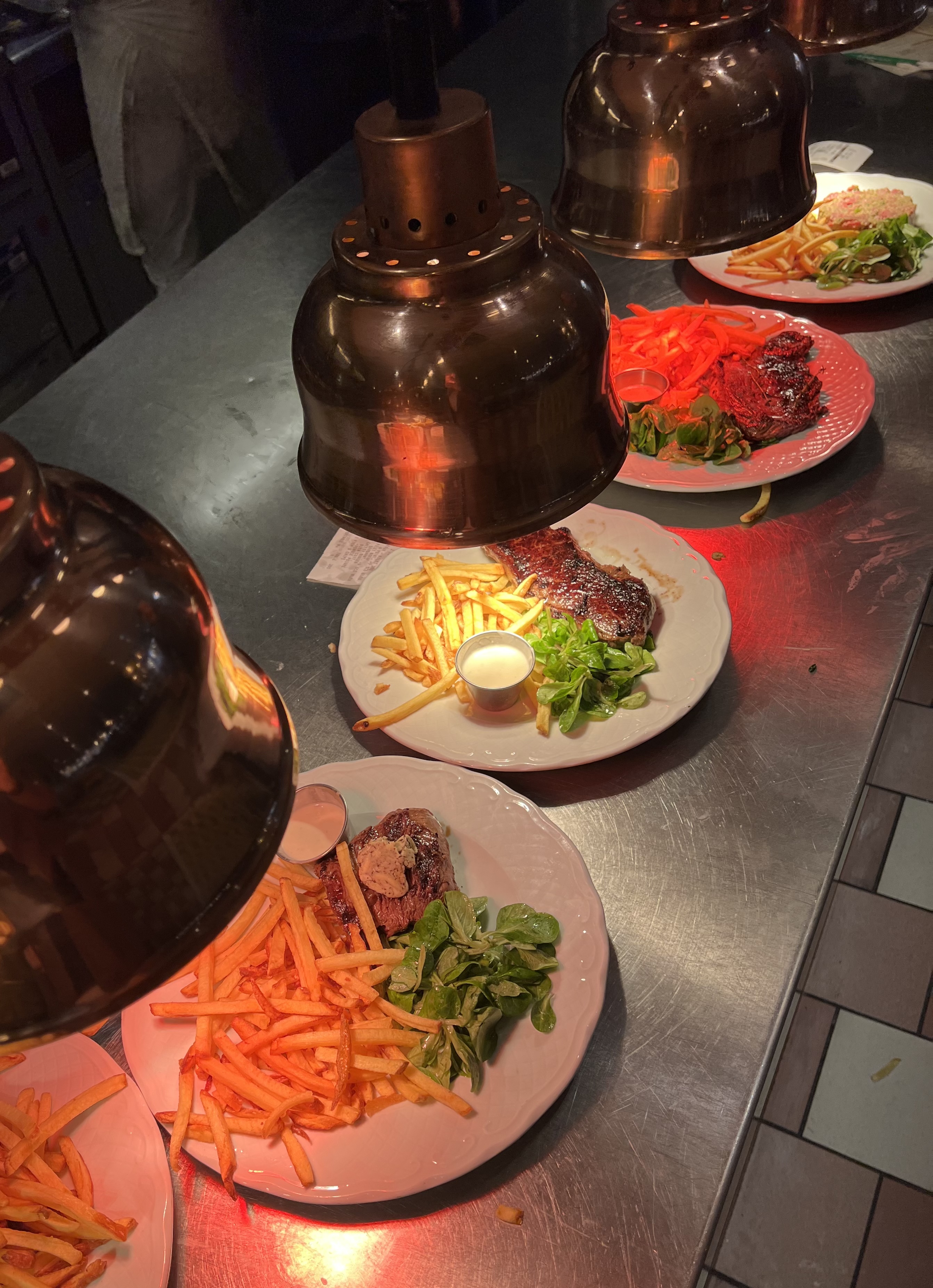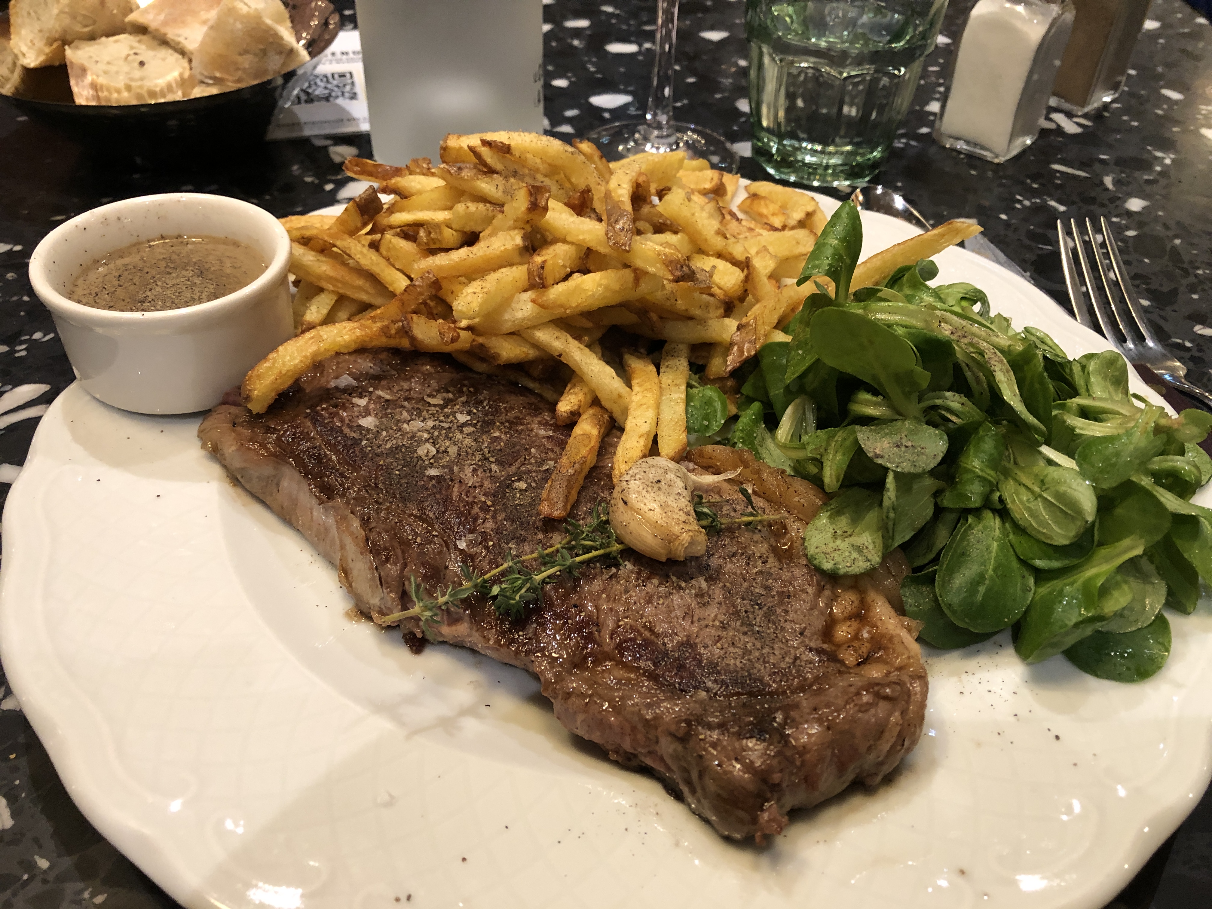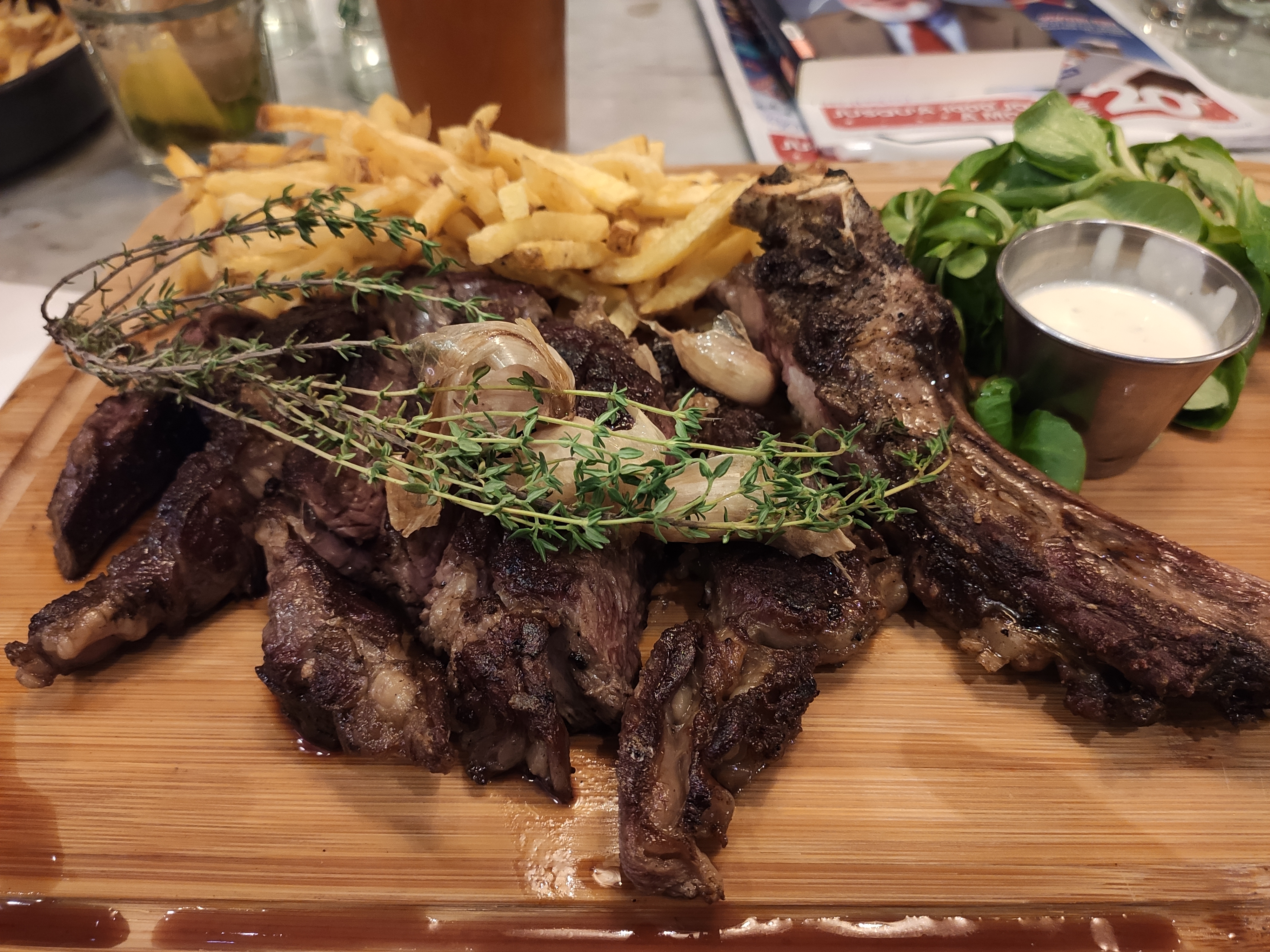Accueil (2/5): Malgré avoir réservé, un peu d'attente à l'entrée car nous sommes arrivés en plein rush du midi. Cadre & propreté du lieu (5/5) : Cadre sympa, possibilité de manger en terasse au soleil et les toilettes impeccable, très propre. Repas /service (3/5) : Plats corrects et pour les fans de viandes saignante, je vous conseille de choisir la cuisson bleu, même si vous aimez saignant. Étant donné que c'est une cuisson lente au four dans un second temps, la cuisson bleu est donc préférable afin de trouver une viande tendre dans votre assiette. Pour ce qui est du service, l'attente est un peu longue pour les os à moelle et la côte de bœuf, mais cela vous est précisé à la commande à table. L'attente fut un peu plus longue en fin de repas pour venir demander les cafés. Rapport qualité prix (3/5) : Aux vues de la conjoncture économique du moment, nous restons sur des prix corrects et la carte est abordable pour tout portefeuille.