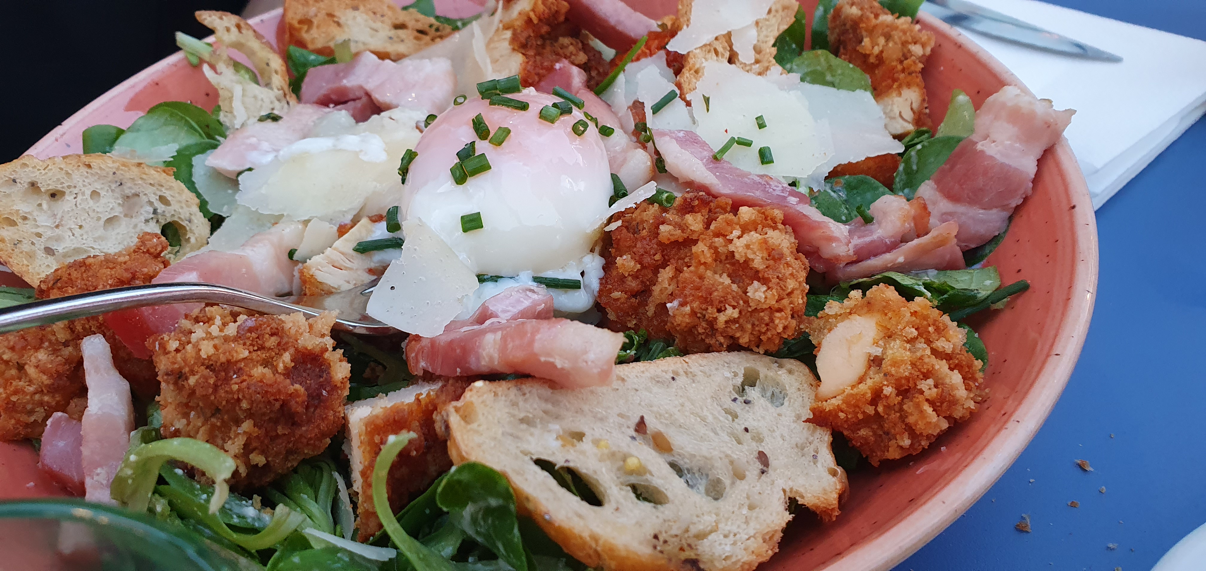 L'assiette à partager était très bonne mais la suite bcp moins. Mon poulet avait un drôle de goût et celui de mon amie également. La salade manquait de sauce et l'attente à été très longue pour notre second café. En revanche, notre serveur était très sympathique