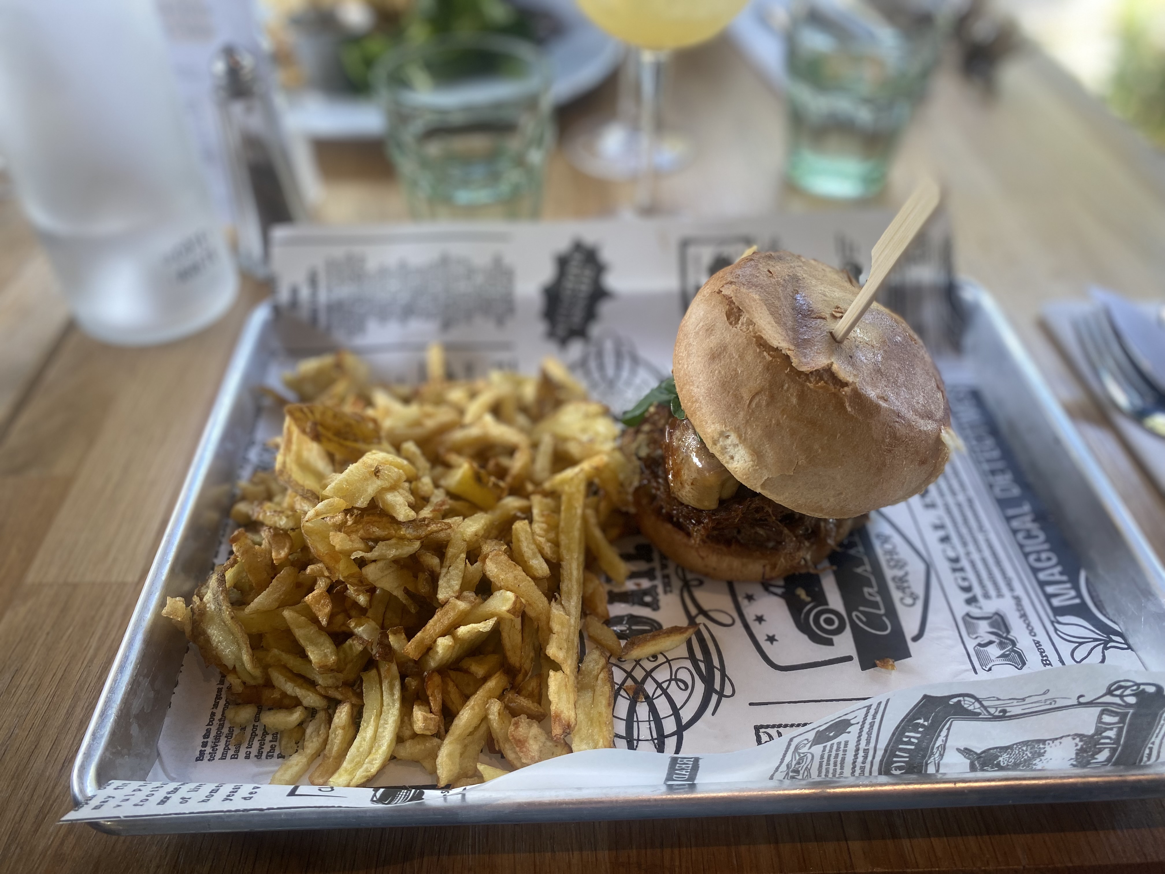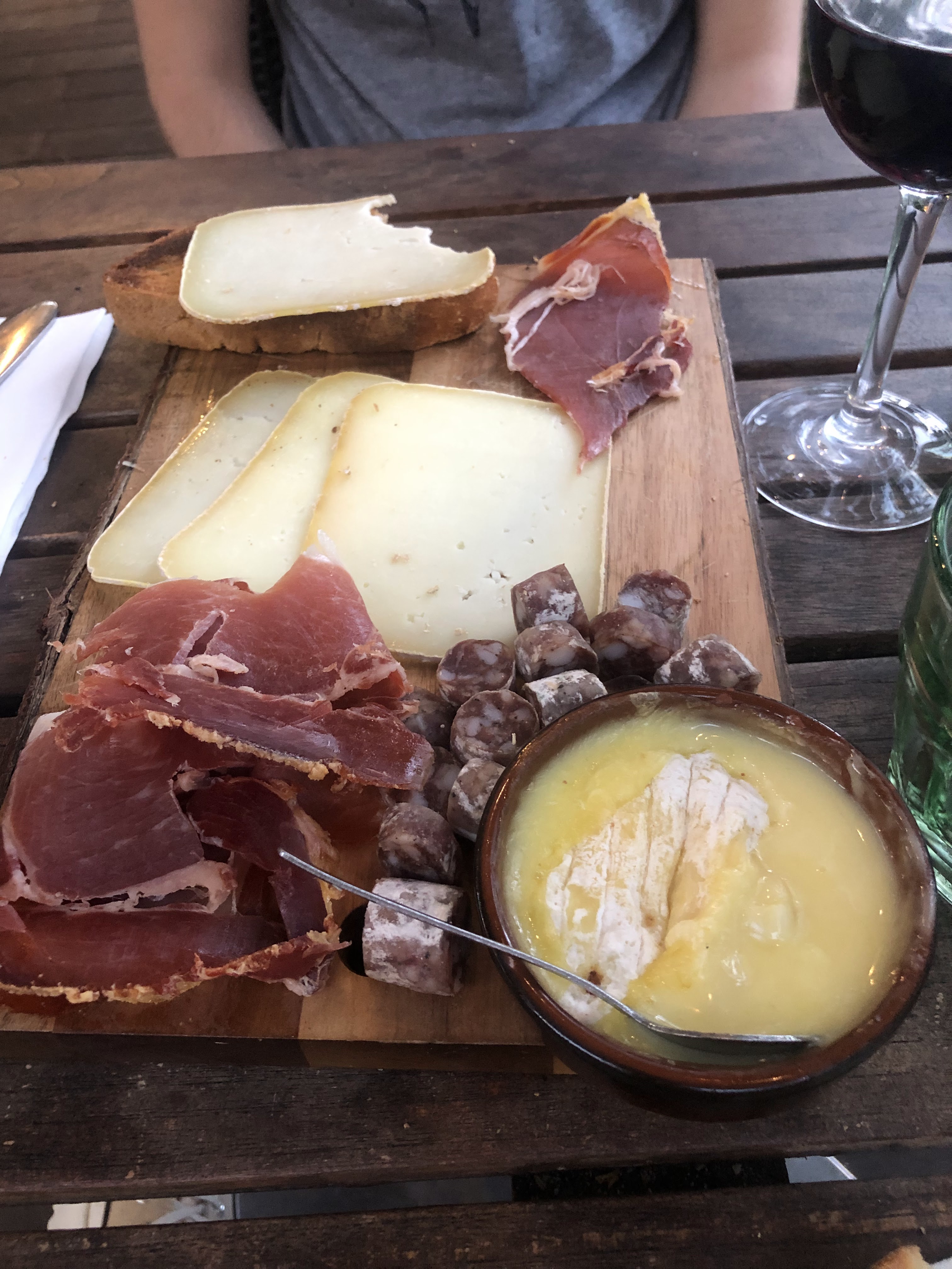 Un très jolie cadre ! Des serveurs très sympathique Mais un temps d’attente assez long Une planche de charcuterie avec un saucisson très gras et un st Marcelin truffé sans aucune saveurs de truffe Une parfaite cuisson du magret et des bonnes frites mais avec une sauce dilué très huileuse et liquide sans goût Un repas mitigé 😕