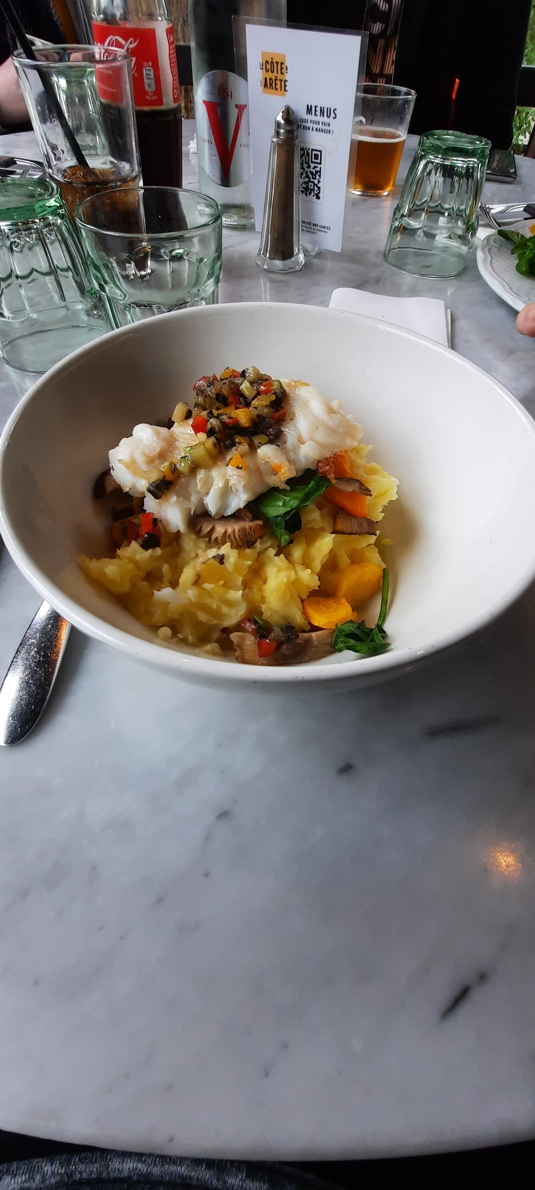 Ce n'est pas la première fois que j'allais à la côte et l'arête mais cette fois un peu déçu de mon choix, les frites pas top et le tartare de saumon un peu fade. Et déçu du pain perdu équilibre pas fou fou. Le service reste agréable