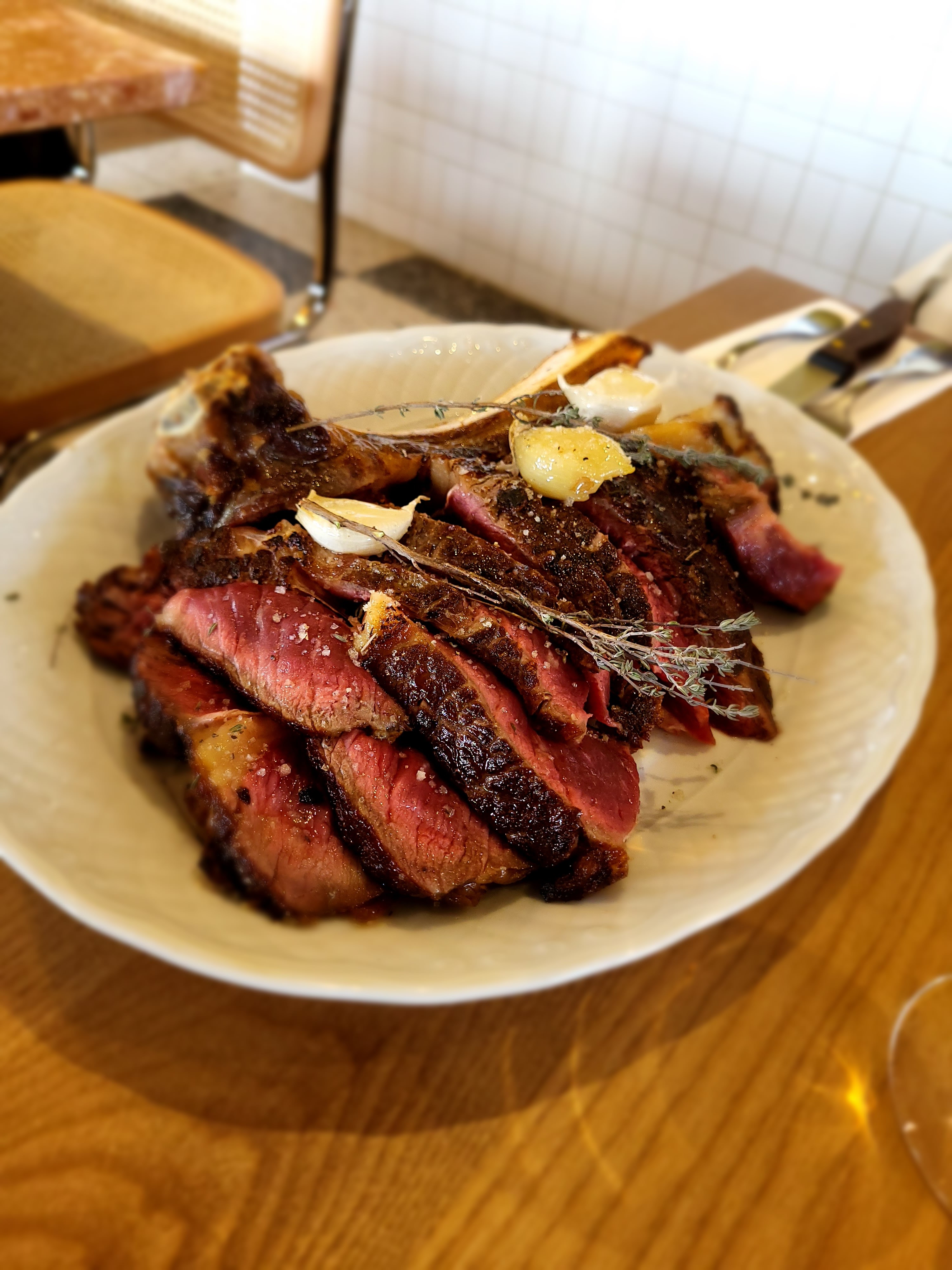 Première fois en famille dans ce restaurant que notre fils nous a fait découvrir. Planche à partager des copains sublime pour 4. La côte de bœuf maturée délicieuse sublime et cuite comme demandé. Les serveuses très gentilles et attentionnées avec nous. Disposition des tables très bien et ambiance chaleureuse. On y retournera 👍👍🥂🍾