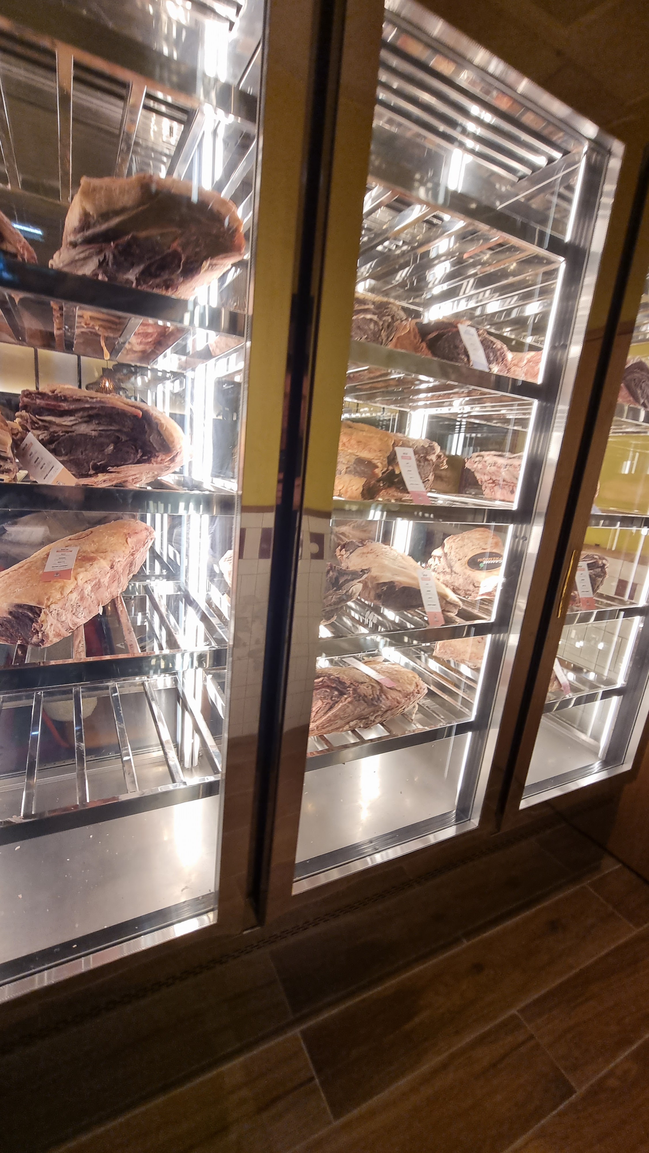 Endroit très bien aménagée avec des décorations sympa. Il y a de la place pour se garé. Se qu'il m'a impressionné c'est l'exposition des pièces de viande de bœuf à l'entrée. Le personnel très courtois et polie. On a pris juste un verre de coca et quelque chose à grignoté très bon . Et la prochaine quand on sera plus en forme. On prendra un plat .