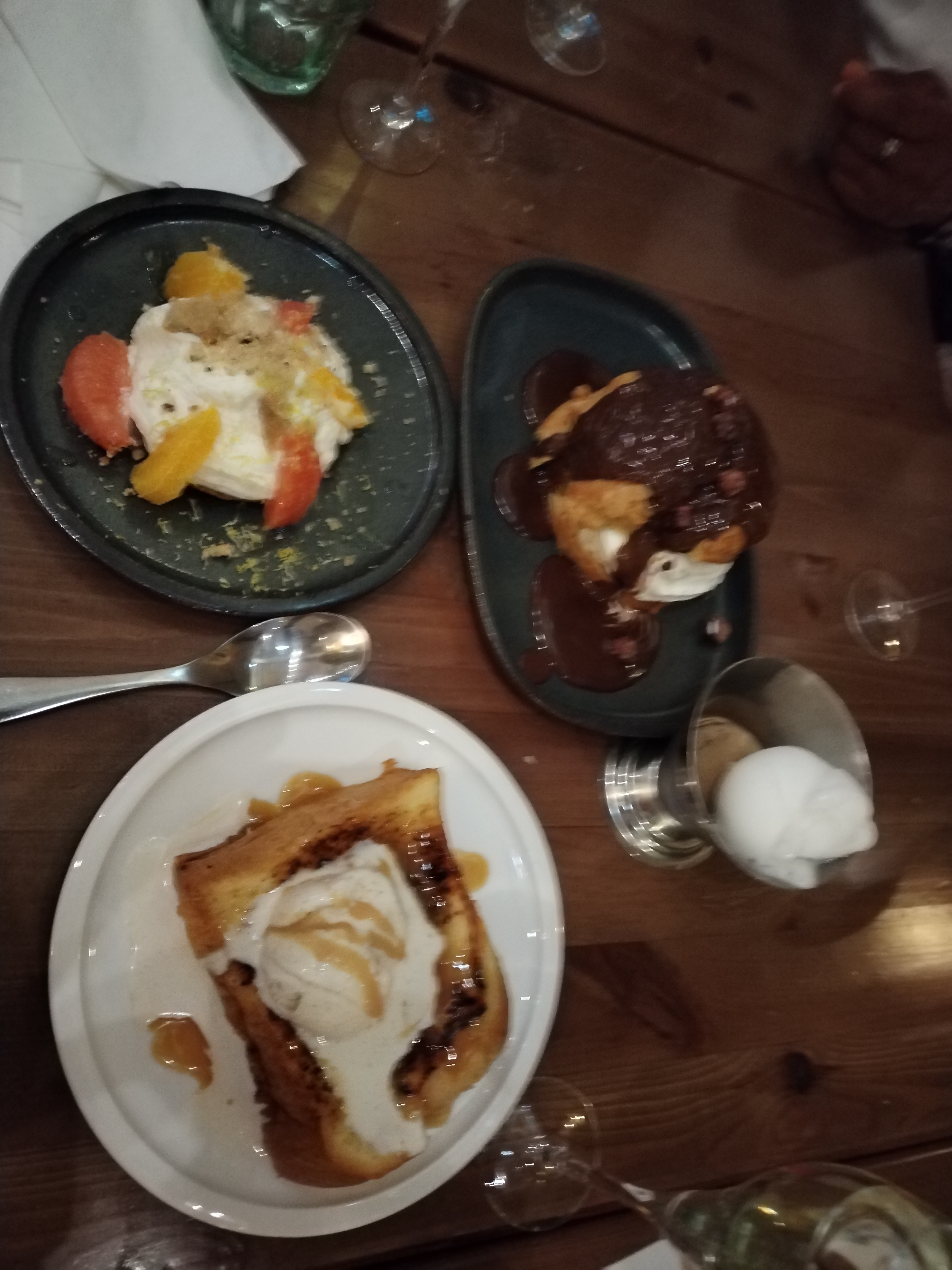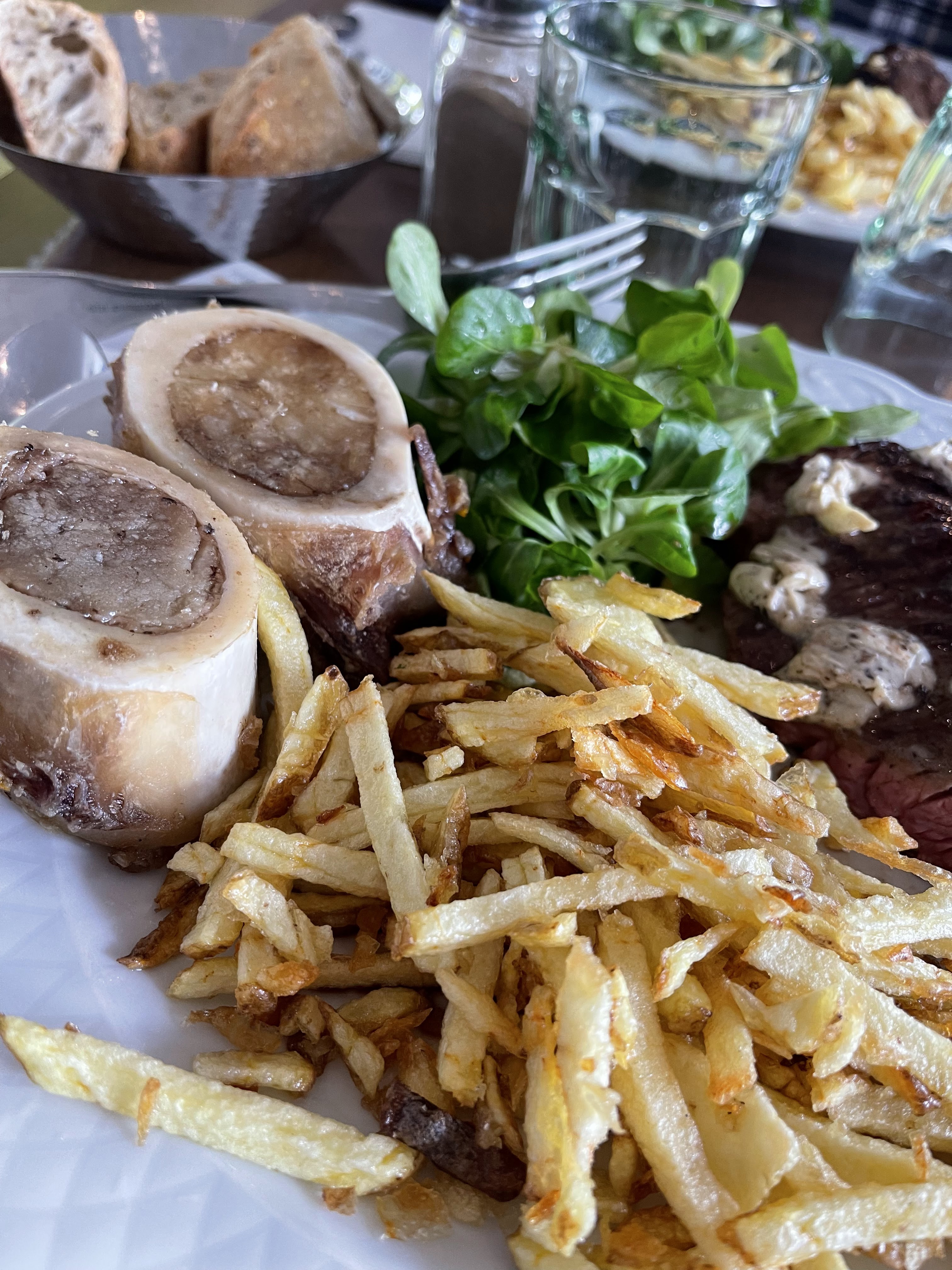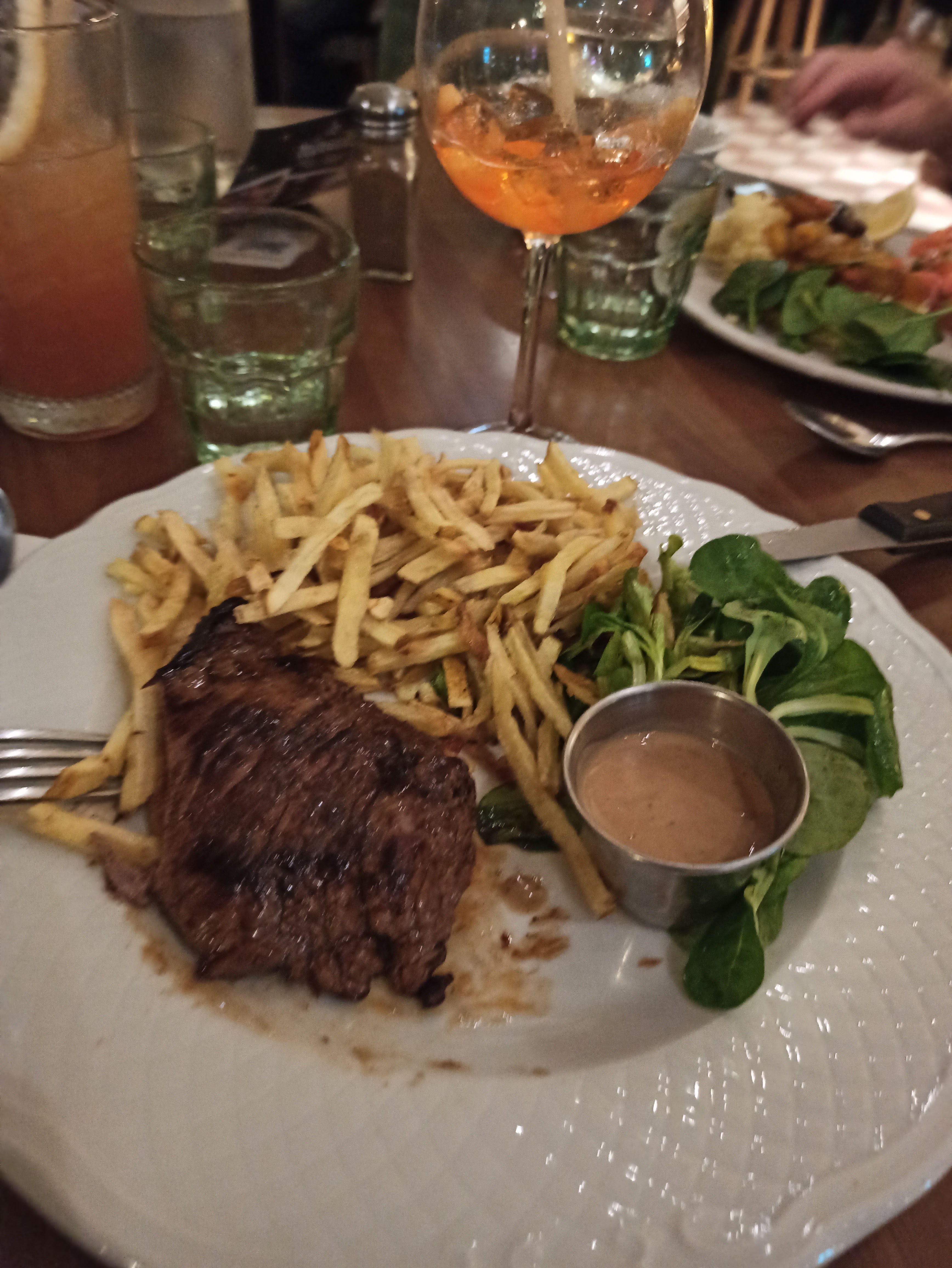 De très bons cocktails, une côte de bœuf à partager délicieuse avec une cuisson parfaite, des sauces qui accompagnent parfaitement la viande. Un peu déçue par des frites trop fines qui font plus « chips » que frites, heureusement qu’elles sont à volonté pour qu’on en ait un peu plus. Un thé gourmand avec des desserts sympathiques. Le cadre est vraiment sympa. Nous y retournerons sans aucun doute.