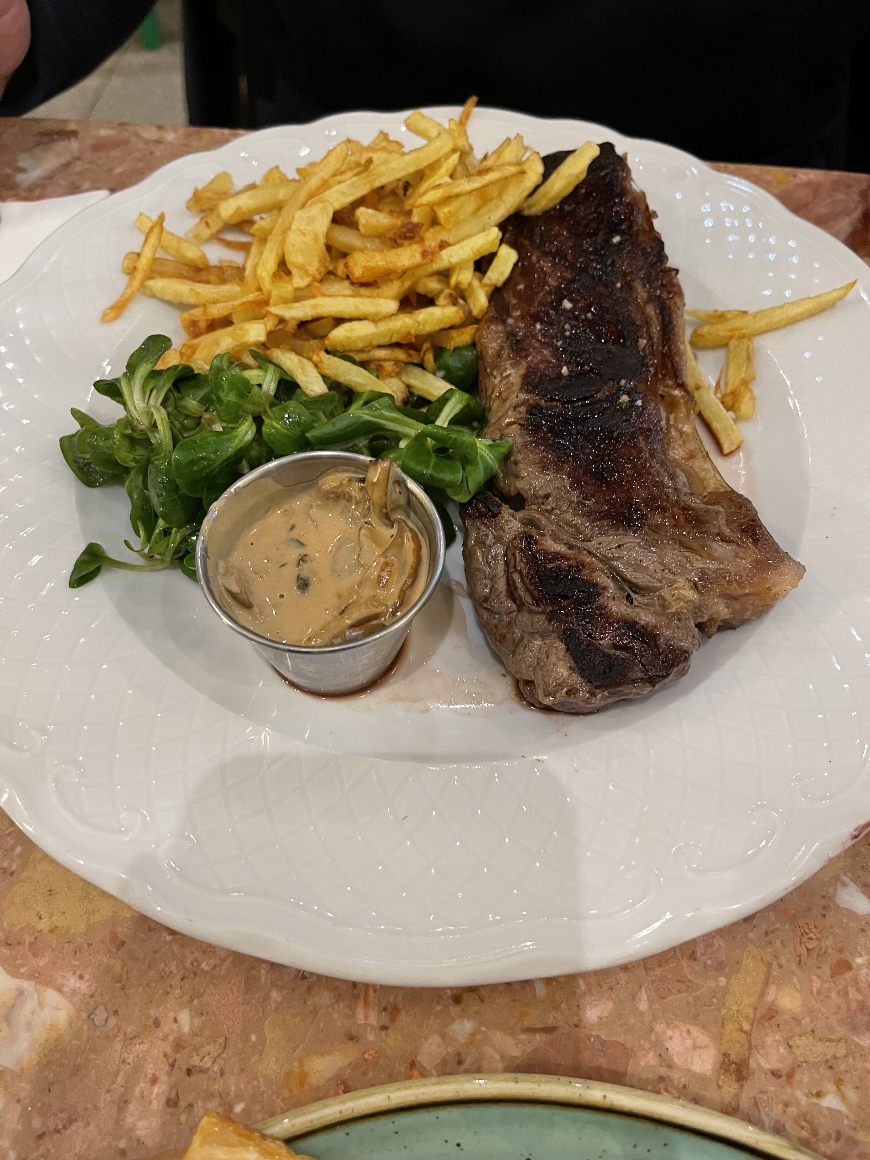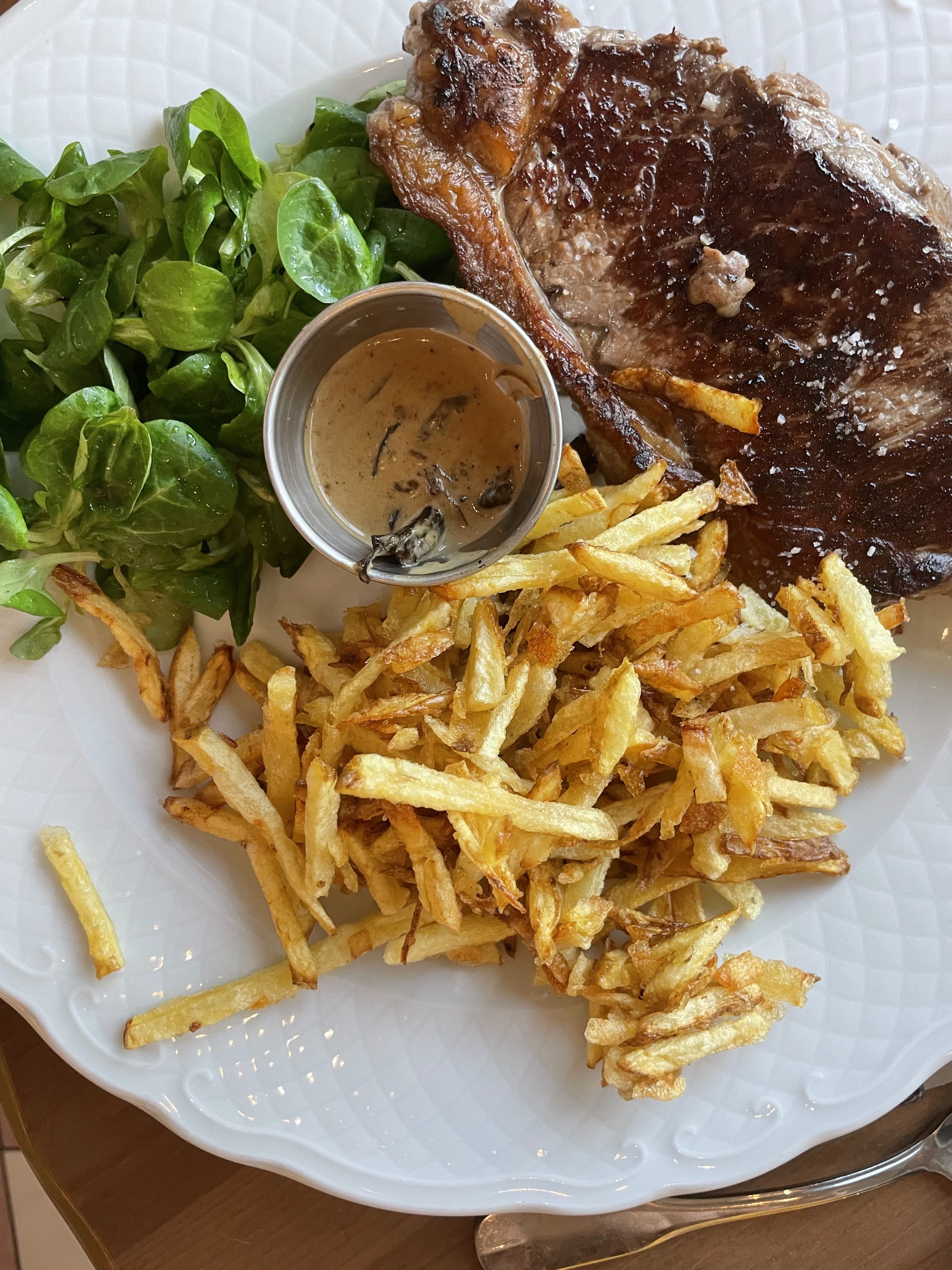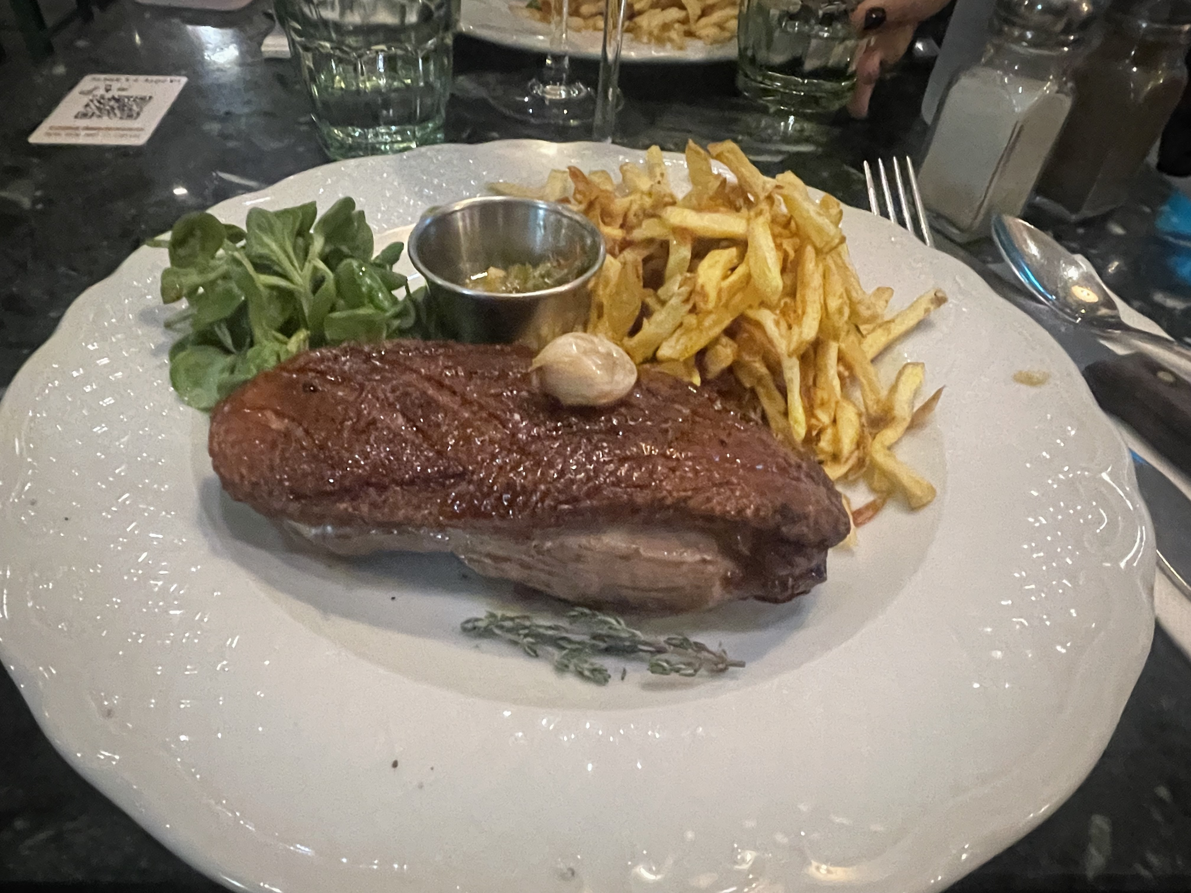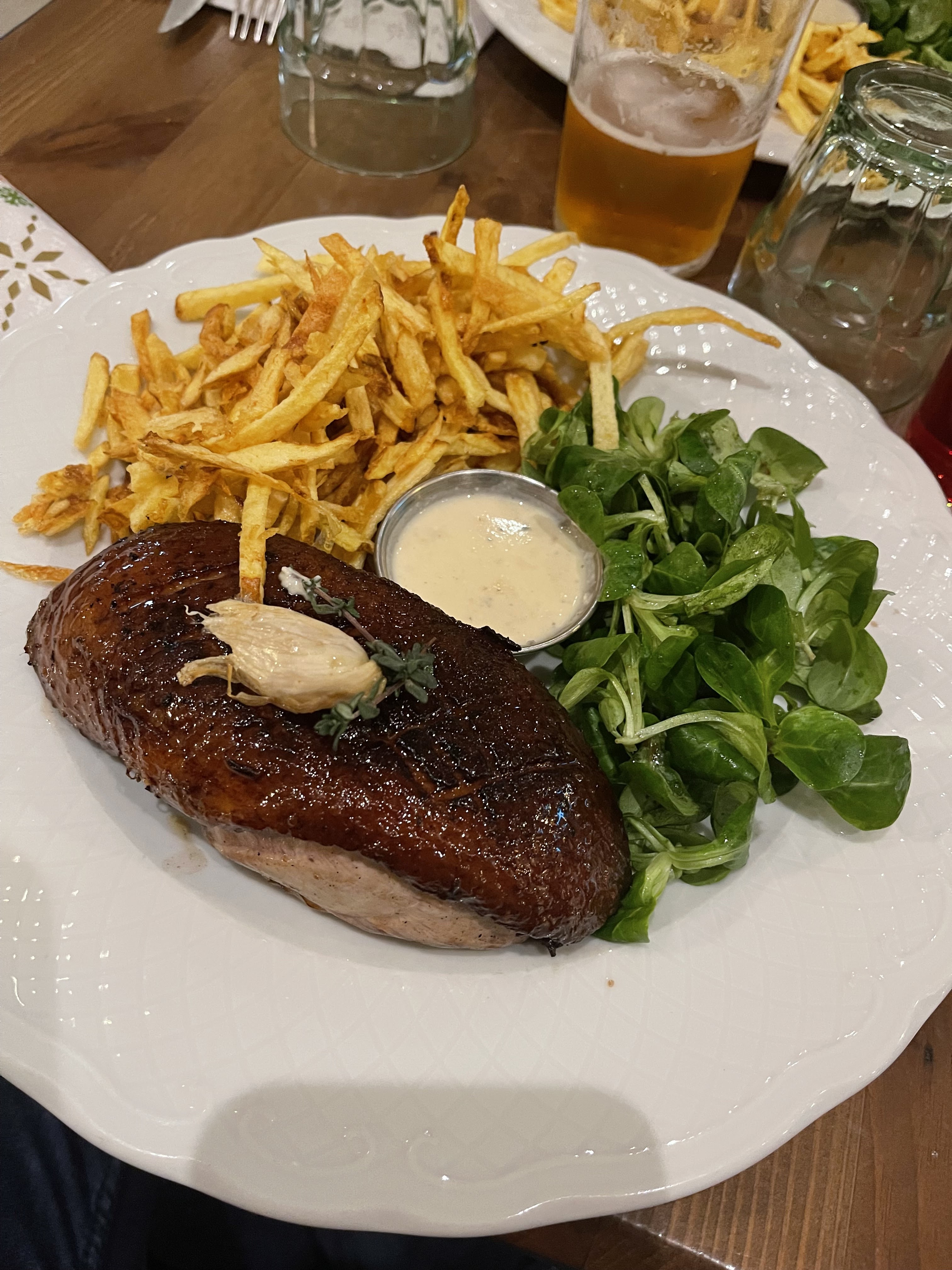 Le cadre est super joli ! J’ai pris un magret entier et une « enooooorme profiterole » ! On peut dire que c’est un temple pour les amoureux de la bonne viande ! Nous avons été bien accueillies et très bien conseillées ! Personnel au top vraiment ! La profiterole est vraiment enormeee ! Je vous conseille d’en prendre une pour deux 😉