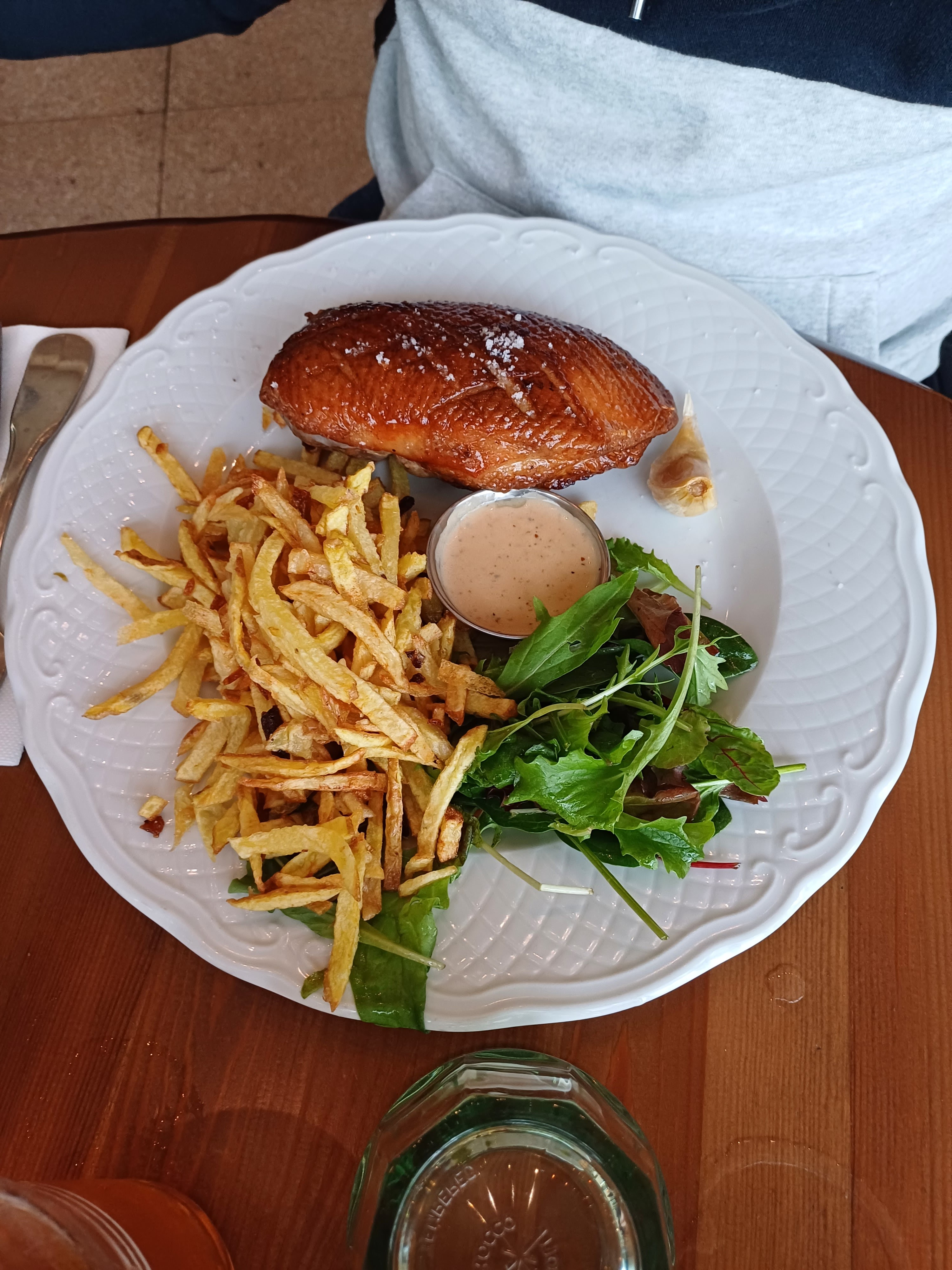 Je met 4 étoiles à ce restaurant pour 2 raisons. Je n ai pas pris le temps de goûter le poisson....il fallait manger vite fait....et les frites sont minuscules...on aime on aime pas je préfère la taille au dessus... Pour le reste qualite service rapide et super..on pardonne les inattentions des petits jeunes il faut bien apprendre le métier....bientôt il n y aura plus de serveur ...le cadre est vraiment soigné et agréable spacieux lumineux et la situation très bien on y est allé à vélo A refaire pour les produits de la mer !