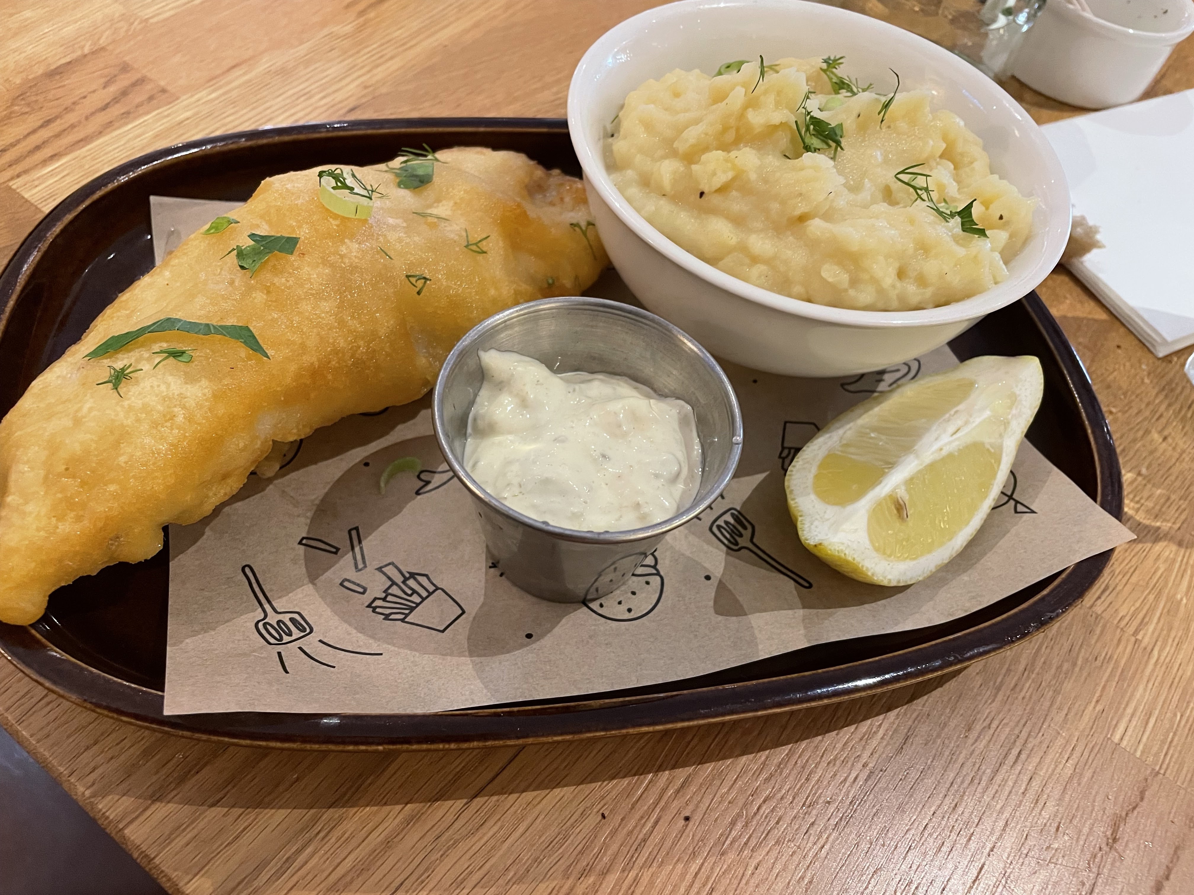 Première grosse déception hier pour cette enseigne pour laquelle nous avons nos habitudes à VILLENAVE et LABEGE. Tartare de saumon fade et manquant de fraicheur, erreur de plat pour ma part. Panure du FISH&CHIPS pas assez cuite. Service déplorable : la serveuse à la limite du correct qui n'avait vraiment pas envie de travailler un 8 mai. Uniquement la possibilité de choisir des boissons sucrées en accompagnement du menu enfant: pas de possibilité de prendre de l'eau minéral, pas même un coca zéro.