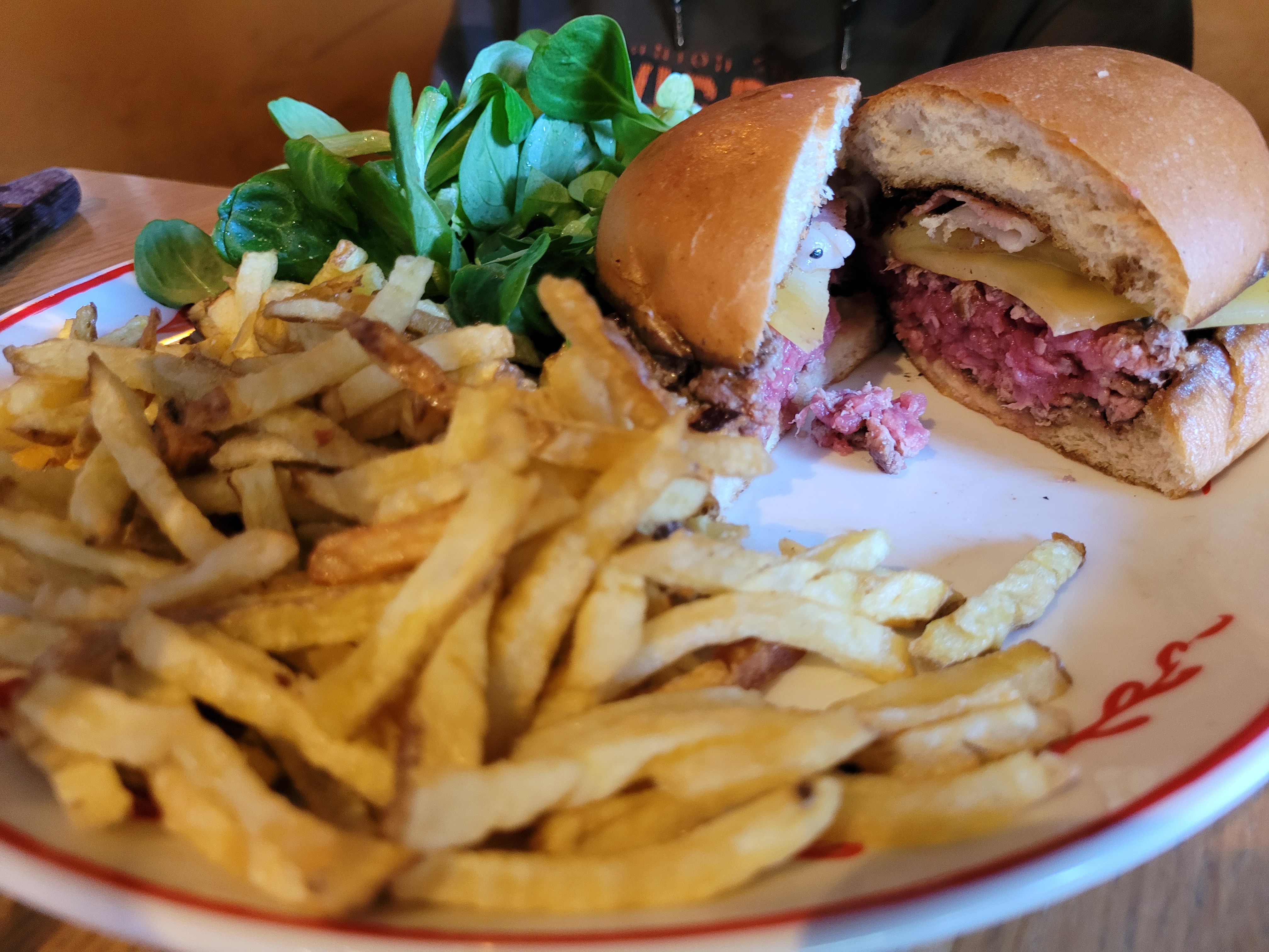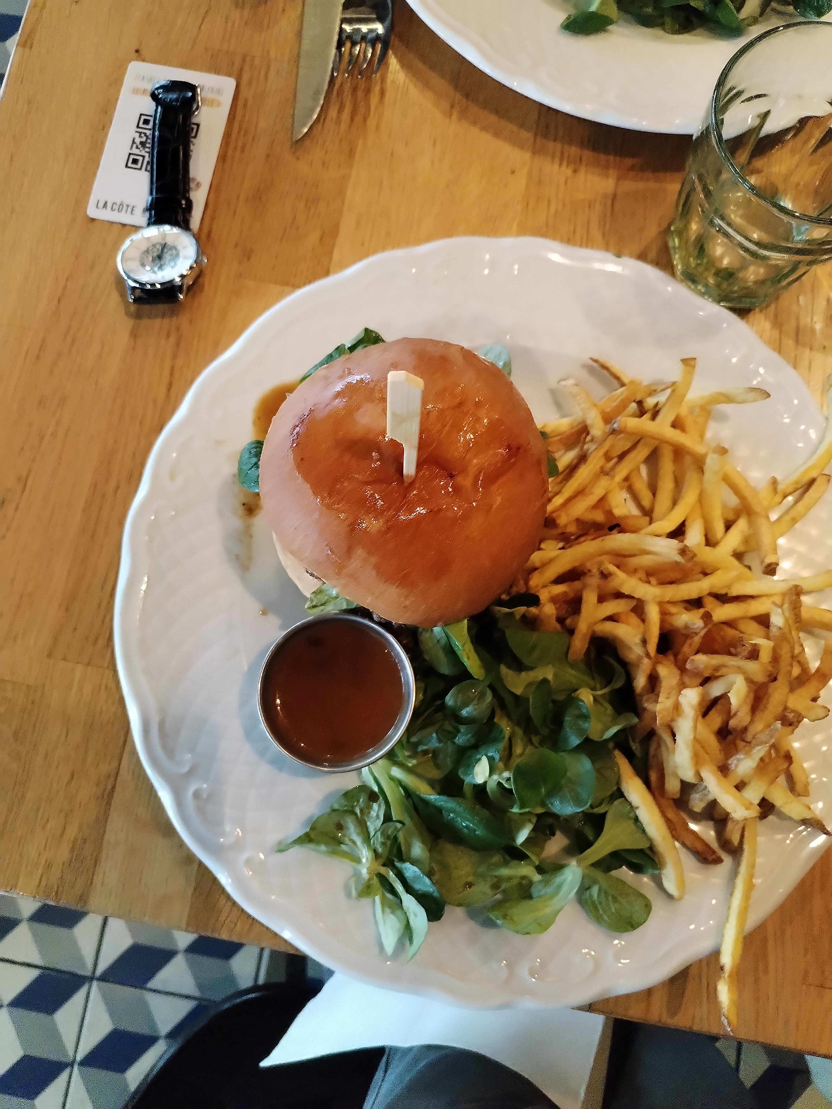 Idéalement situé, cadre agréable mais surtout une très bonne adresse, avec de la bonne viande. Le Burger de canard est juste à tomber....petit bémol il y avait beaucoup de monde et le plat était tiède et les frites quasi froides. Merci au personnel agréable.