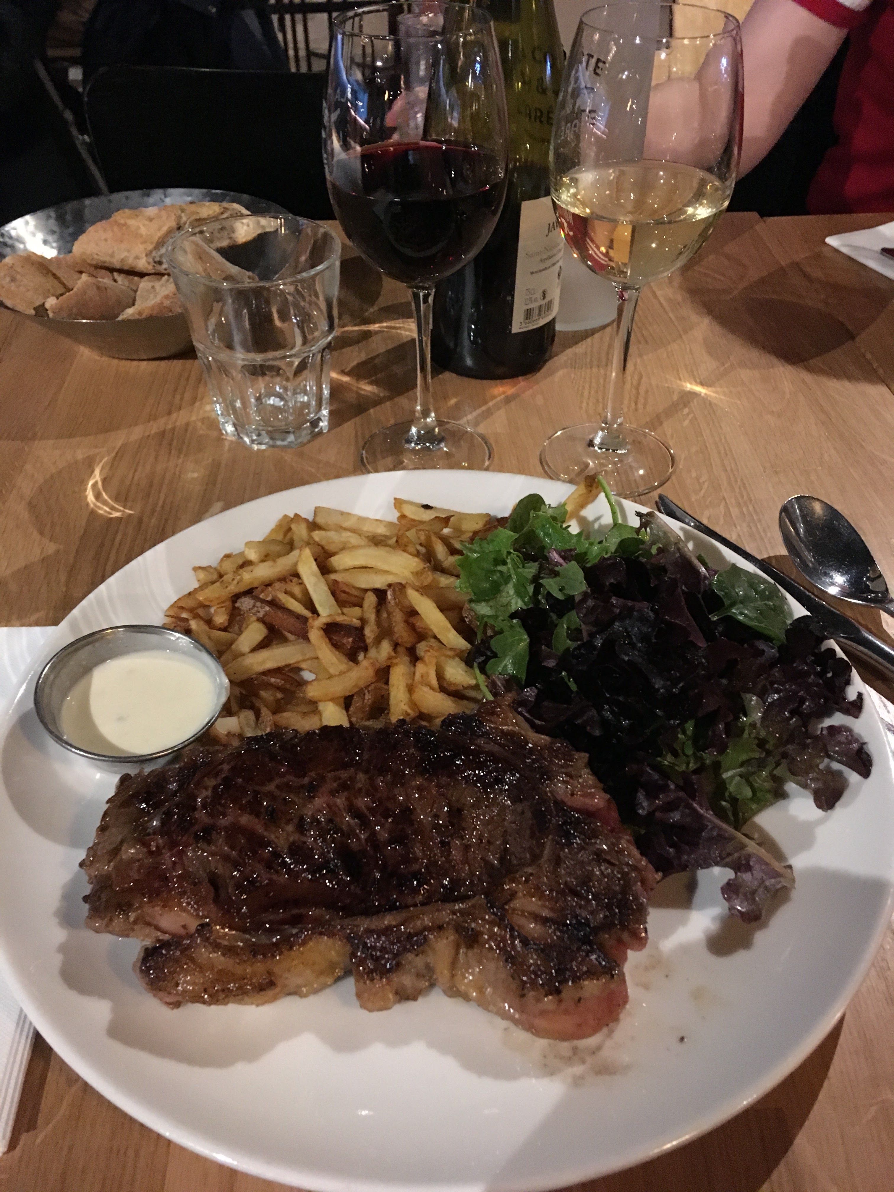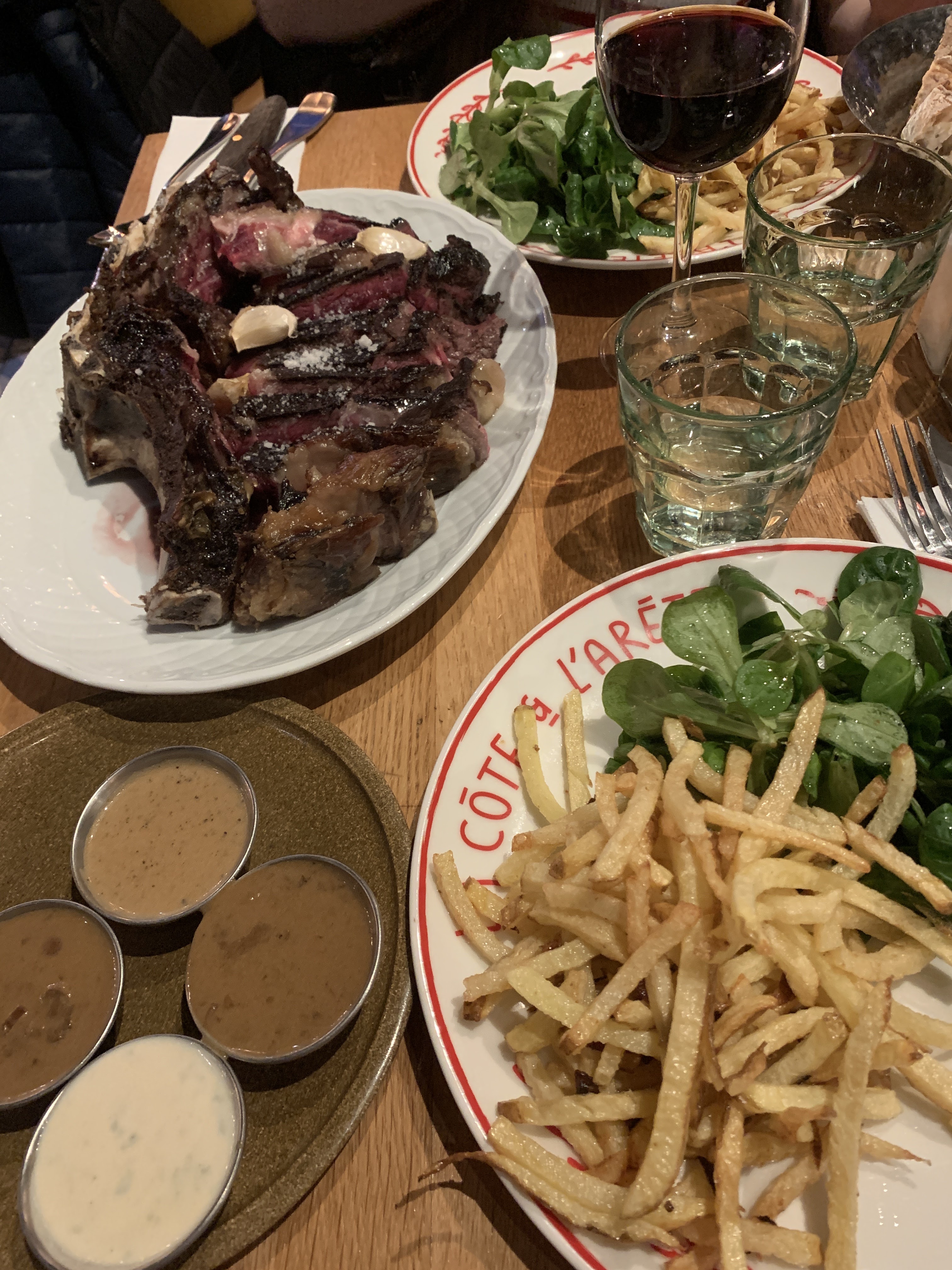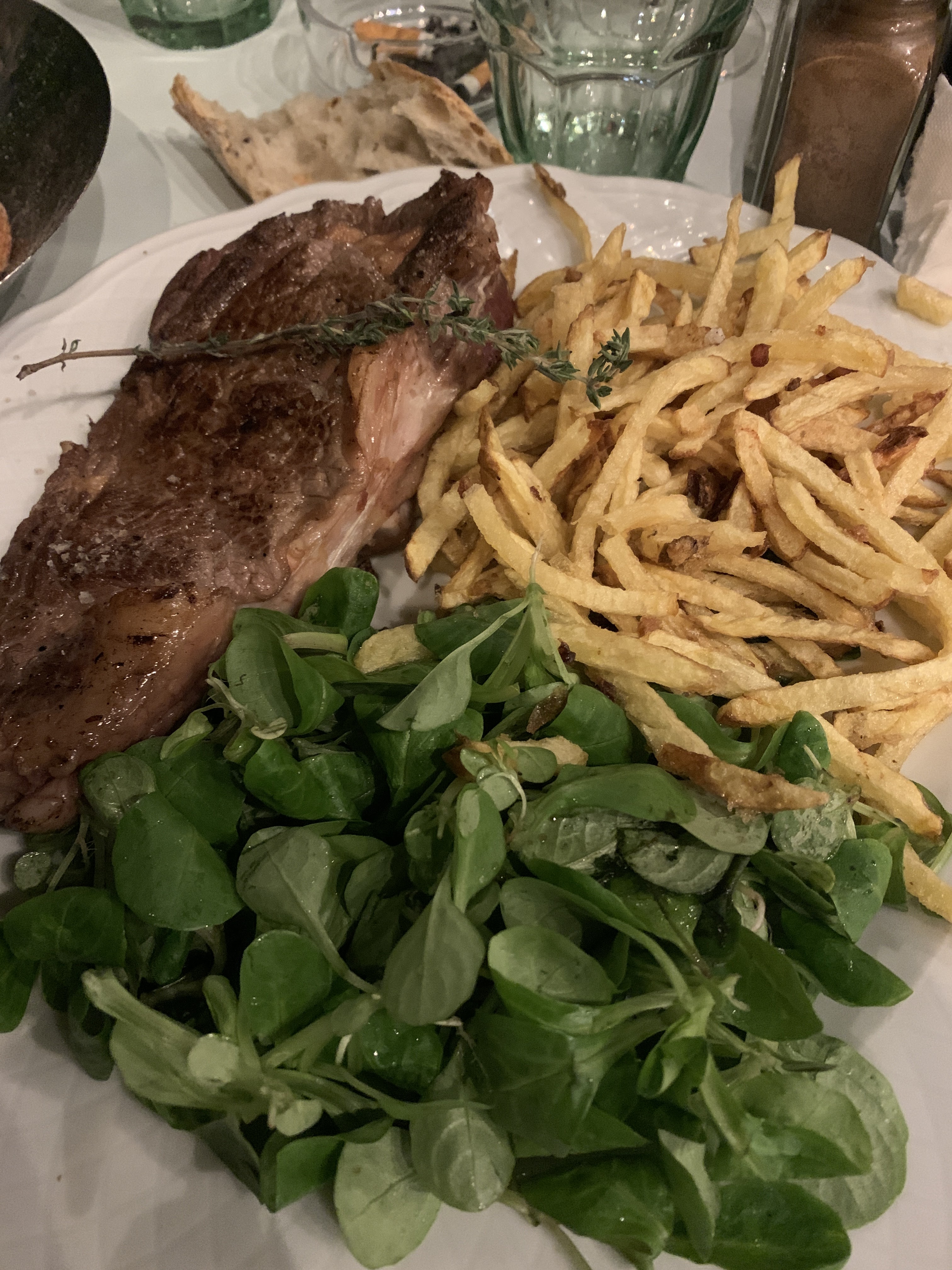 Au vu des commentaires plus négatifs que positifs trouvés après avoir effectué la réservation, nous avouons avoir été un peu réticents. Cependant nous avons été agréablement surpris. La viande été très bonne et très tendre, les frites également, et le fait d'accompagner cela par une assiette de jeunes pousses est très appréciable. Seul bémol, si vous commandez un verre de vin durant votre repas, armez-vous de patience ! Mais dans l'ensemble c'est plutôt très positif.