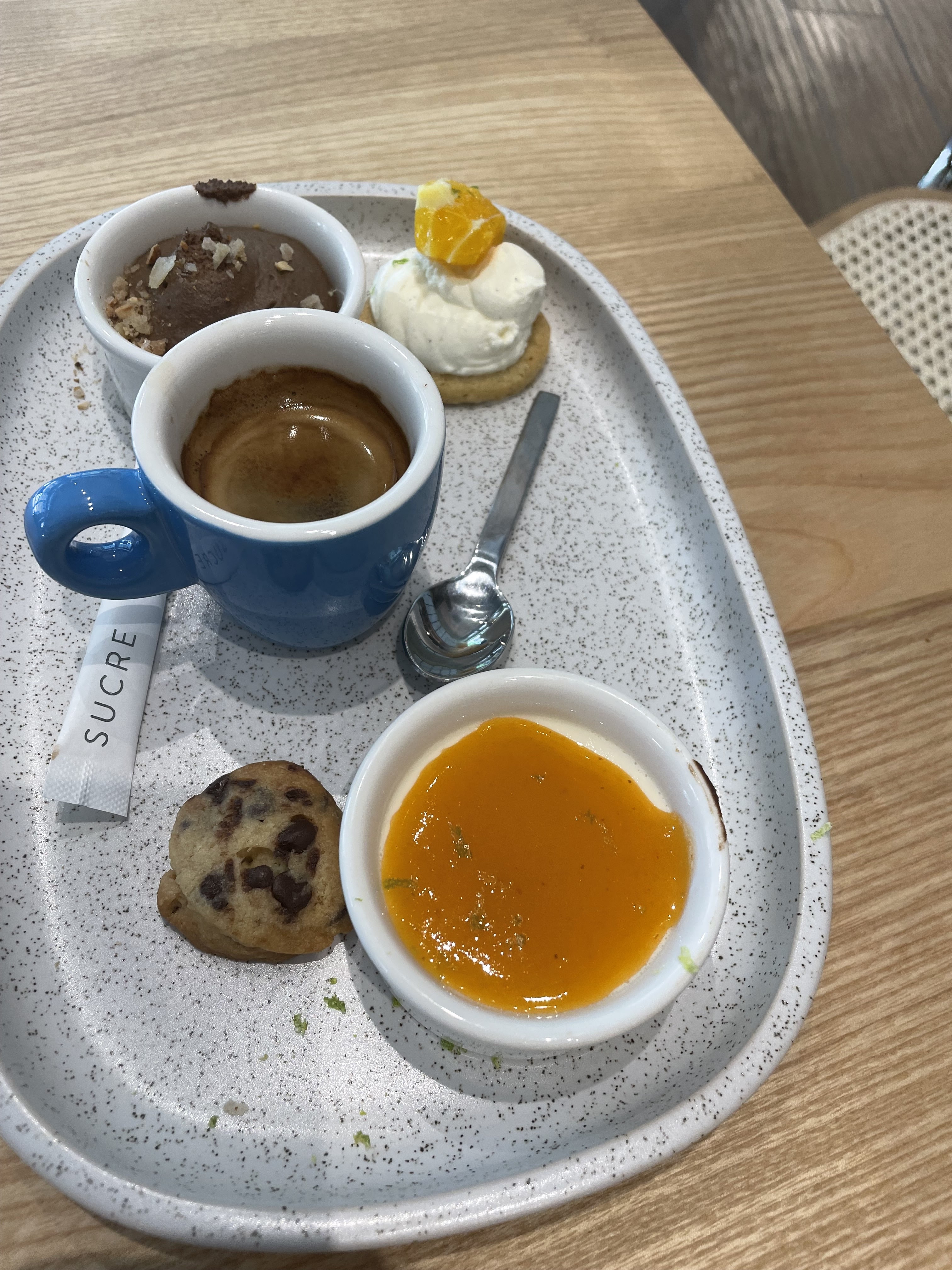 Nous avons trouvé le repas de bonne qualité. Mais nous n’avons jamais eu les frites supplémentaires demandées avec nos plats et pas de cookies avec les cafés seulement des miettes dans une des sous coupe !! ( la raison rupture de stock !) Nous avons trouvé le restaurant bruyant Tout cela gâche le ressenti de ce déjeuné.