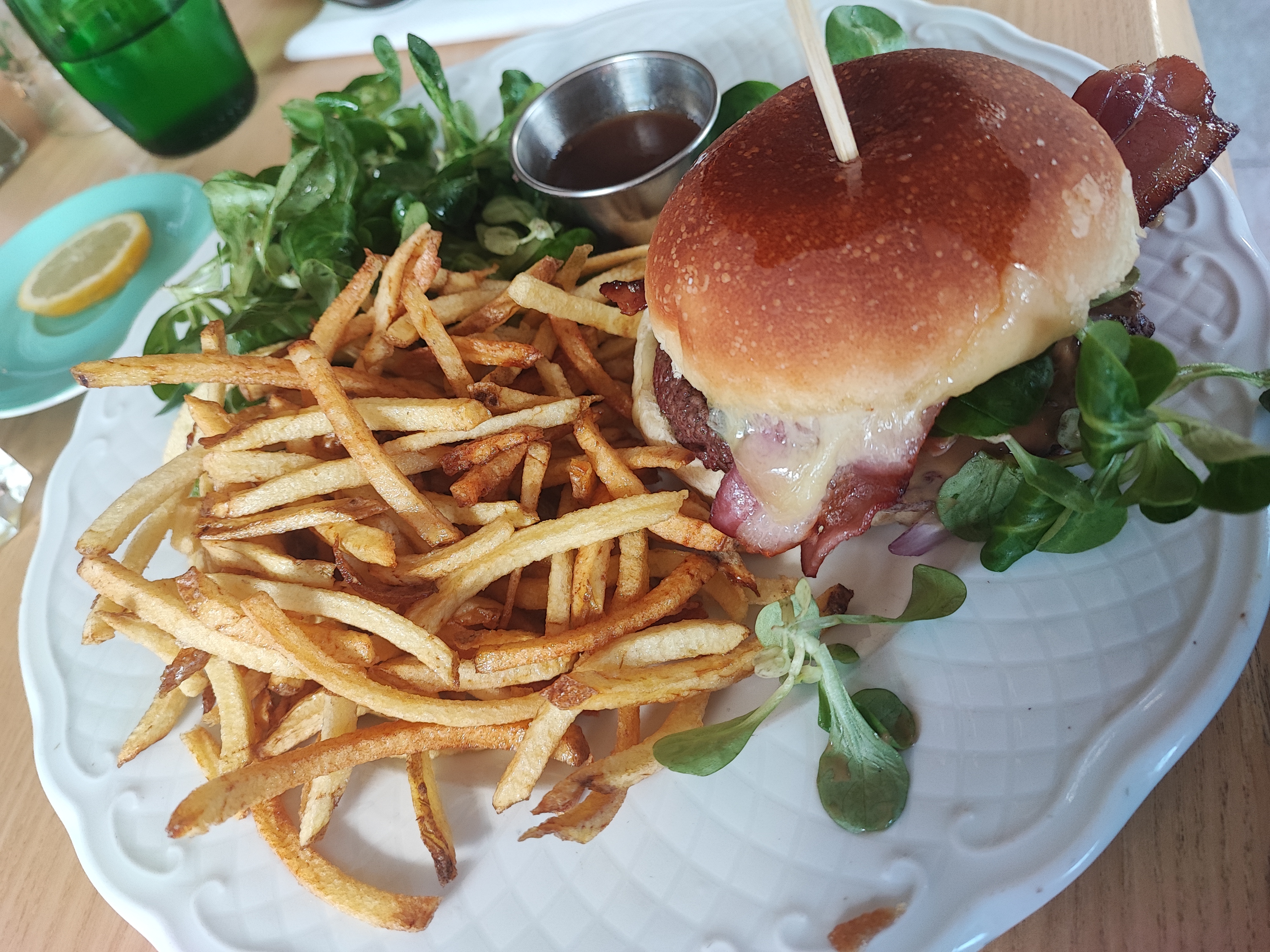 Ce fut une bonne soirée ! L'ambiance est sympa et le personnel gentil (certains serveurs plus que d'autres). Les plats sont bons (Frites moyennes, petite et pas incroyables). La salade en accompagnement fait le travail. Vous pouvez y aller !