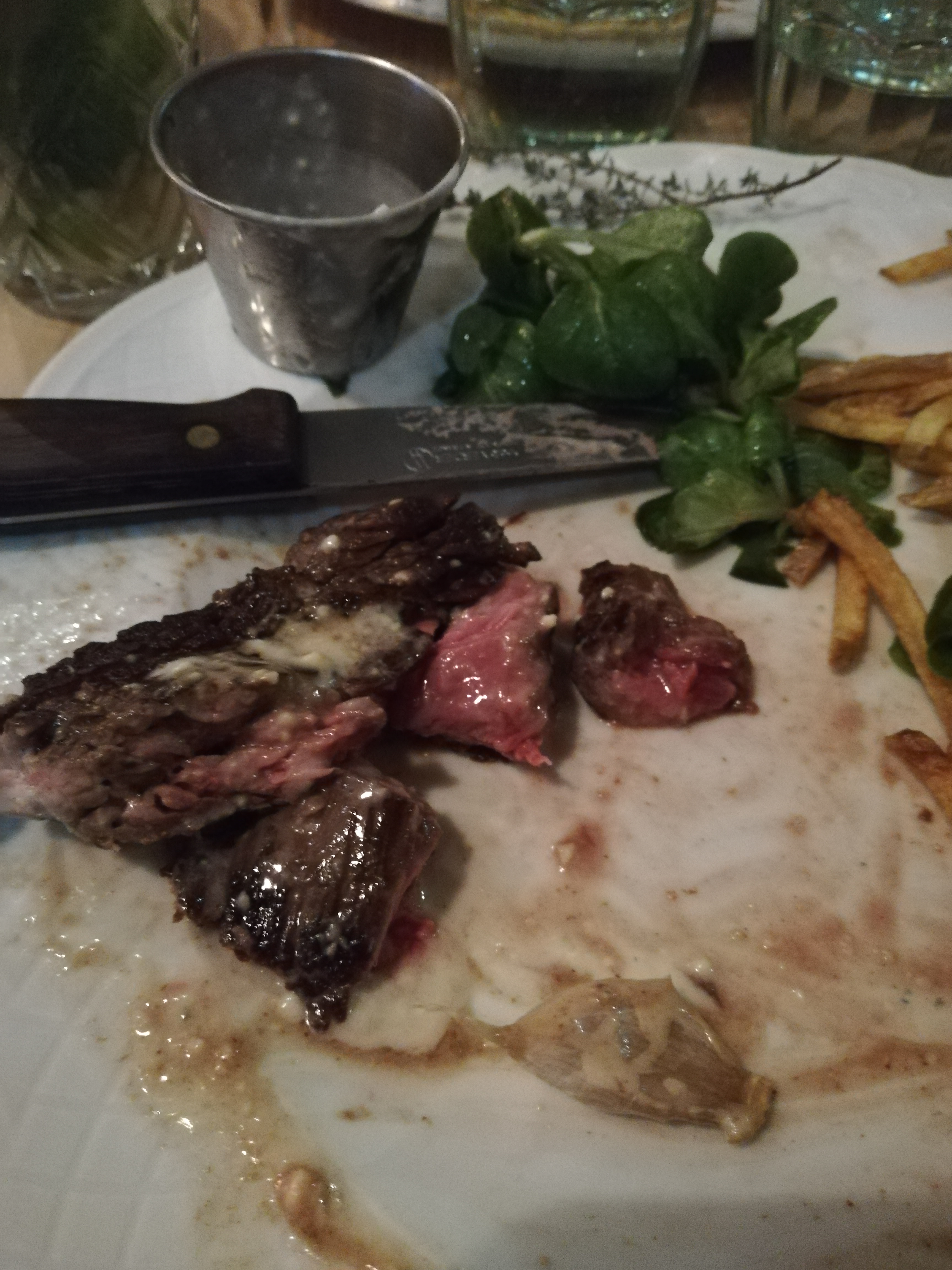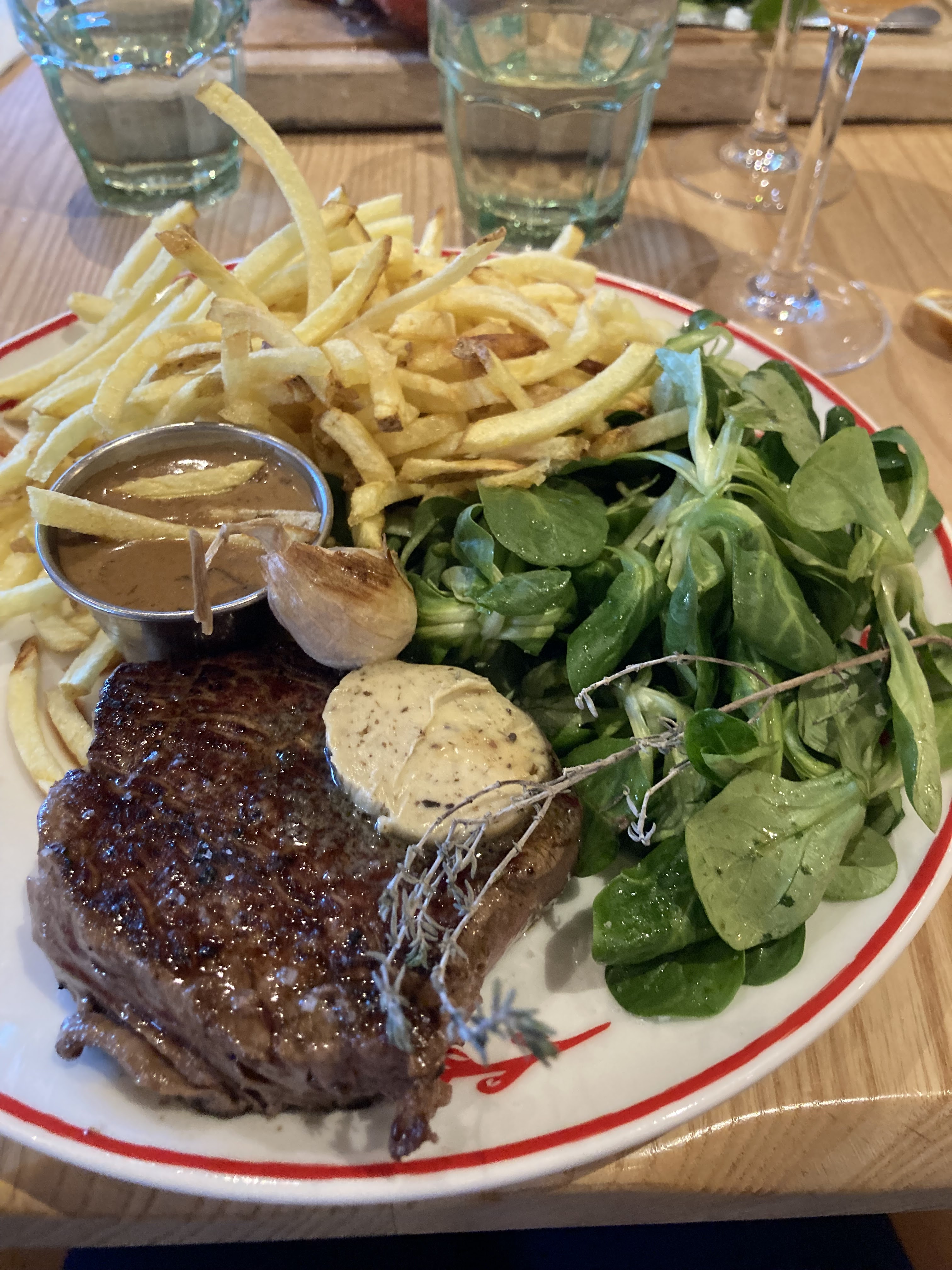 Viande très bonne ainsi que le beurre truffé et la sauce aux cèpes. Les cocktails vraiment excellents. Seul bémol pour les frites qui sont des allumettes, j’aurais préféré qu’elles soient coupées moins finement.