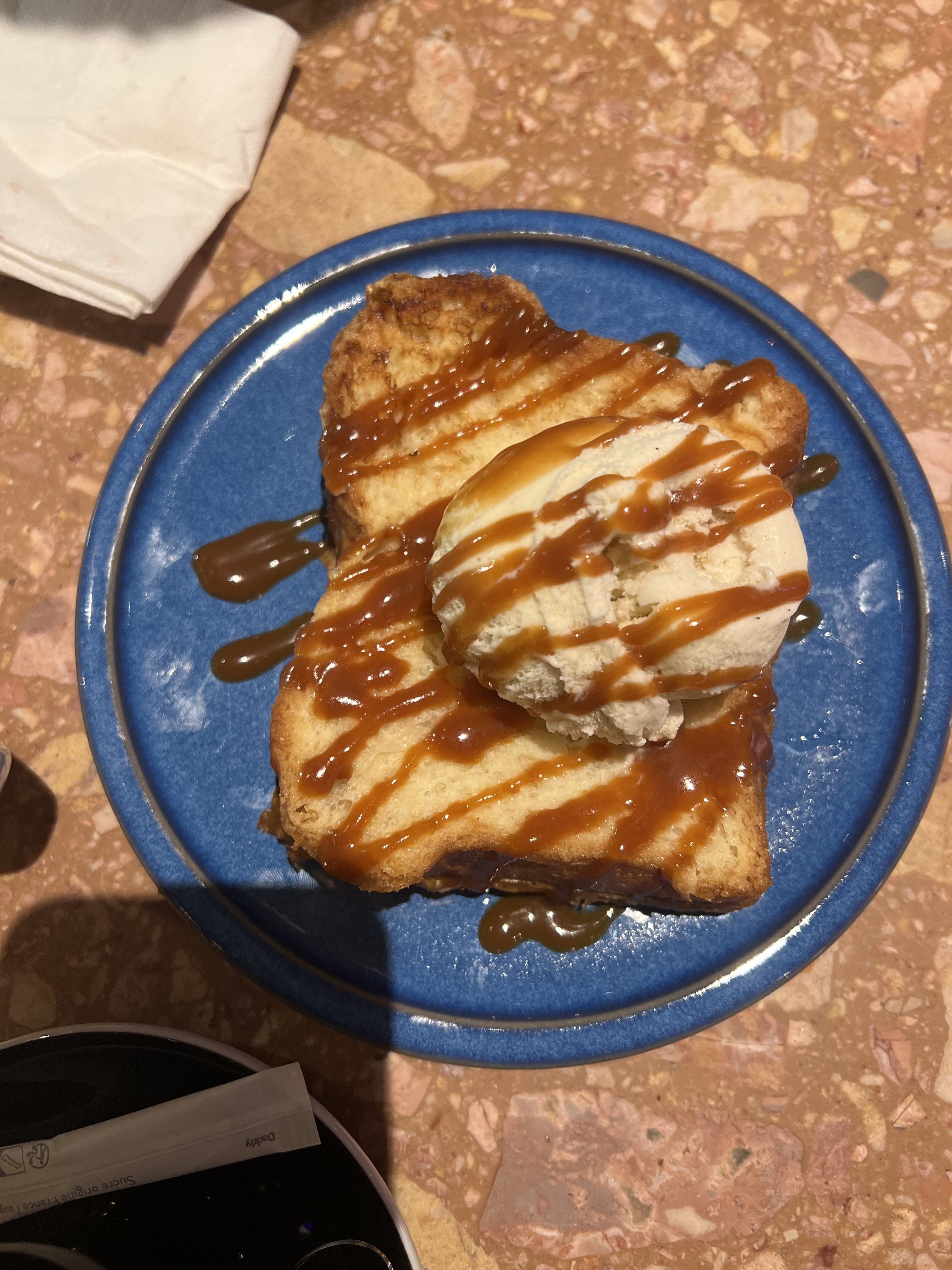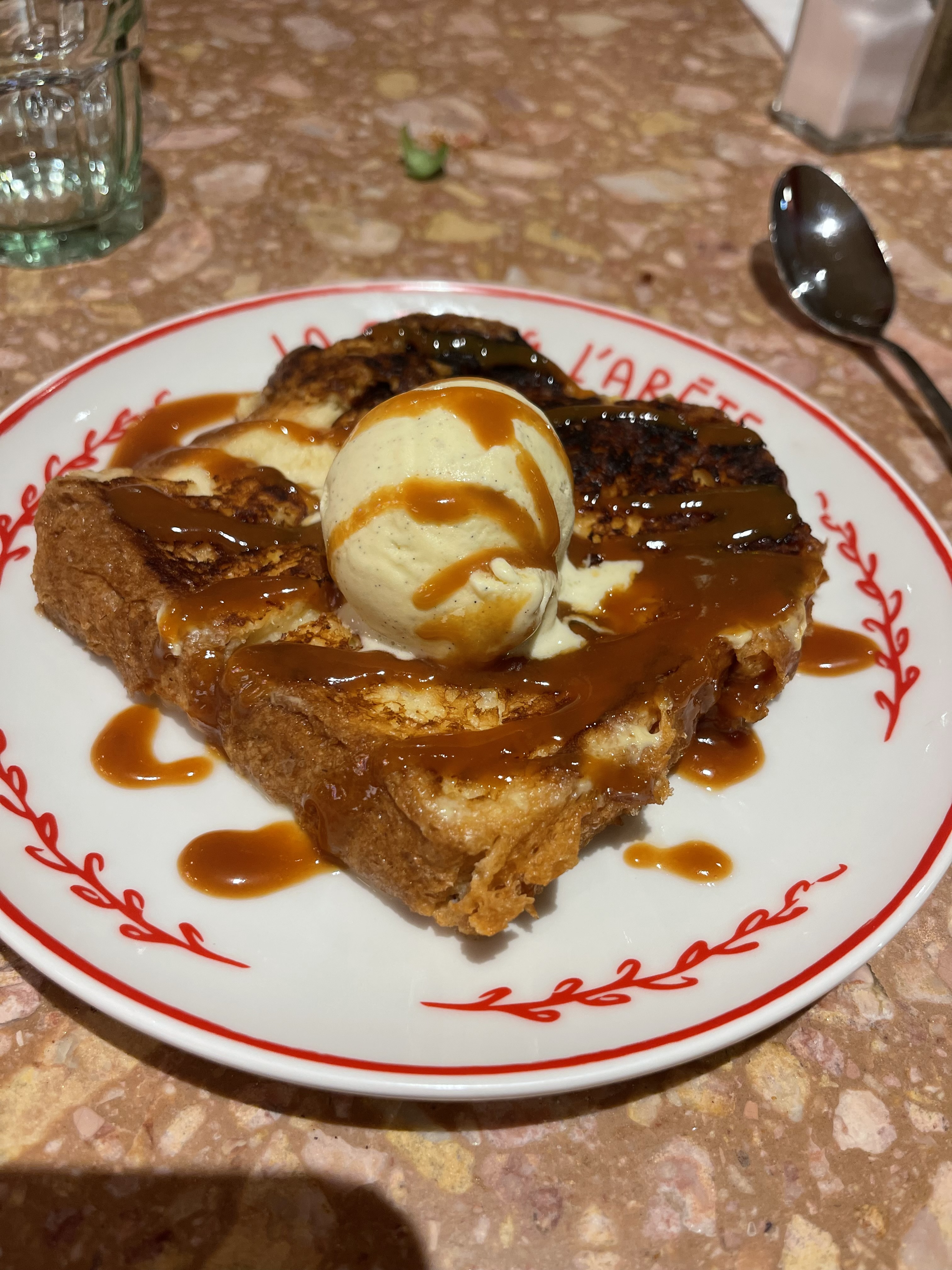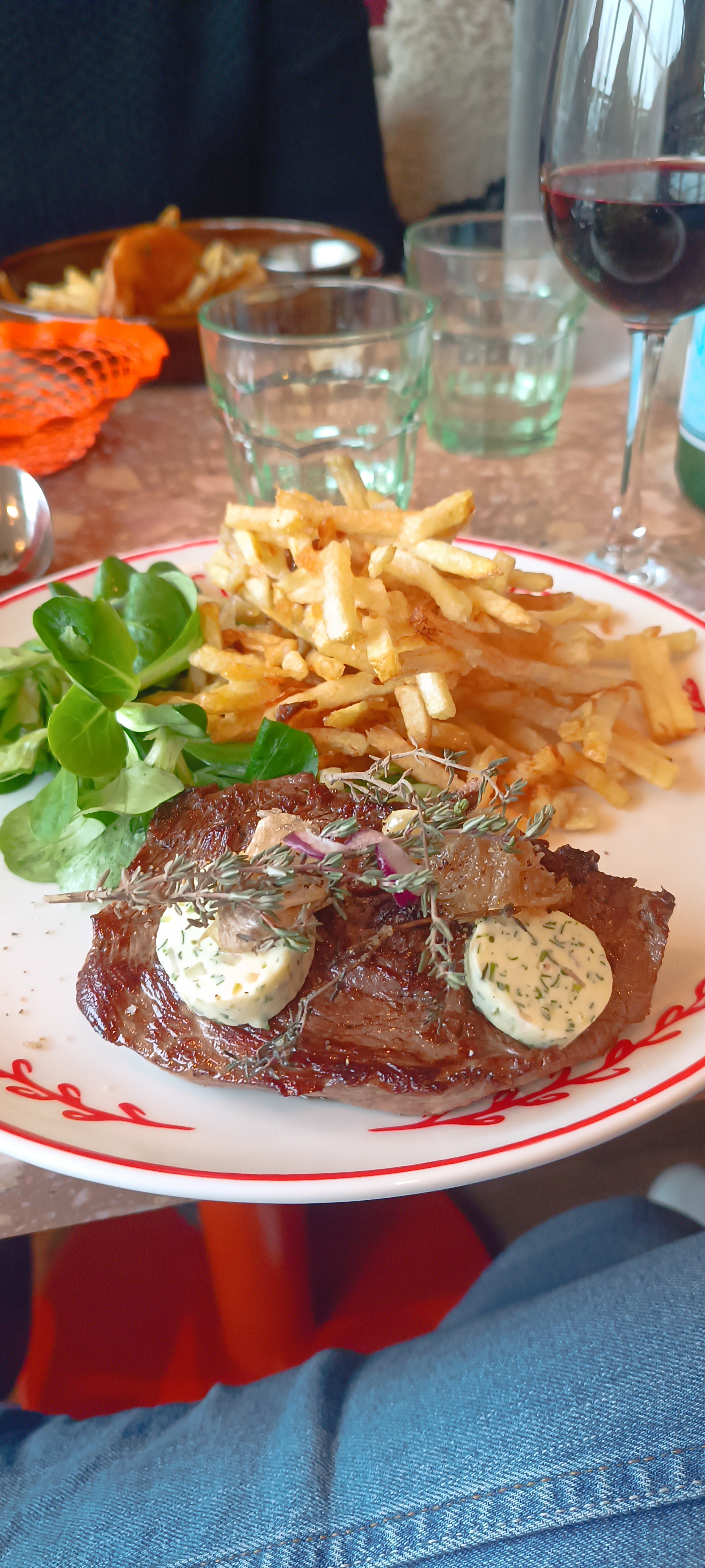 On s’est régalé comme à chaque fois, l’entrecôte une dinguerie, le pain perdu très bon, bien qu’en trop pour mon estomac, et Maïwen est vraiment une serveuse au top ! Merci pour tout, à très bientôt