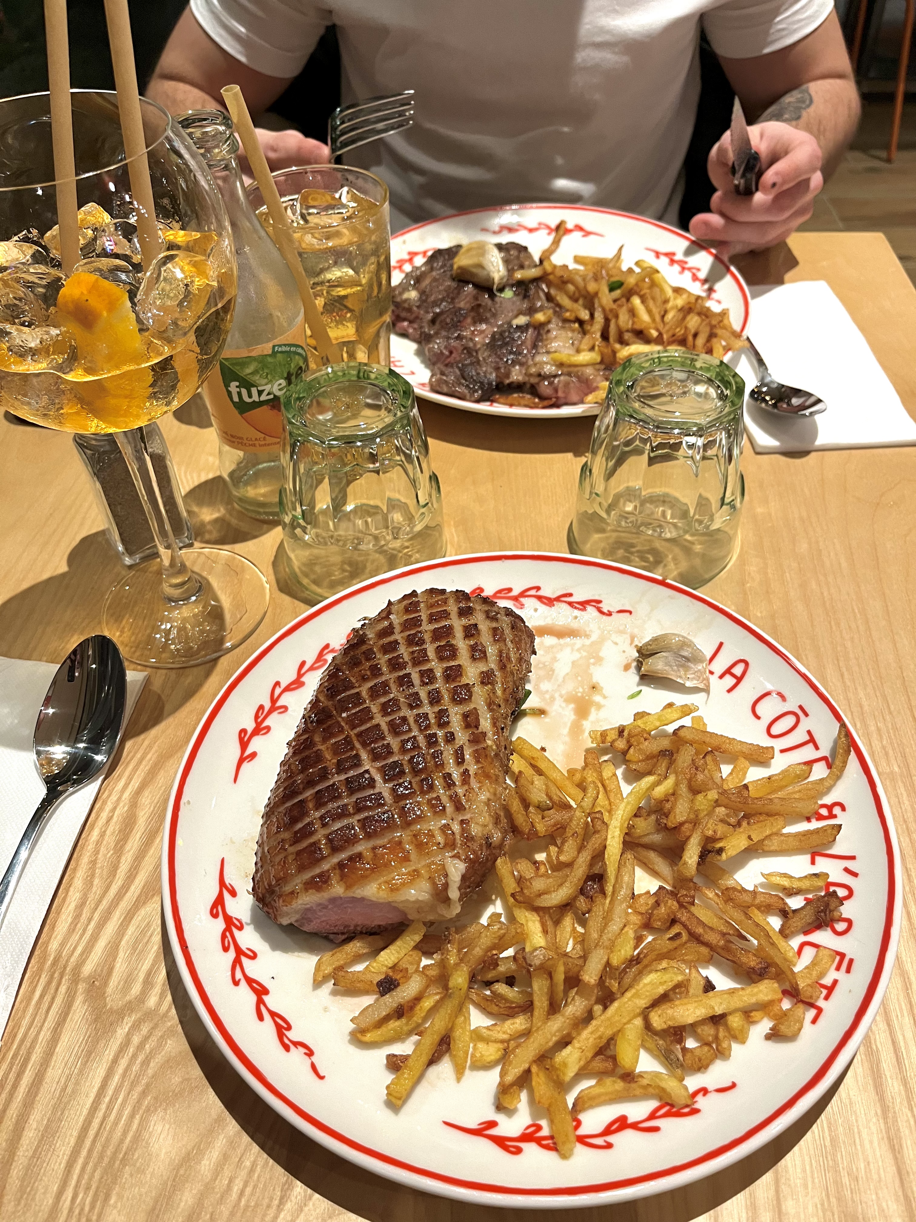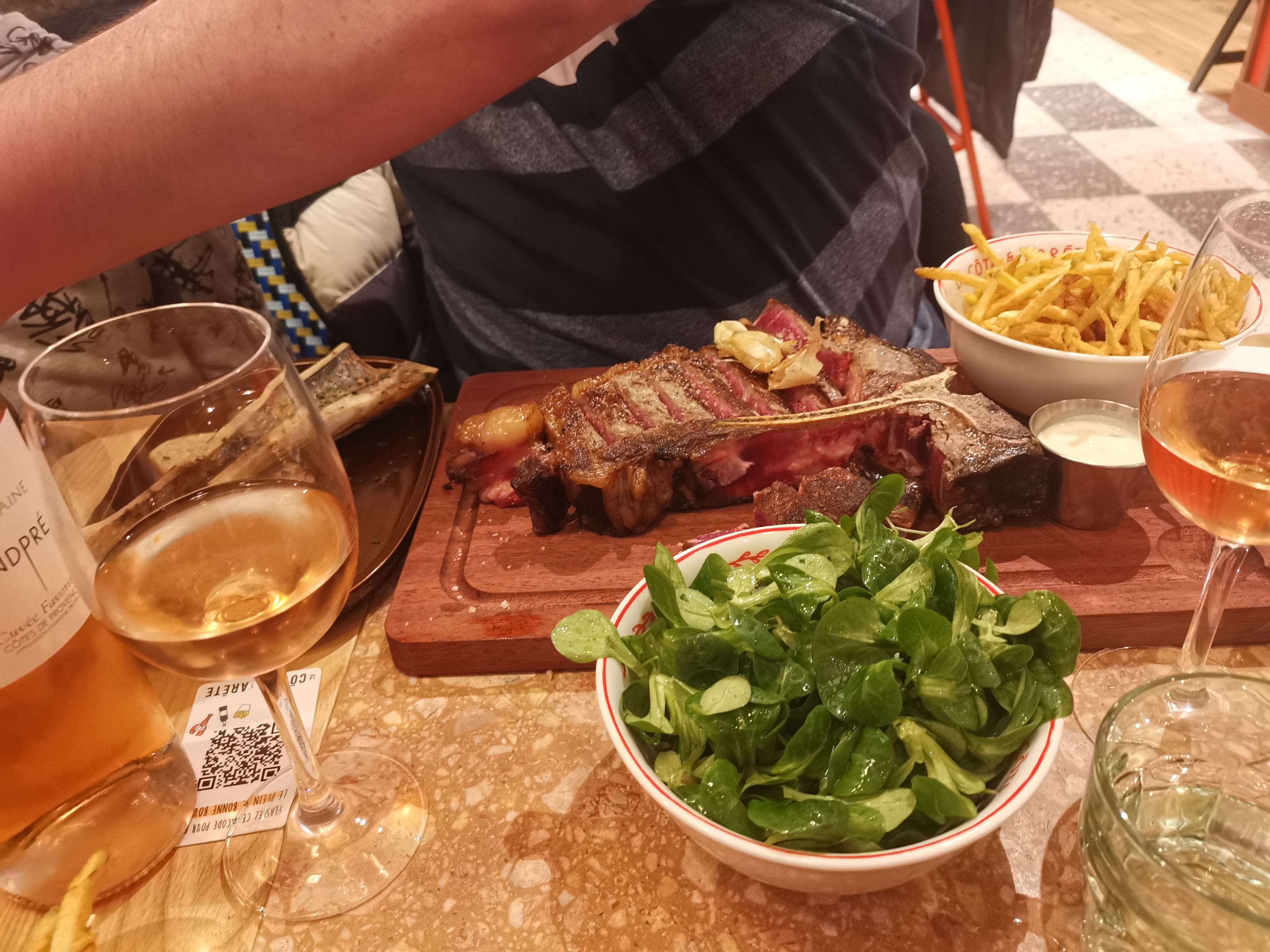 Aucun regret à nous être laissés tenter par une grosse côte de bœuf maturée. Viande tendre et très goutue, frites maison, bon vin. Une soirée agréable et un service au poil!