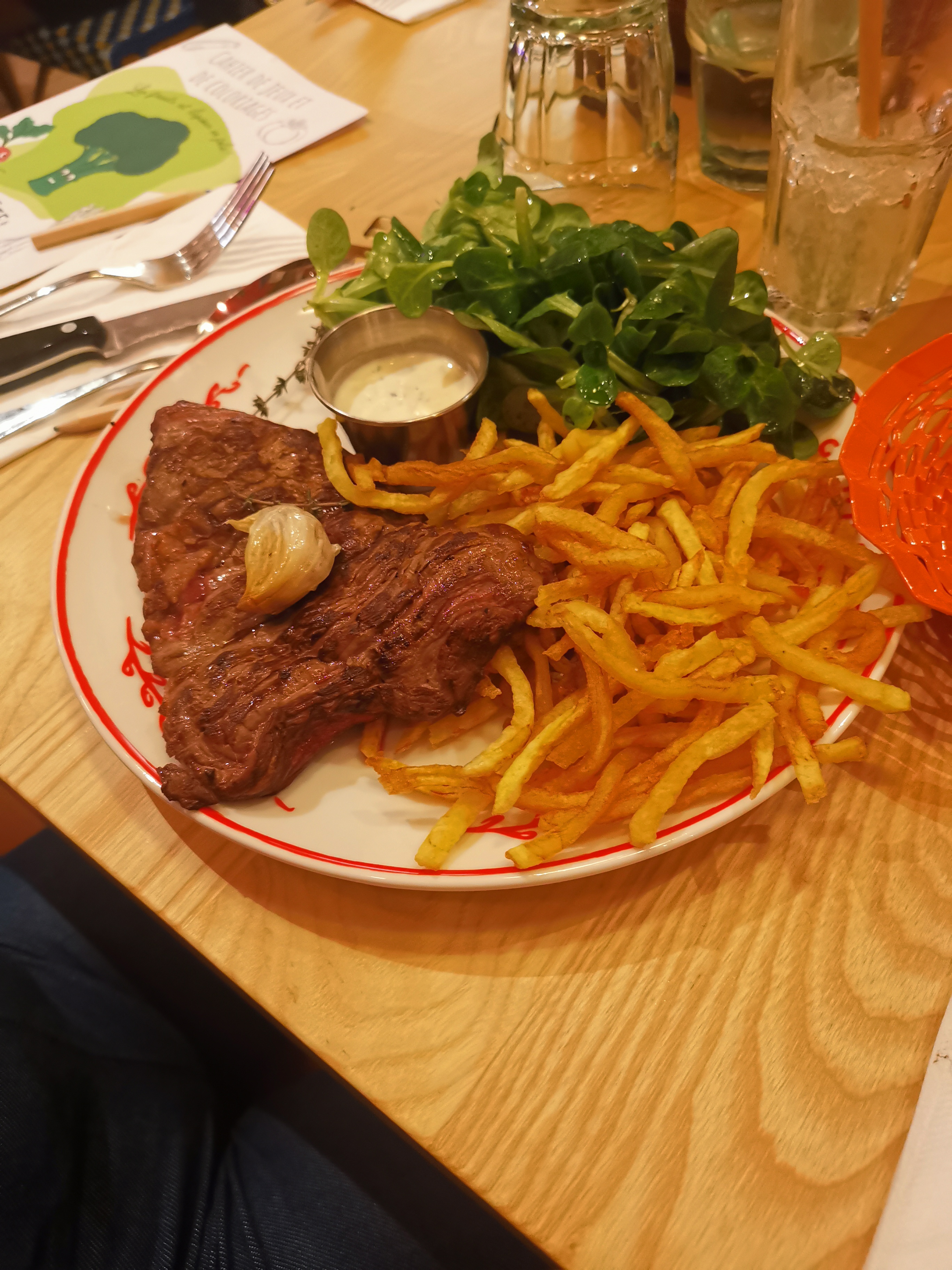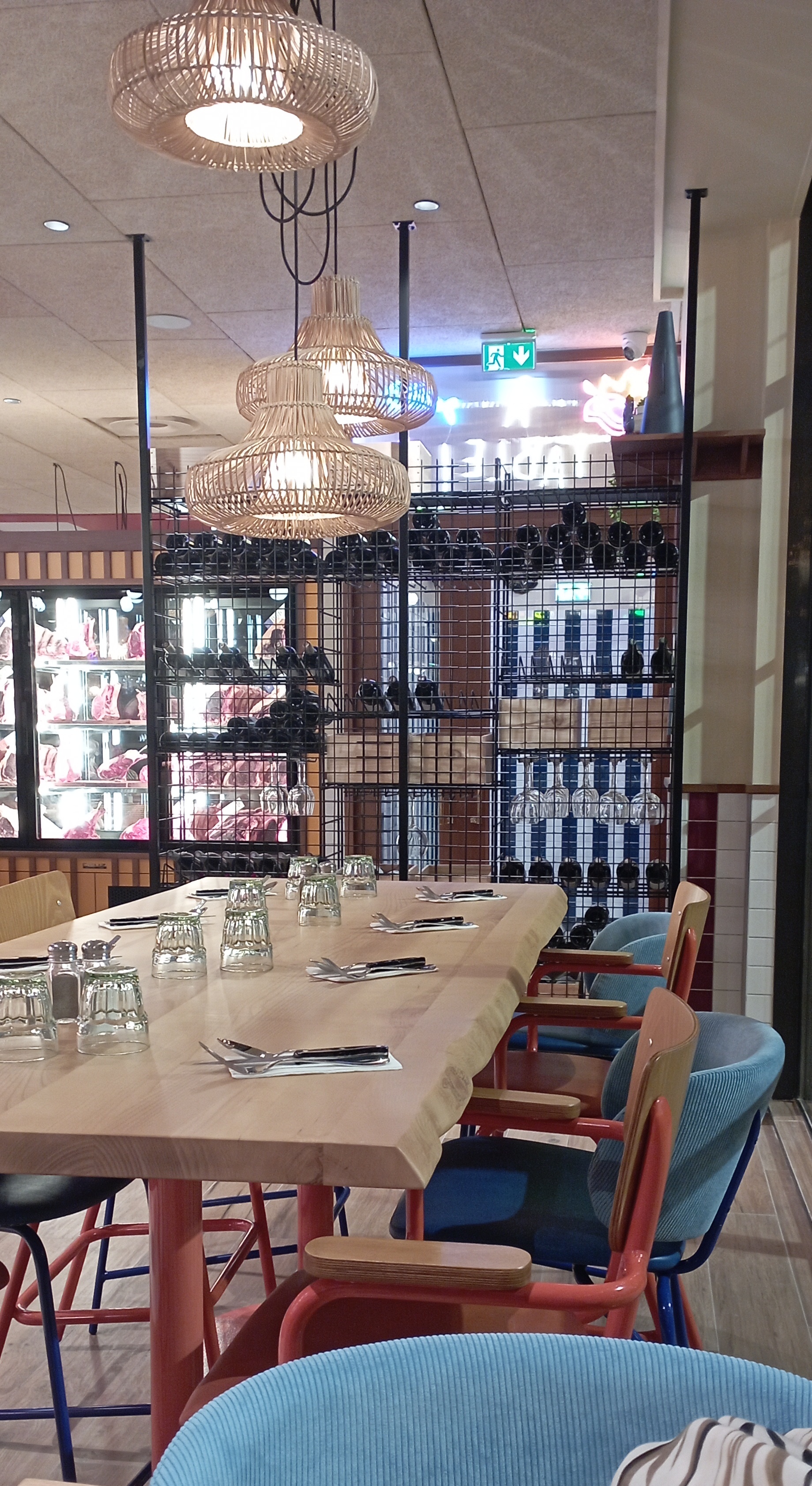 Le restaurant en lui même est très joli, l’ambiance très agréable mais nous étions collé à nos voisins (table de 2). Le seul bémol et pas des moindres c’est qu’il s’agit d’un restaurant de viande et la cuisson de ma viande n’était pas du tout respecté. Je suis boucher de métier j’aime la viande bleu/saignante (surtout pour un onglet de Bœuf) et j’ai eu droit à une semelle d’Onglet trop cuite, dommage.