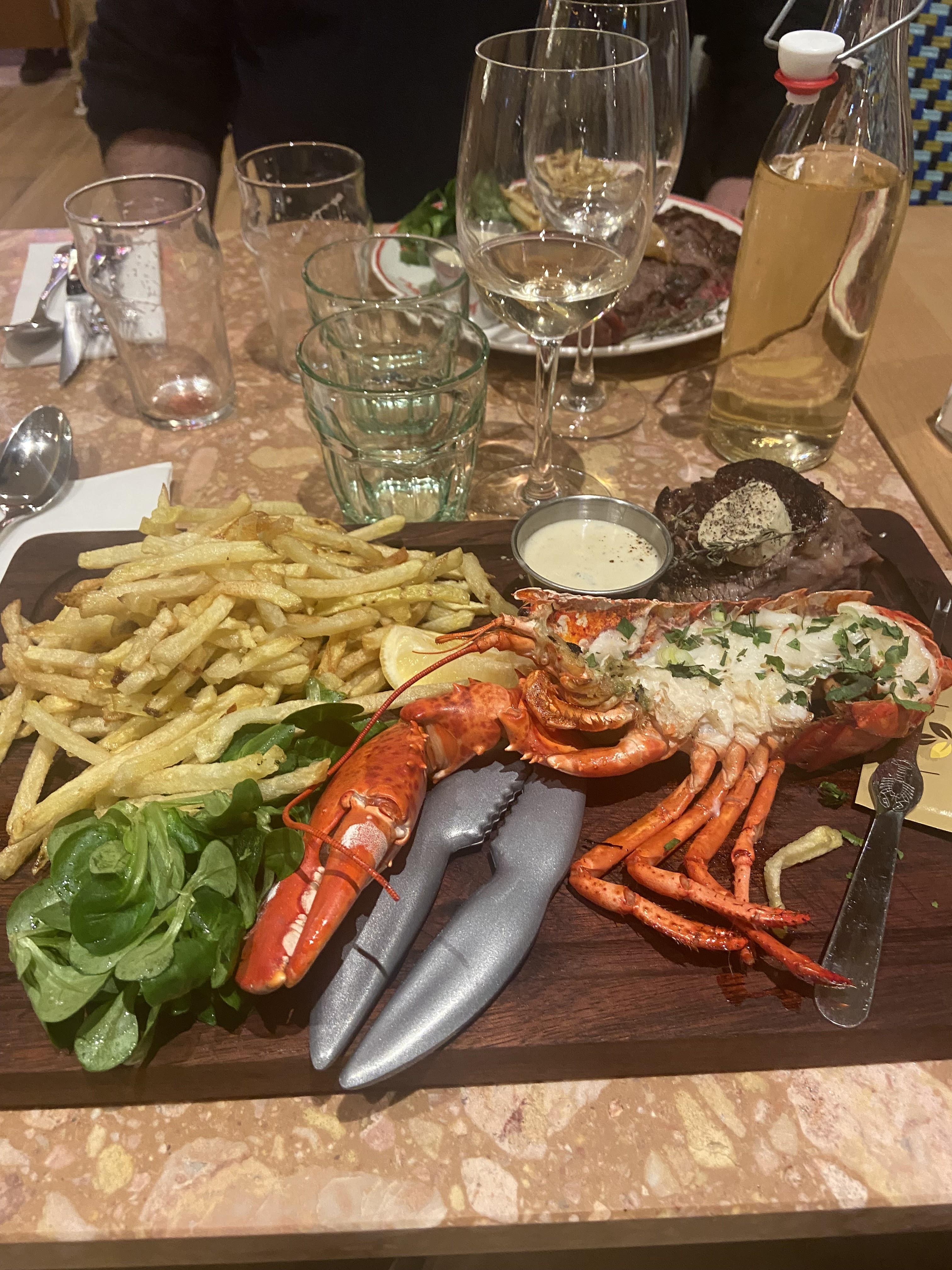 Expérience mitigée, nous avons réserver sur le site avec la ferme intention de déguster le plat signature et il n'y avait déjà plus de homard à 20h😒 ensuite nous avions commandé un faux filet maturé 20 jours sur os d'environ 500 grammes et on nous a servi un faux filet sans os qui ne faisait pas 300 grammes le tout pour 39 euros ! On nous a dit que le chef désossait le faux filet avant de servir ... alors pourquoi mentionner avec os sur la carte ??? Entre la portion de viande considérablement réduite et l'os manquant, du coup nous sommes restés perplexes ! A ce demander si on nous a pas plutôt servi un faux filet normal à 23 euros !! De plus les serveurs confondait notre commande de faux filet avec la commander de filet d'autres clients ! La viande mâturée qui aurait dû être tendre ne l'était pas réellement. Tout ça nous a gâchée notre première expérience. Mauvaise politique de vente ou erreur de commande et de connaissance des produits .... je compte bien en savoir plus auprès responsable la prochaine fois que je viendrais !
