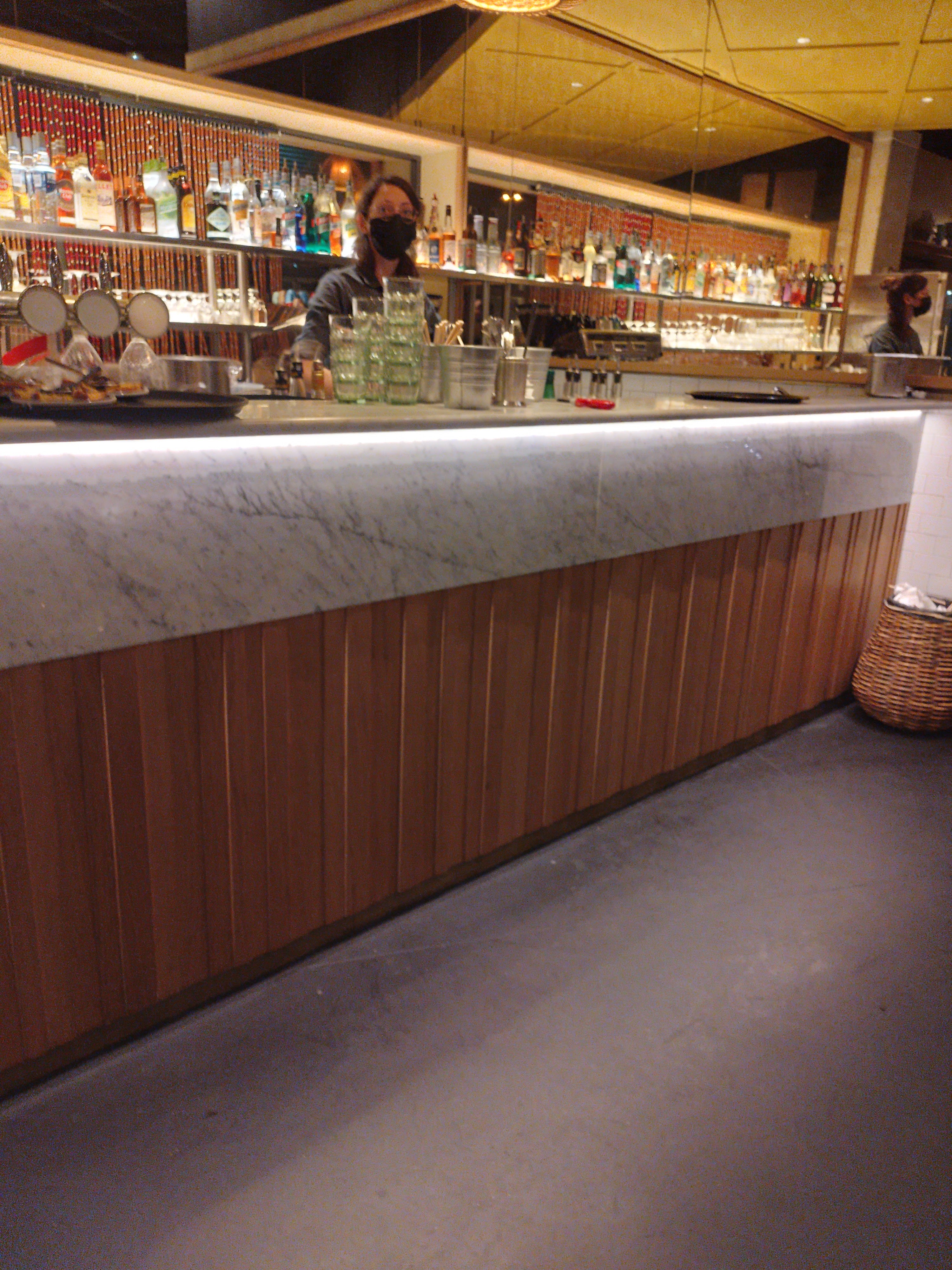 Le cadre est stylé, sympathique bonne ambiance et jolie décoration. Les serveurs sont assez sympa. Niveau attente nous avons quand même bien attendu plus de 30 min pour un tartare de saumon et un fish (en comptant la prise de commande egalement) pour un jeudi à 13h... Au niveau du tartare ce n était pas bien assaisonné par contre très bonne frites. Bon niveau prix ça reste quand même assez cher