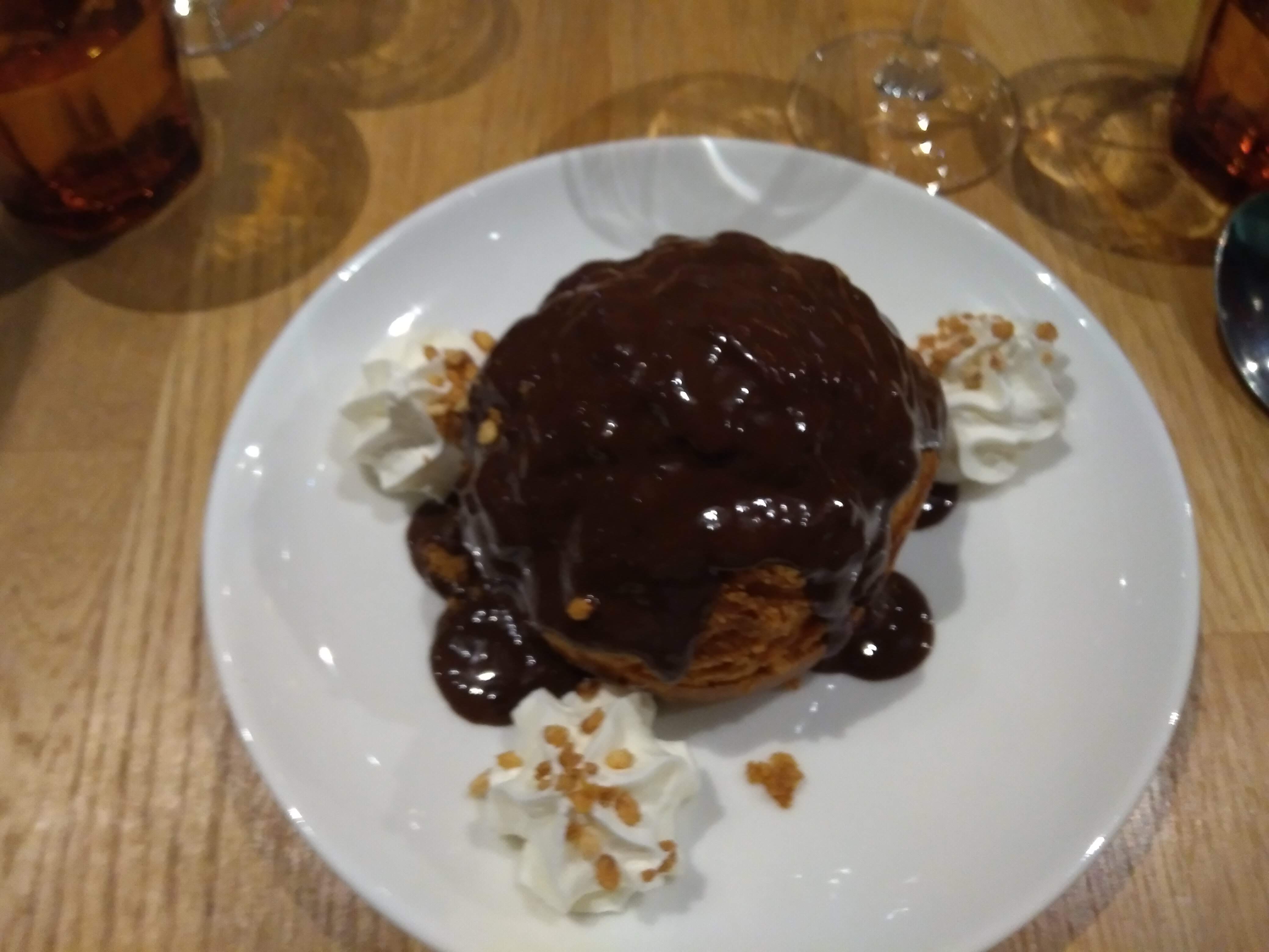 La cuisine est vraiment très bonne, la terrasse était sympa. Le temps entre les services étaient un peu long mais le restaurant était rempli (samedi soir..) donc pas de vrai problème, je recommande !! L'entrée Os à moelle est vraiment ÉNORME et l' Énooooooorme profiterole porte bien son nom !!