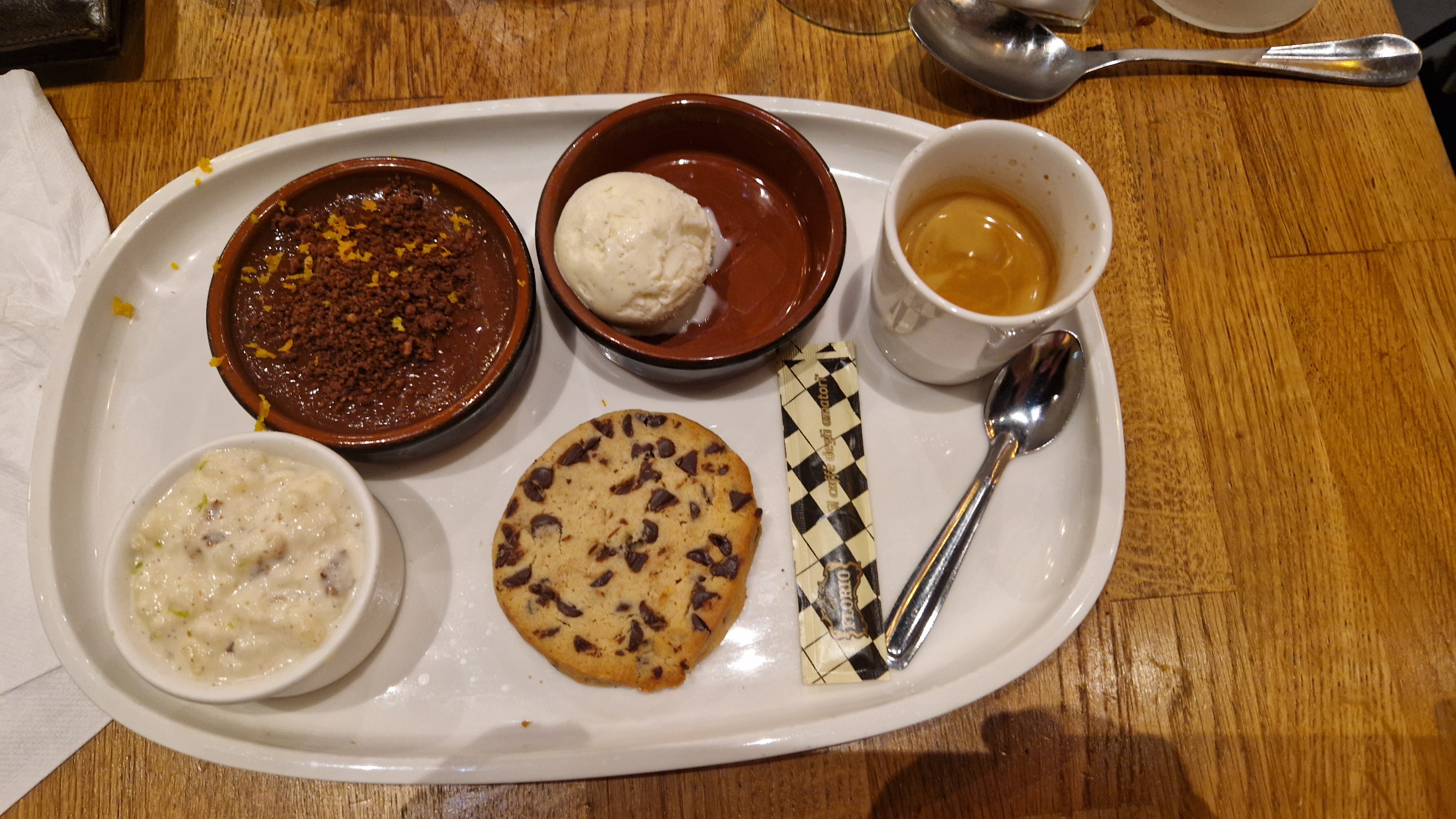 Niveau plat , j'ai bien aimé, des tapas jusqu'au dessert. La viande esr qualitative ( la présentation des viandes maturées à l entrée donne l'eau à la bouche ). Il faut juste que le service lève un peu la tête et soit un peu plus concentré sur les convives.