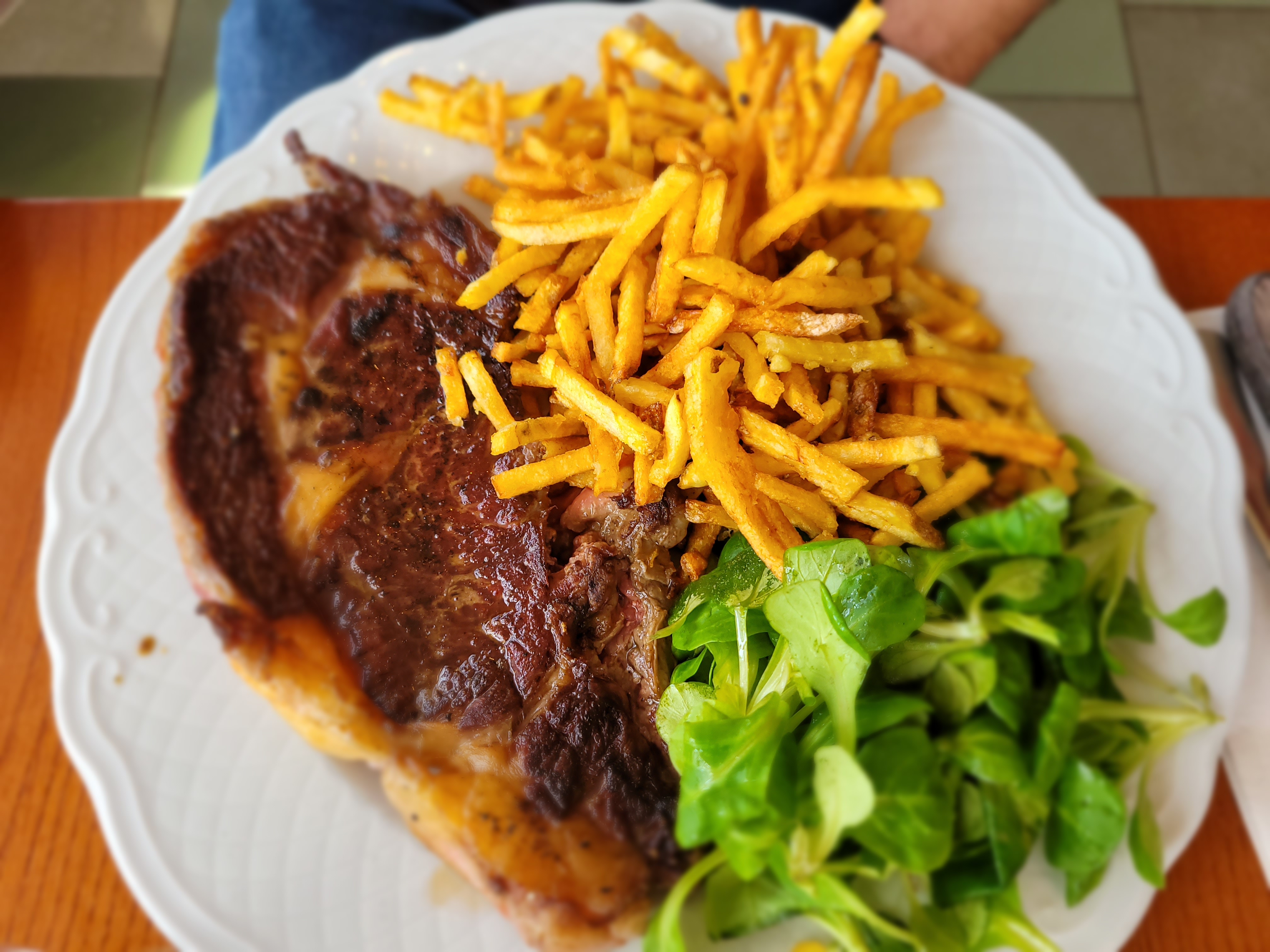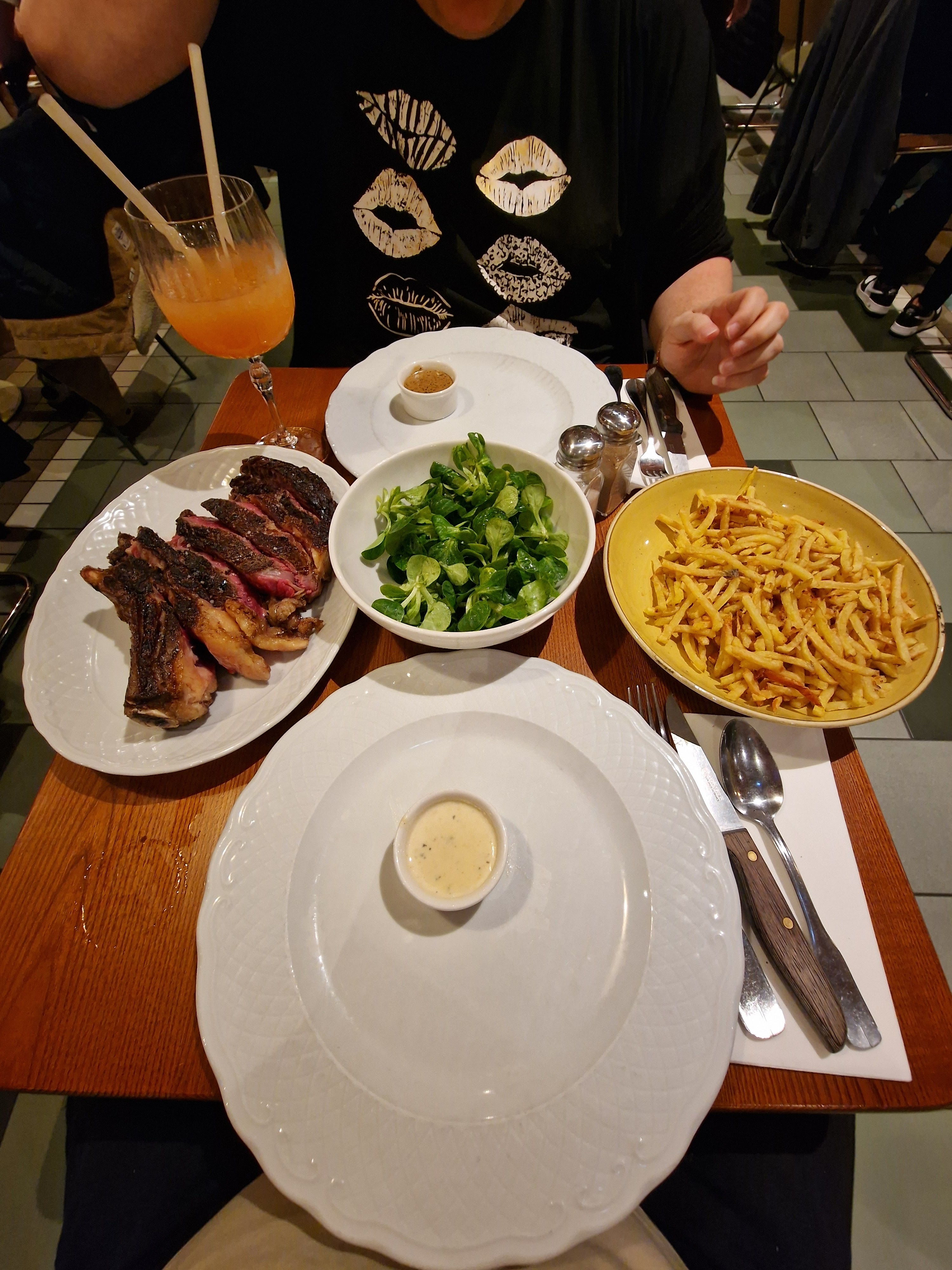 La côte de bœuf à 95 euros de soit disant Galice...trop cher . On regrette de ne pas avoir pris celle à 65. Différence ? Arnaque ? Les frites trop cuites et recuites. Les concurrents sont de loin meilleurs en rapport qualité prix. Très déçus.