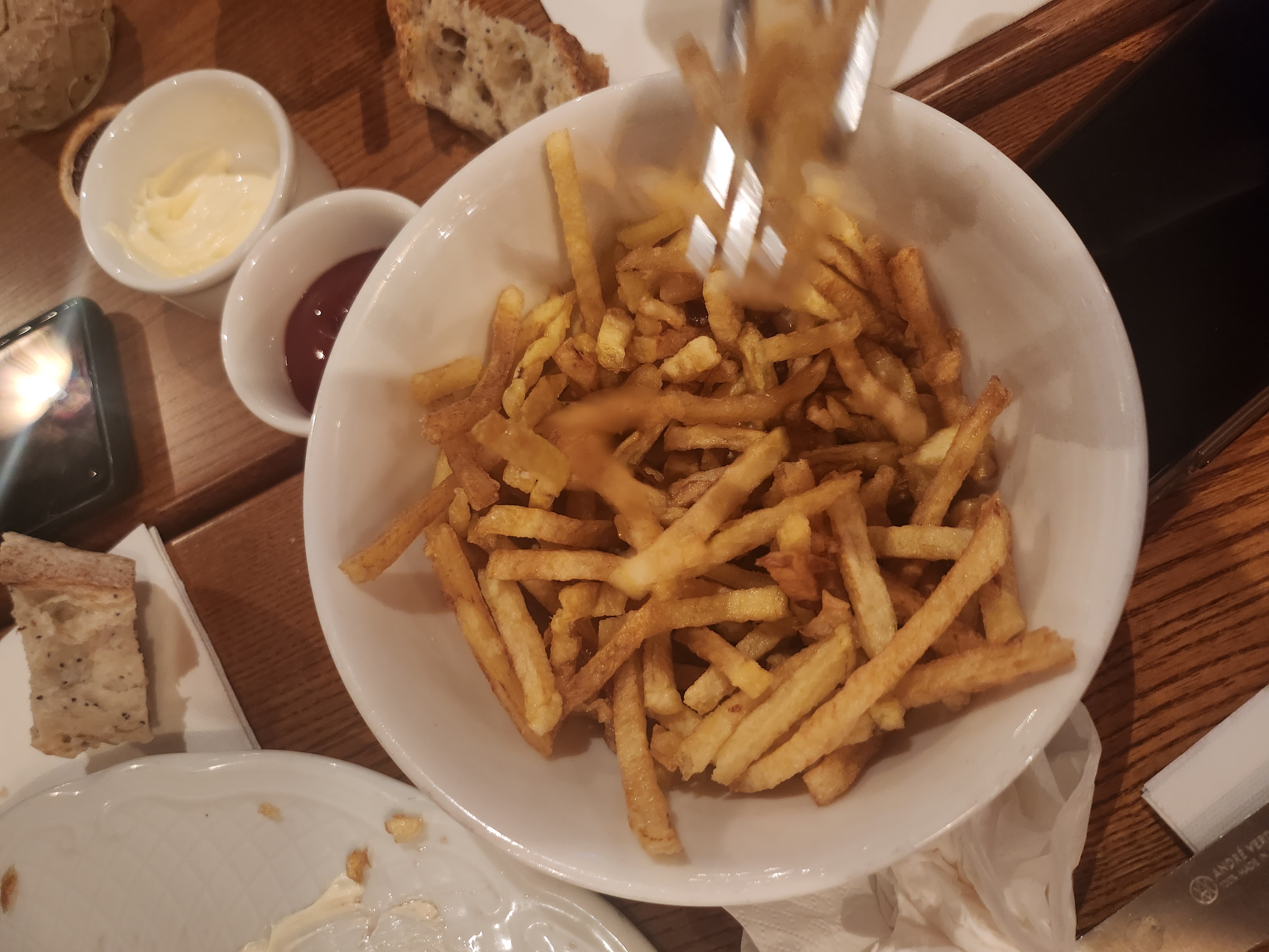 Service déplorable ont attendus très longtemps entre l'apéritif et la commande pour le plat qui a entre autre été servi à une autre table avant d'arriver sur la nôtre et au moment du payement le serveur ne nous rend pas la monnaie ! Et pas de sauce a l'échalote dommage avec une bavette