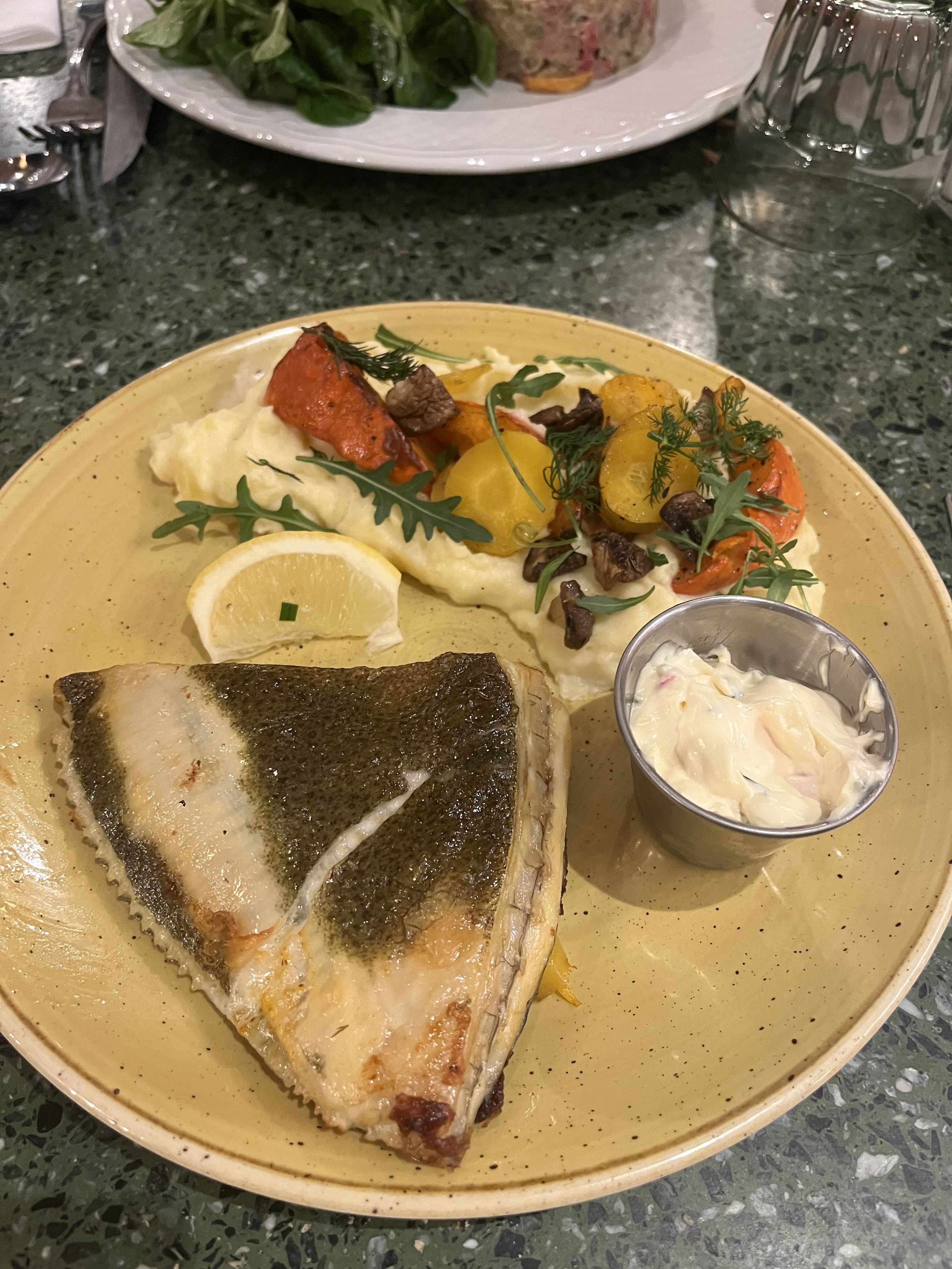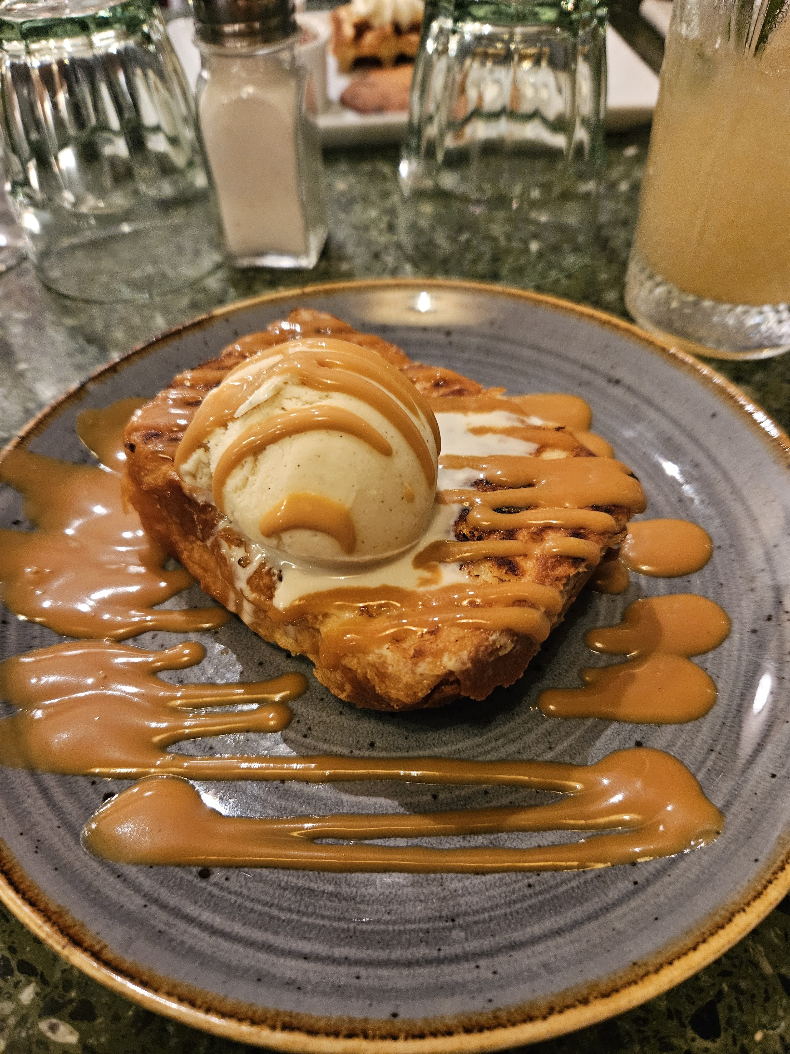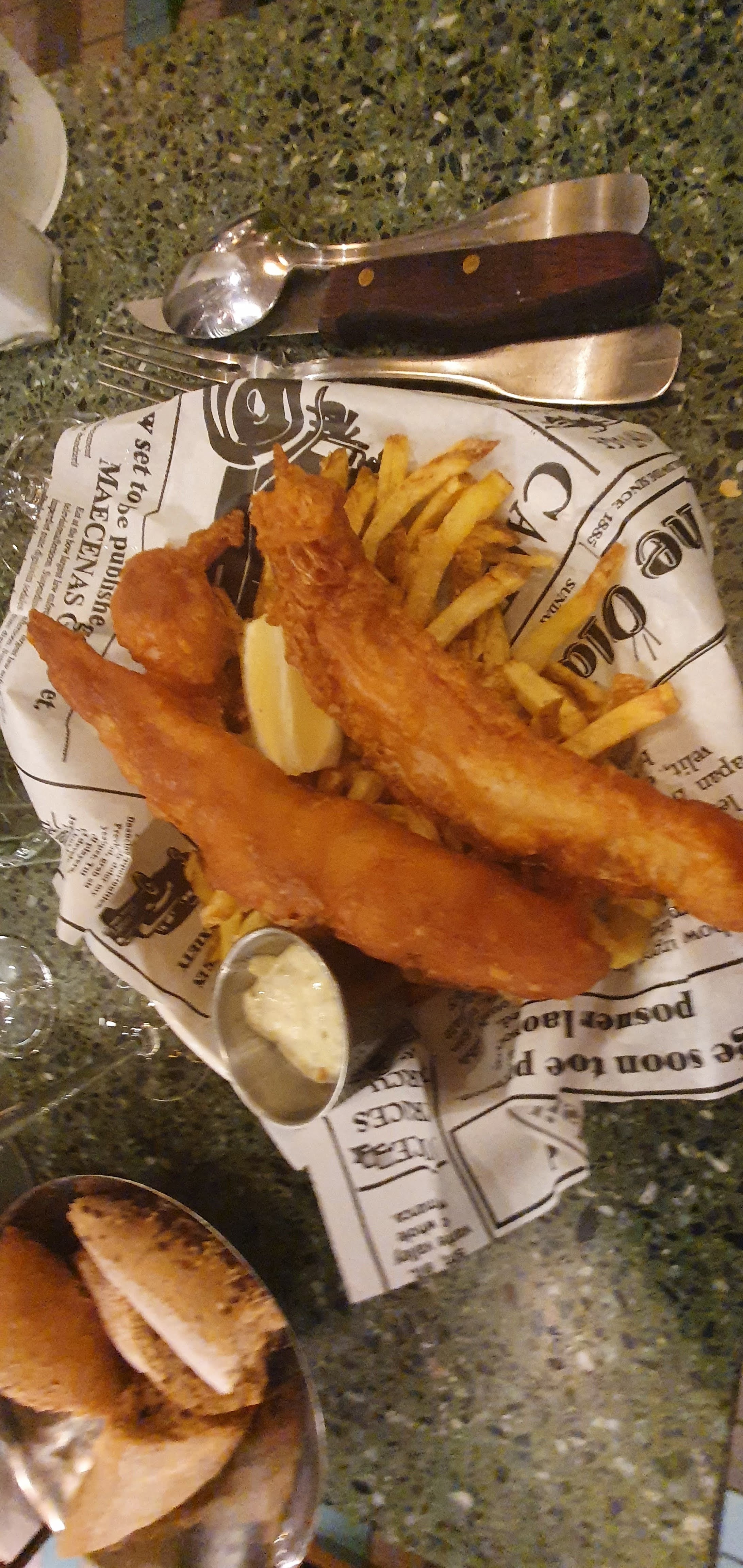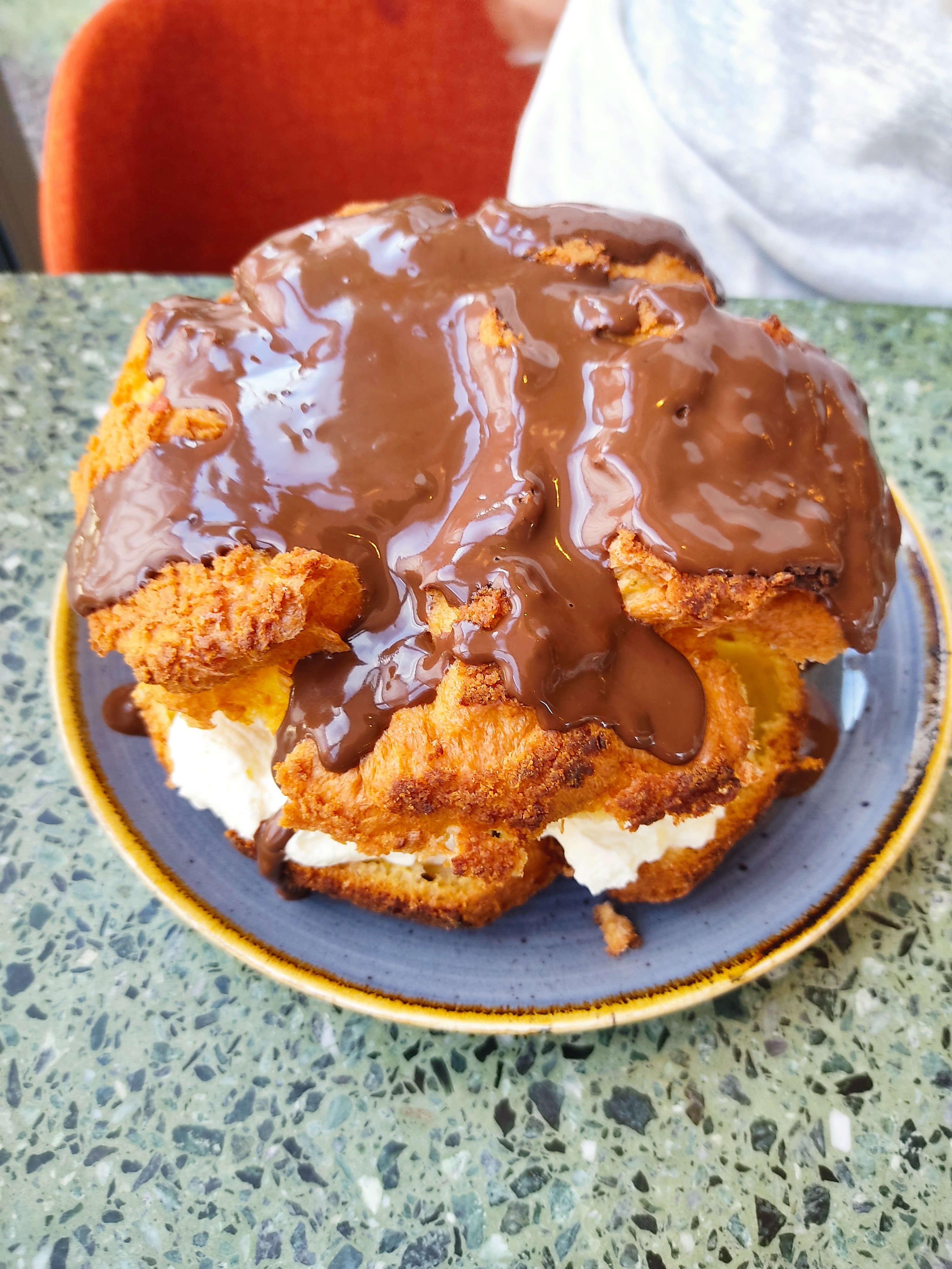 Plat bon, manquait un peu de salade avec le fish and ships, en général les restaurants mettent un peu de salade partout pas eux. Le chou de la profiterole était très sec.. A 9e le dessert il faut qu'il soit au top...