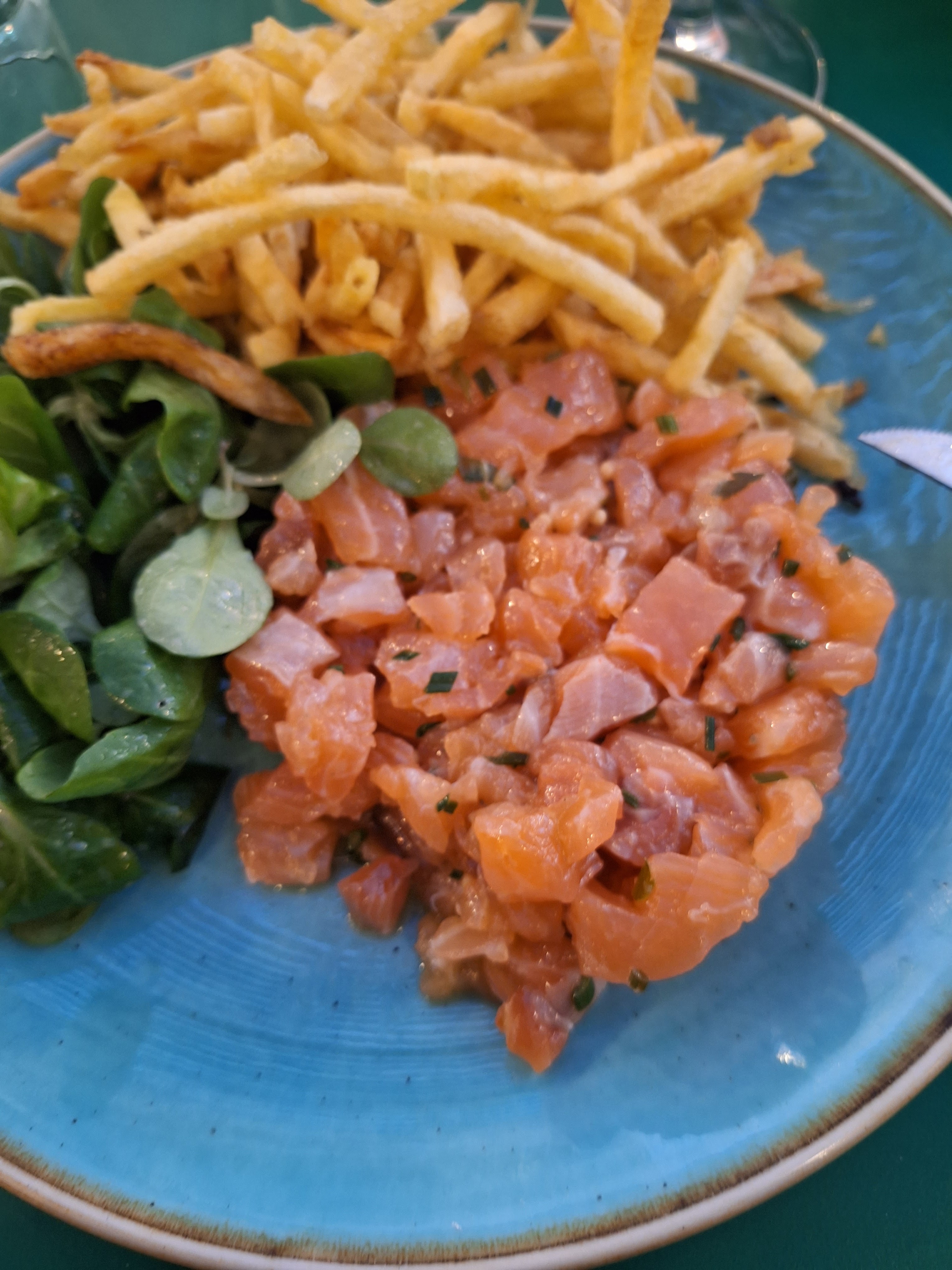 Lieu sympathique avec quand même un plat assez léger. Pavé de saumon savoureux mais les frites allumettes accompagné de sa roquette me laisse un peu sur ma faim..
