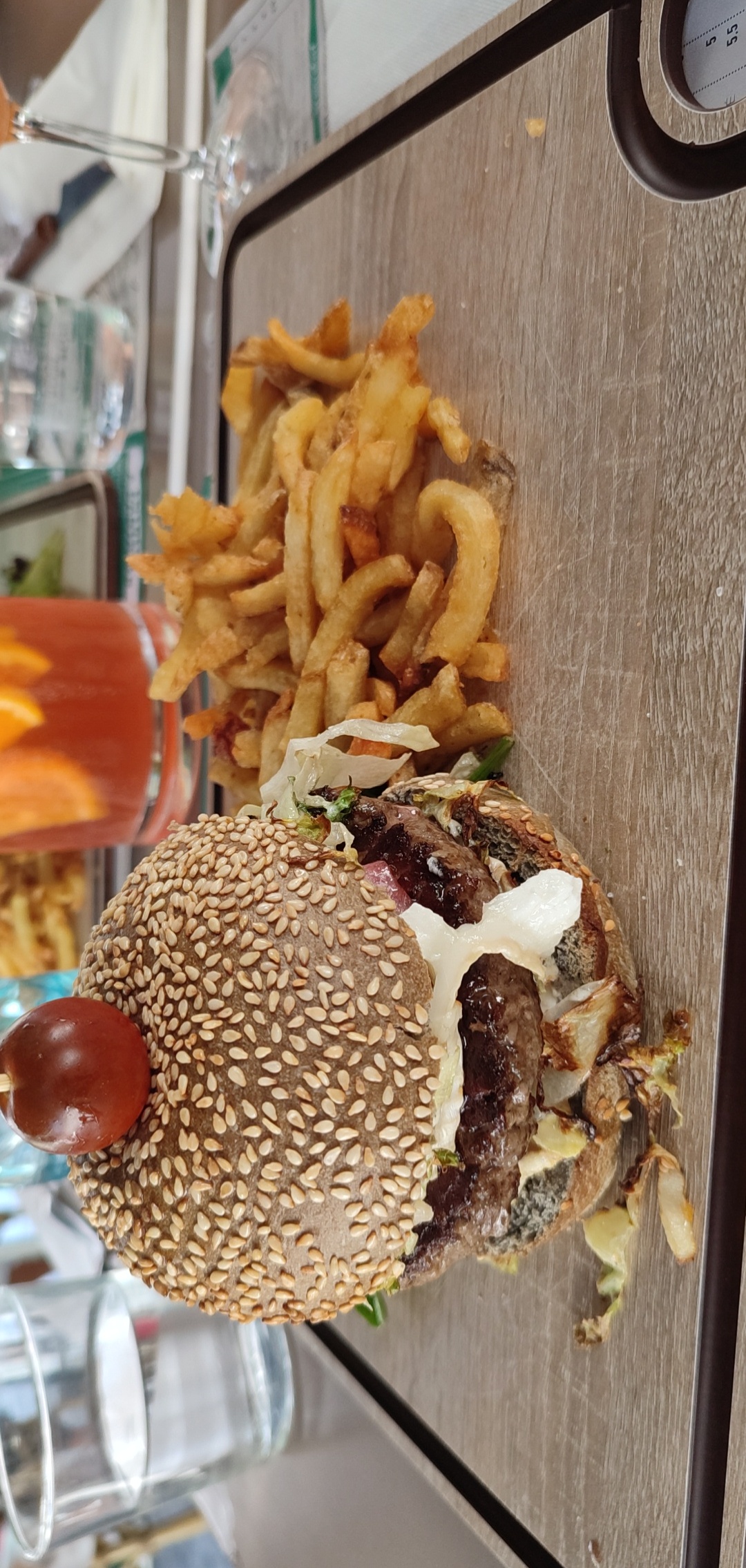 Franchement déçu, j’ai commandé un burger (très sec au passage). On nous annonce frites et salade à volonté. Dans l’assiette servie, des frites surgelées et 3 feuilles de mâches qui se battent en duelles ( sans vinaigrette je précise). Enfin, on nous annonce que si nous consommons l’équivalent de 40€ par personne nous aurons « peut être » un digestif offert… à 4€ prêt nous n’y avons pas eu droit, dommage. En conclusion, très déçu de la qualité de la cuisine proposée malgré le lieu agréable.