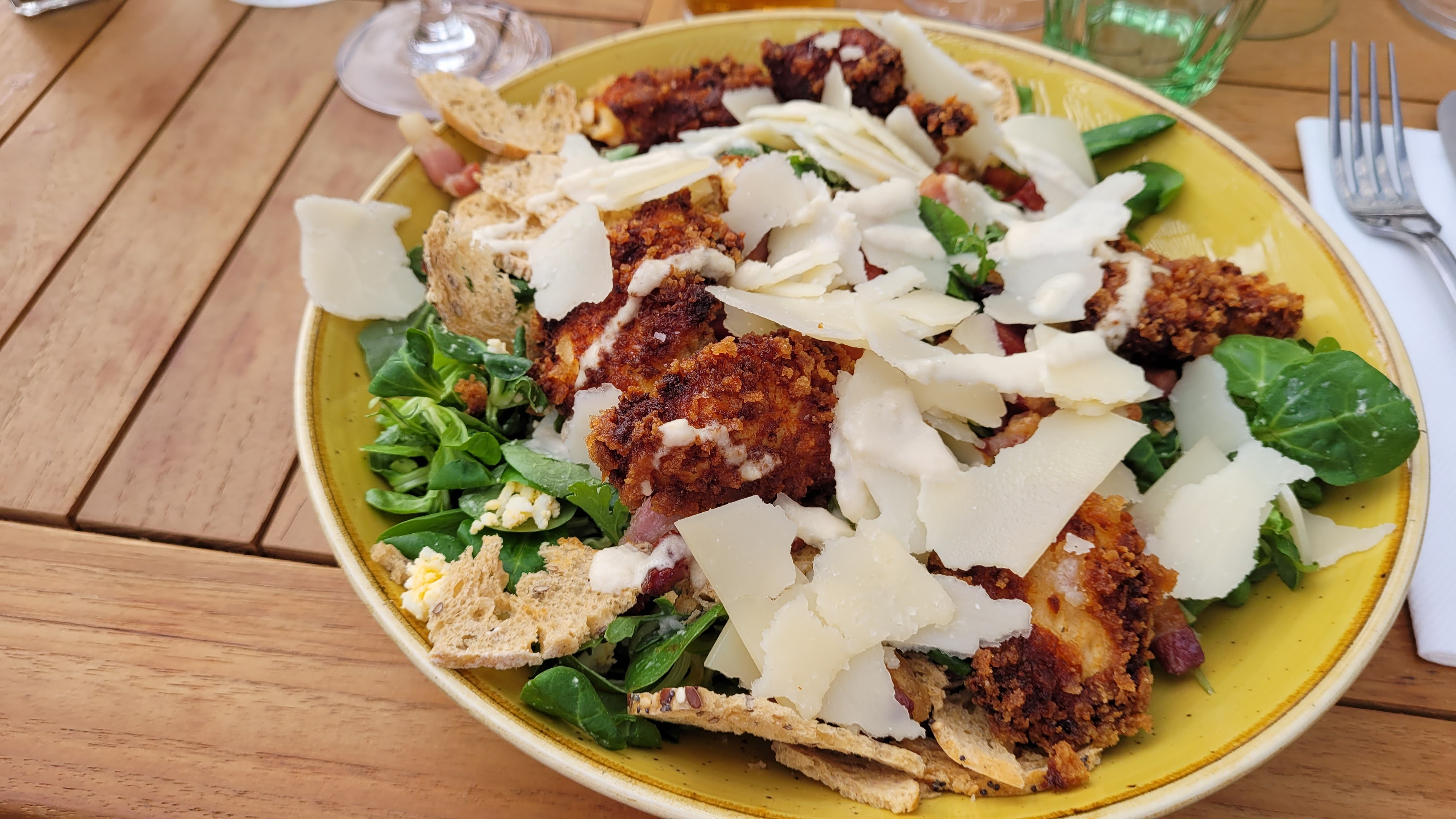Serveurs sympas, mais assez déçue par la cuisine..pas de vinaigrette dans la mache ni de sauce avec le poulet..un peu cher pour ce que c'est, présentation du dessert un peu lourde, dommage la terrasse doit être agréable en été.