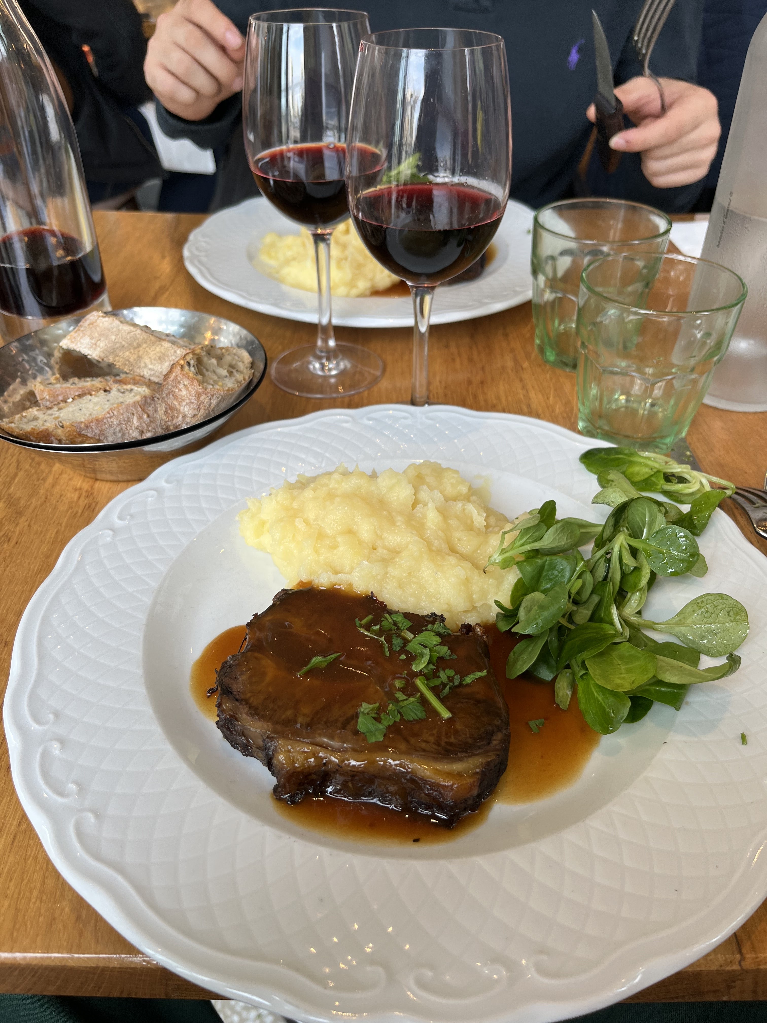 Bonne viande, le profiterole est énorme et bon mais il y a de la chantilly à la place de la glace vanille,par contre les serveurs était un peu à la ramasse nous avons dû demander trois fois la bouteille de vin et 2 × 1 bouteille d’eau