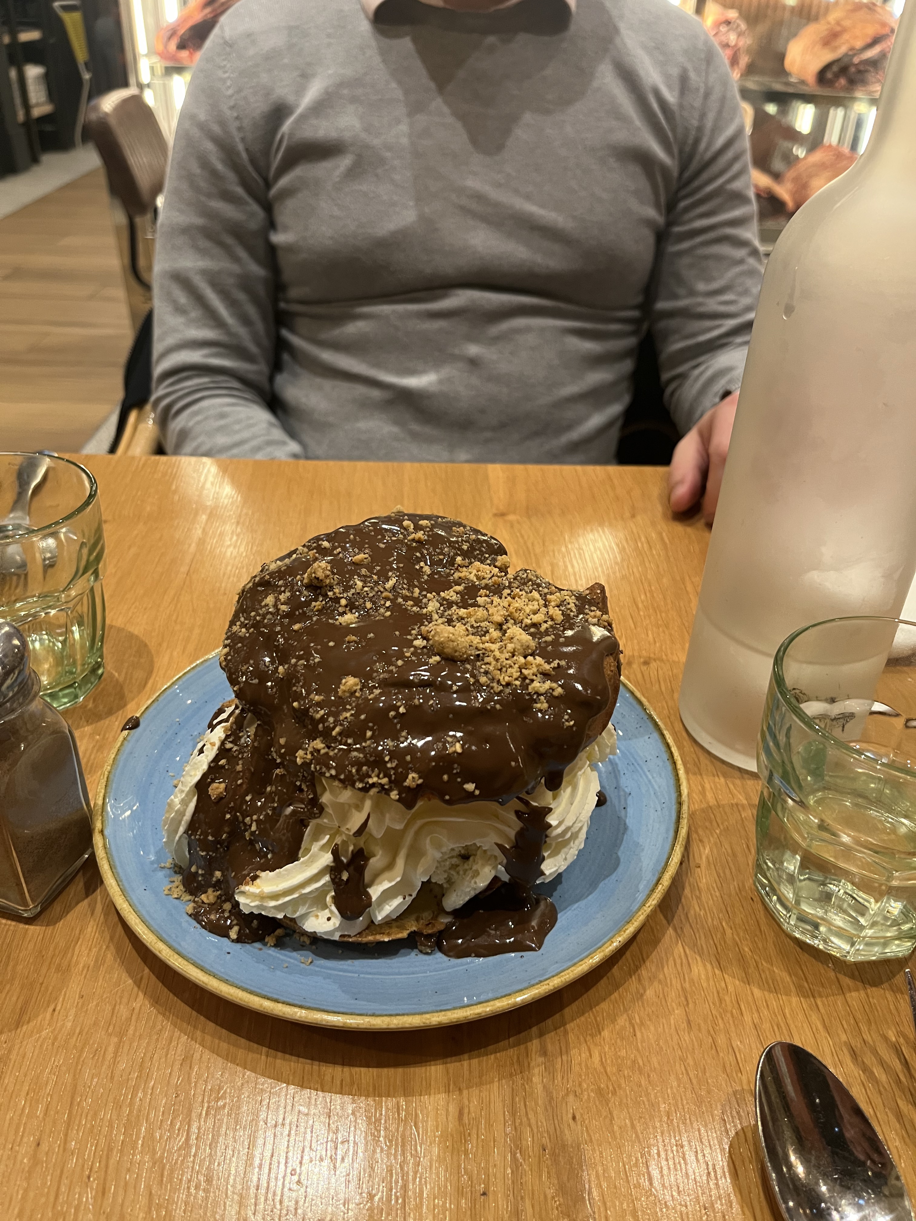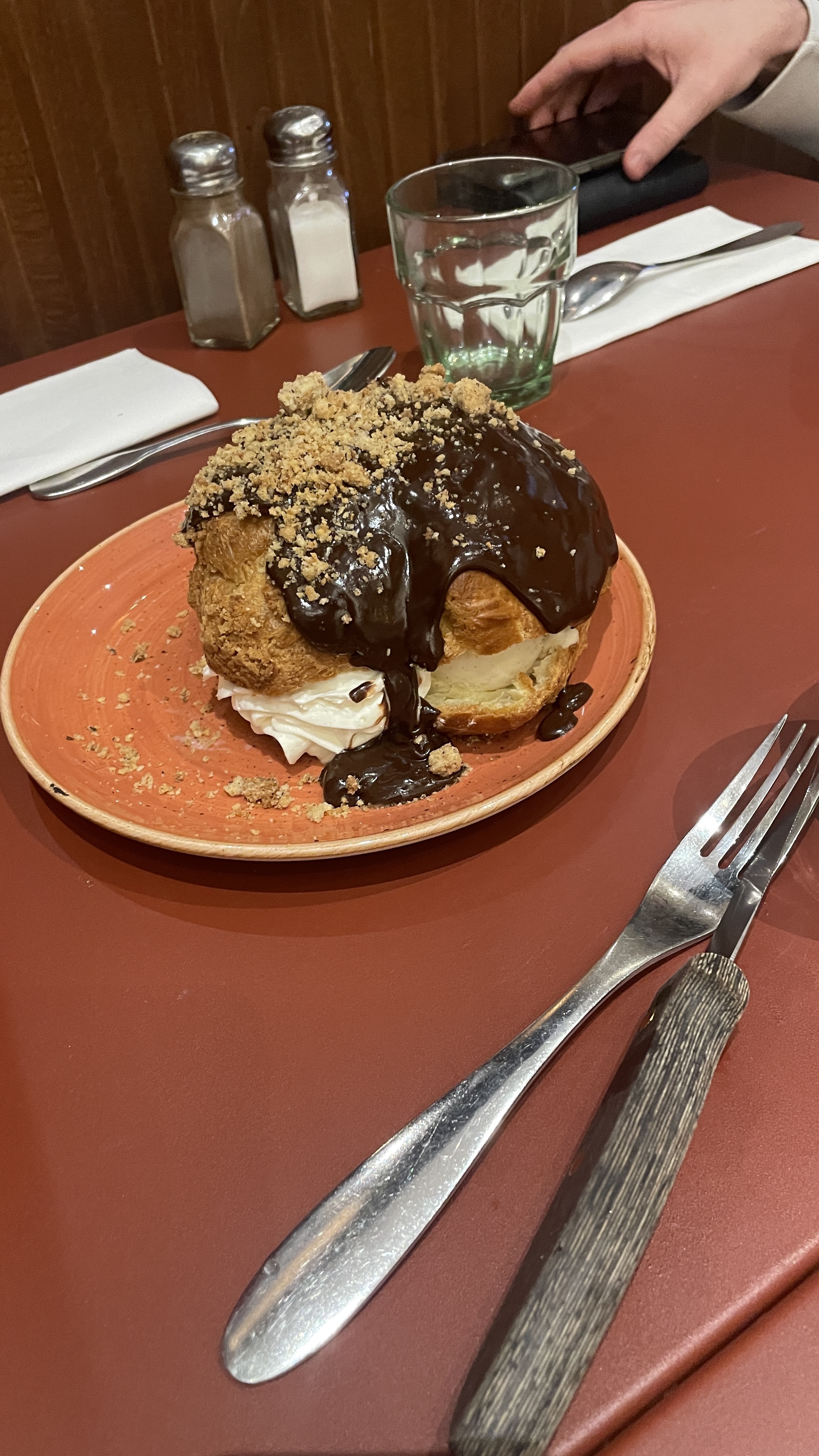 Ce que j'ai retenu. Une bonne viande bien Bleue ! Préparé devant les clients ! Et .... La Profiteroles qui a la taille d'un 280 de chez McDo 😂