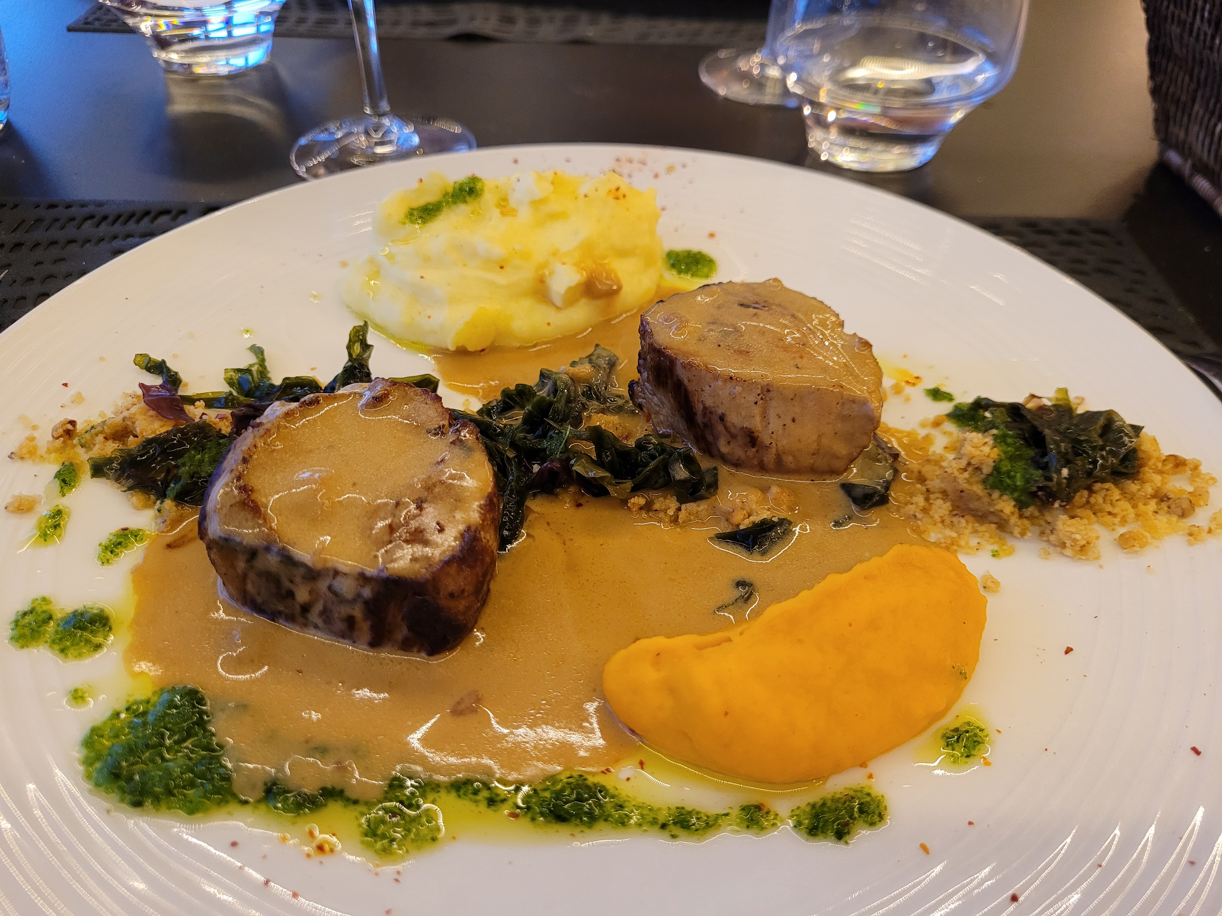 Très bon restaurant, des plats très raffinés et bien présentés. Une originalité dans certains accompagnements comme du butternut en cubes , des morceaux de melon, un coulis de fruits rouges et une crème de foie gras pour accompagner du magret de canard frais cuit et du séché.un peu moins avec un gratin dauphinois qui accompagne un pavé de boeuf très tendre....ET le dessert très goutu. L'accueil est agréable et chaleureux. Je recommande ce restaurant.